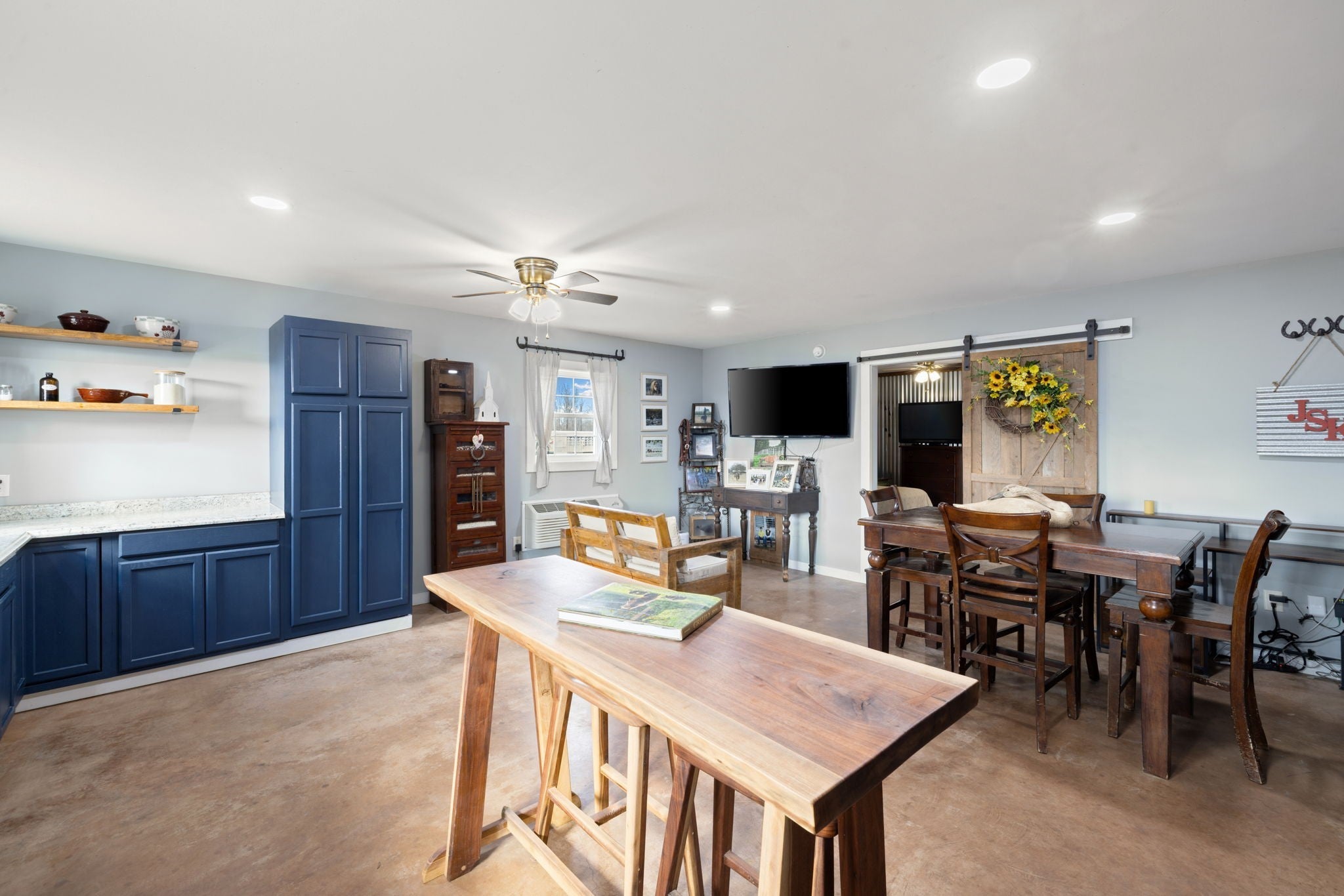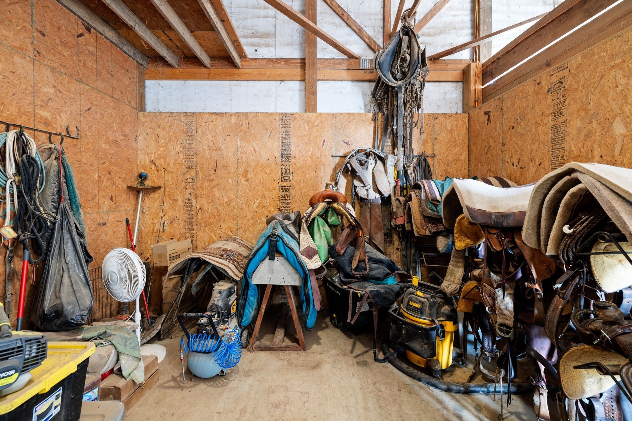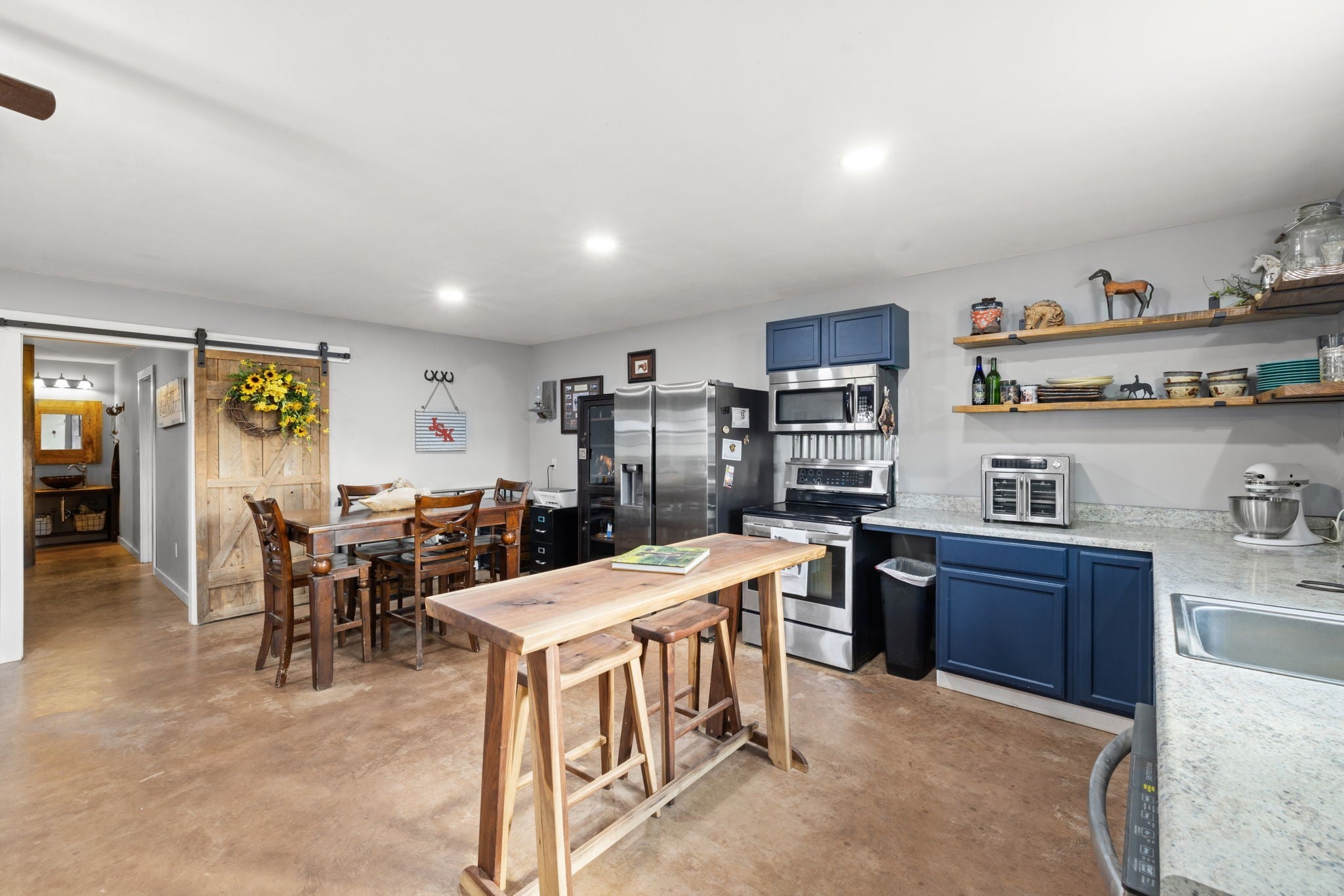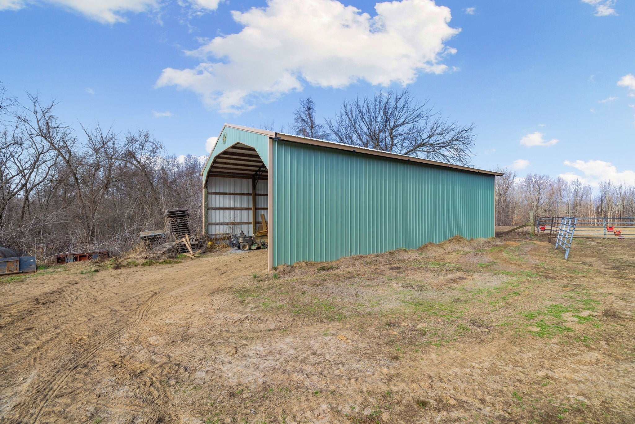 Turnkey 46-acre horse farm offering a complete, well-designed training facility. Improvements include a 60x80 covered arena with lights, sand footing, and two 20-ft side sheds, plus a separate outdoor arena. Eight total stalls—4 located off the covered arena and 4 inside the main barn, including three oversized 14x14 stalls ideal for foaling or studs and one 8x10 stall. Custom Armour Horse Stalls fronts with automatic watering system utilizing PEX piping, along with a dedicated feed room and tack room. Additional features include a six-horse walker, 30x50 hay barn, six run-in sheds, and frost-free hydrants to each pasture. Multiple fenced pastures provide excellent turnout. Attached to the barn is a comfortable barndominium with 1 bedroom, 1.5 baths, full kitchen, and laundry. New water well system installed in 2024. Ample room for future stall expansion within the covered arena, plus a separate potential building site already equipped with septic, water, and electric. Gated entrance. Move-in ready and built for year-round equestrian use.