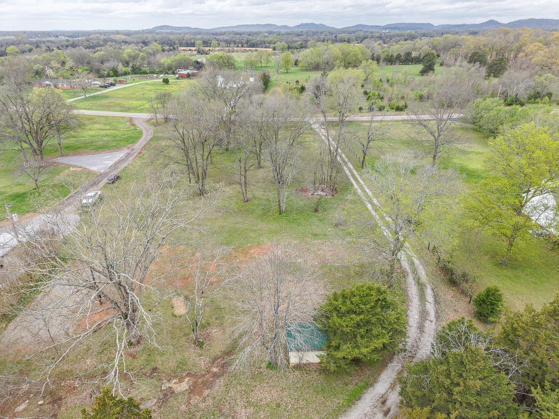 Beautiful lot with existing driveway, utilities, septic tank (3 bedroom), water, gas and electric. Existing large barn with implement storage shed on the side. Back of lot is wooded. Choose to use existing build area with septic tank or build in back of lot for privacy. Well available for irrigation.