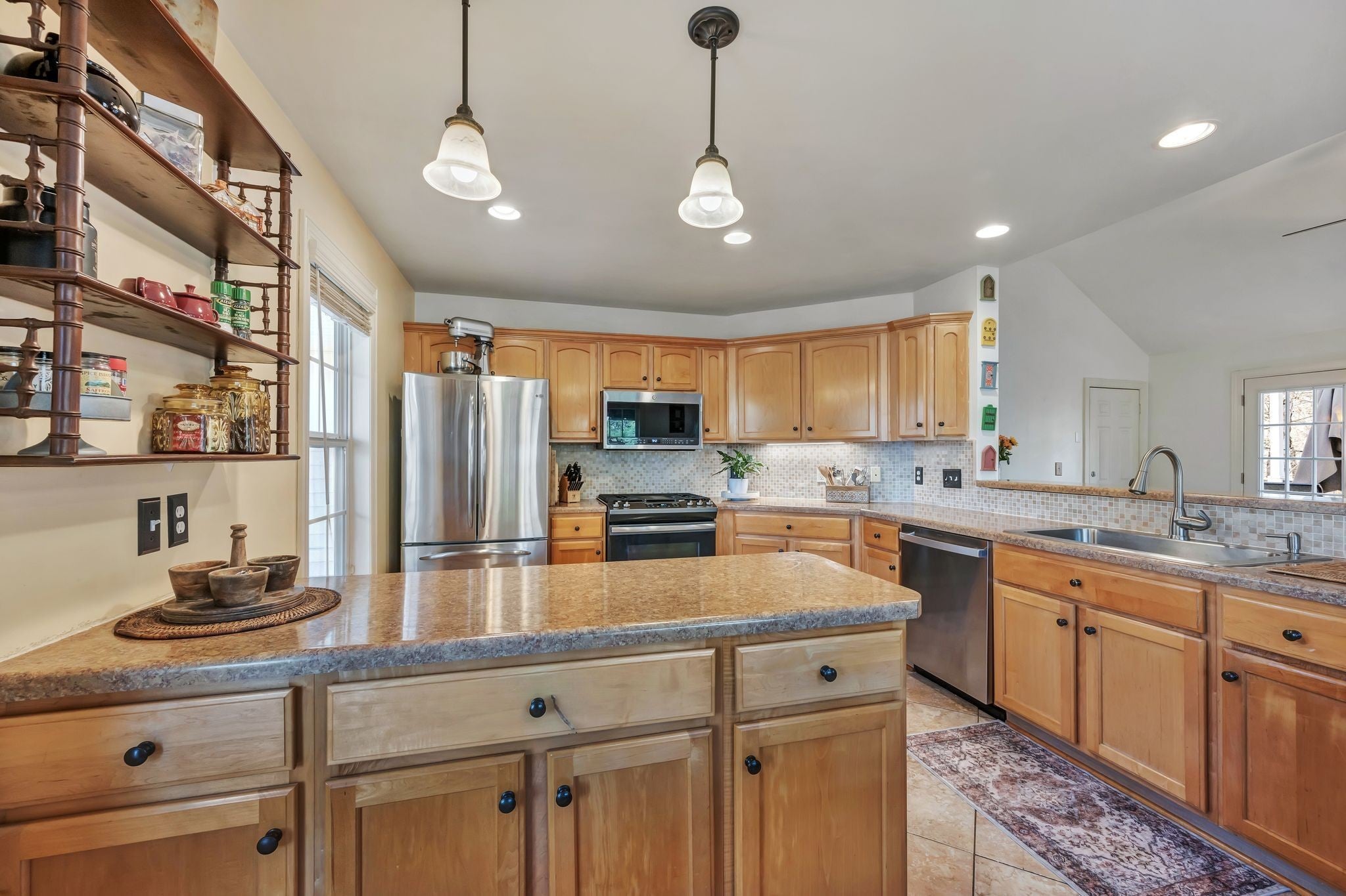 - Built-In Gas Oven, Gas Range, Dishwasher, Disposal, Freezer, Ice Maker, Microwave, Stainless Steel Appliance(s)