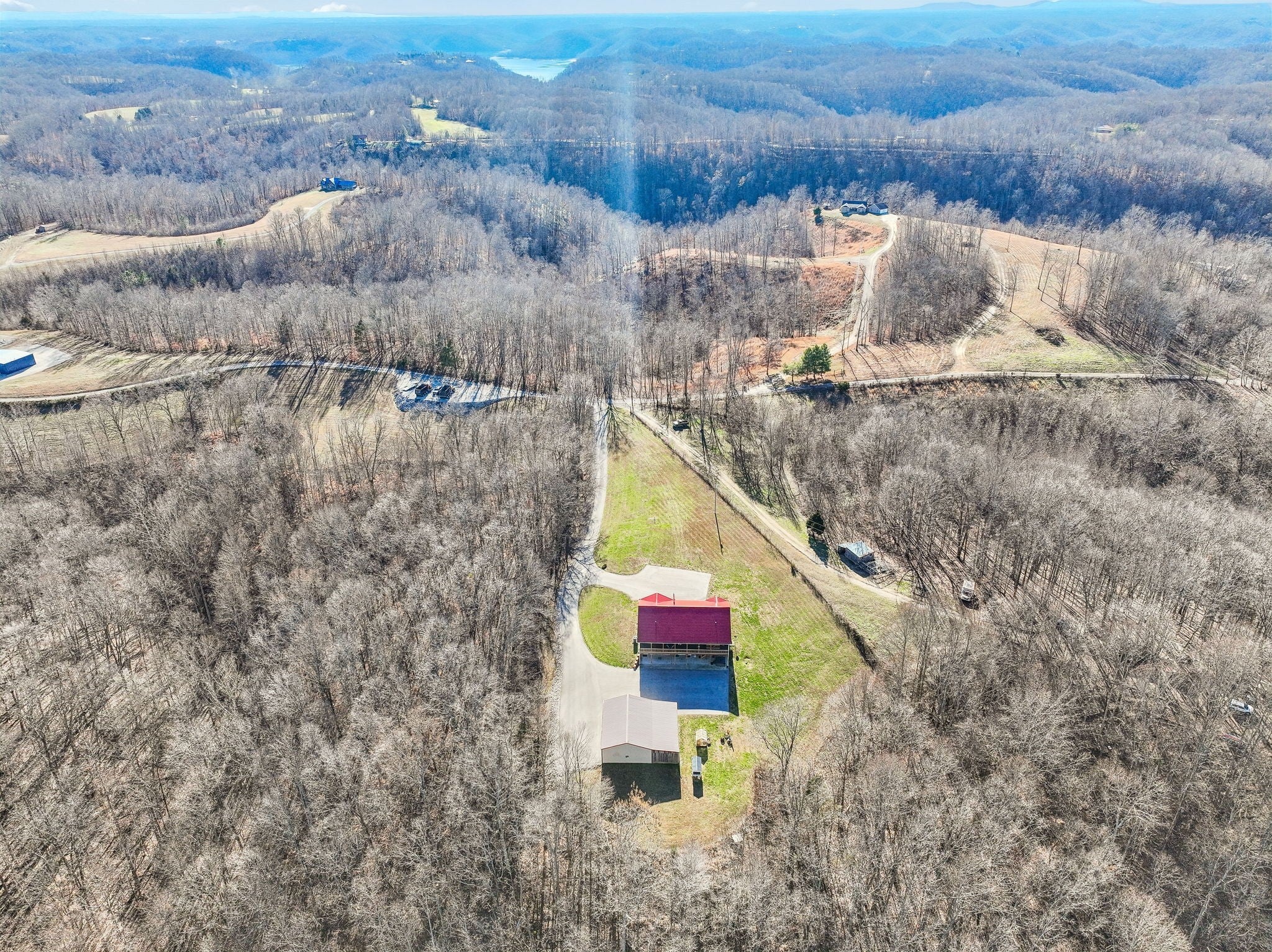 Stunning home + shop + acreage+ finished basement suite +hunting +Lake=SCORE! This beautiful 3BR/3BA custom home sits on 17.76± unrestricted acres close to Center Hill Lake. Main level showcases vaulted wood ceilings in both the living room (w/ a fireplace) and kitchen, plus hardwood and tile flooring throughout. Enjoy the spacious kitchen w/granite countertops, gas stove, backsplash soft close cabinets & stainless appliances. Split bedroom layout includes a primary suite w/ jetted tub, double sinks, walk in shower & a huge walk-in closet. You will love the spacious laundry room w/ utility sink and there is an office/flex room just off the primary bedroom. The fully finished walk out basement features a full kitchen, living room, full bath & 2 flex rooms perfect for extended family, guest or multi generational living. Additional highlights include a tankless water heater, paved driveway, covered front porch, covered back deck that spans the home, hot tub, and a basement garage. Need extra workspace or storage? You’ll appreciate the detached 30x40 garage as well. Oversized gravel pad prior to driveway offers parking for equipment and extra vehicles Big-ticket updates already done: 1 year old metal roof & HVAC hybrid heat system w/ antimicrobial UV light. Located in DeKalb Co & zoned for Baxter schools.