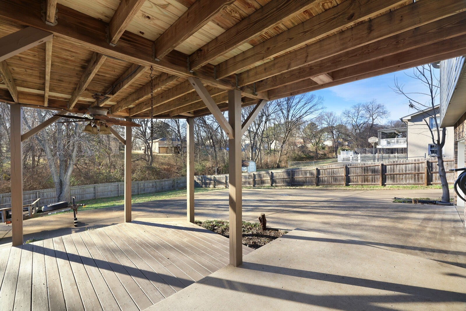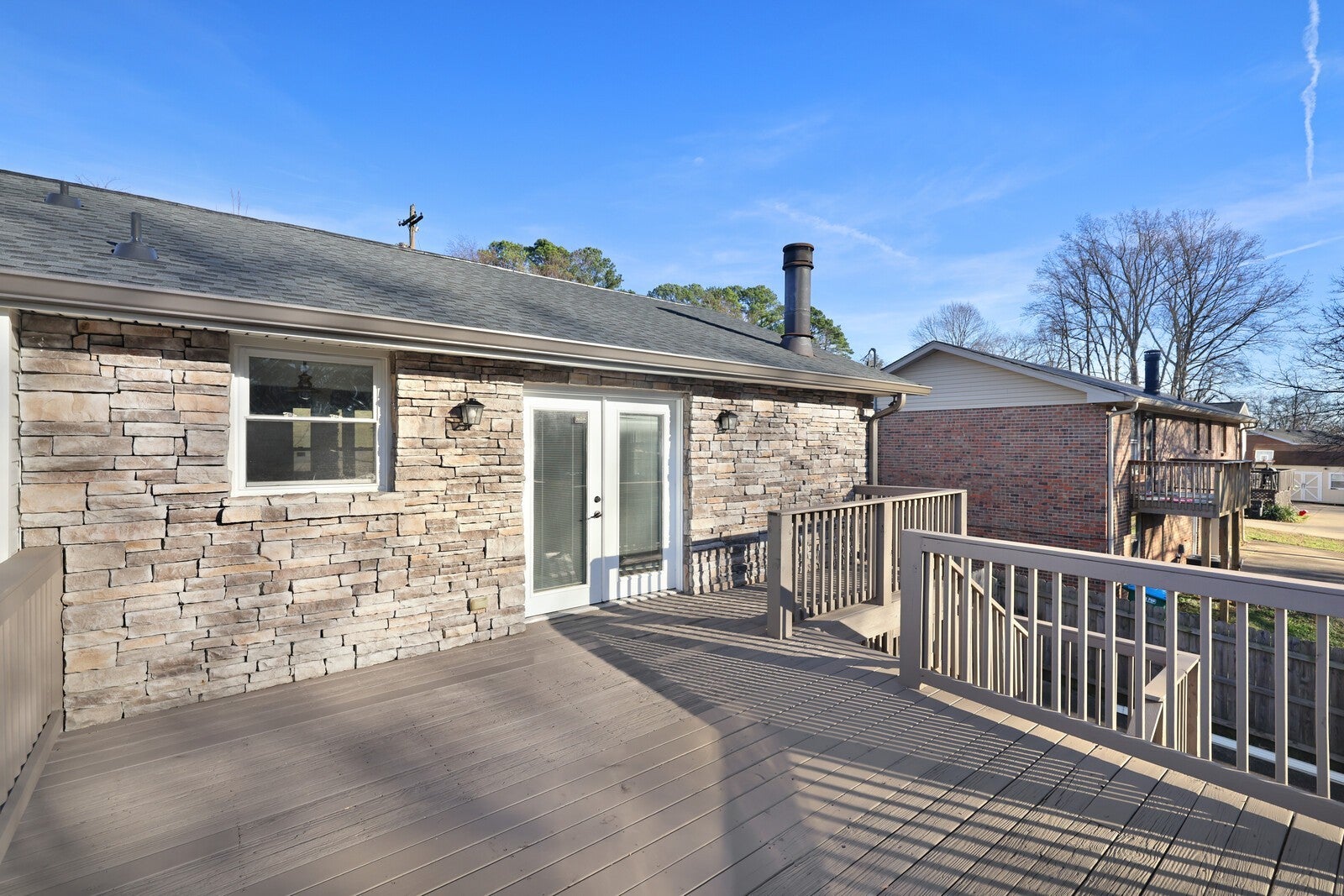 **Motivated Seller!**This unique and versatile home offers thoughtful updates including flexible living spaces and exceptional outdoor amenities all set on a fully fenced half-acre lot with two separate concrete driveway entrances. With a new roof and freshly painted exterior the covered front porch welcomes you inside, where you’re greeted by a bright living room featuring original hardwood floors, fresh paint throughout the entire home, and a stacked-stone fireplace that adds warmth and character. Just beyond the living room, the newly tiled kitchen showcases granite countertops, a central island, and modern design updates that blend style with functionality. Off the kitchen and through French doors you will notice a beautiful, freshly painted, renovated deck overlooking the expansive backyard, complete with an additional concrete pad and storage shed. Down the main hallway, you’ll find 3 bedrooms with hardwood flooring, and 2 bathrooms with stylish tile flooring, one with new double vanity sink, new mirror, and tub/shower combo. At the end of the hall sits the primary bedroom with an en-suite bathroom tucked away on the left, offering privacy and comfort. From the living room, stairs lead down to a second living space, which can also be accessed from a separate French door exterior entrance, perfect for multi-generational living, guests, or added flexibility. This lower level features new LVP flooring, a dedicated laundry area, space for a refrigerator and kitchenette, and a spacious second primary suite with a fully updated, oversized bathroom including a dual-sink vanity, separate tub, and walk-in shower. With its large deck, covered porch, multiple living areas, and incredible potential, this one-of-a-kind property truly needs to be experienced in person to appreciate all it has to offer. Brand new water heater (2026). Up to 1% lender credit on the loan amount when buyer uses Seller's Preferred Lender.