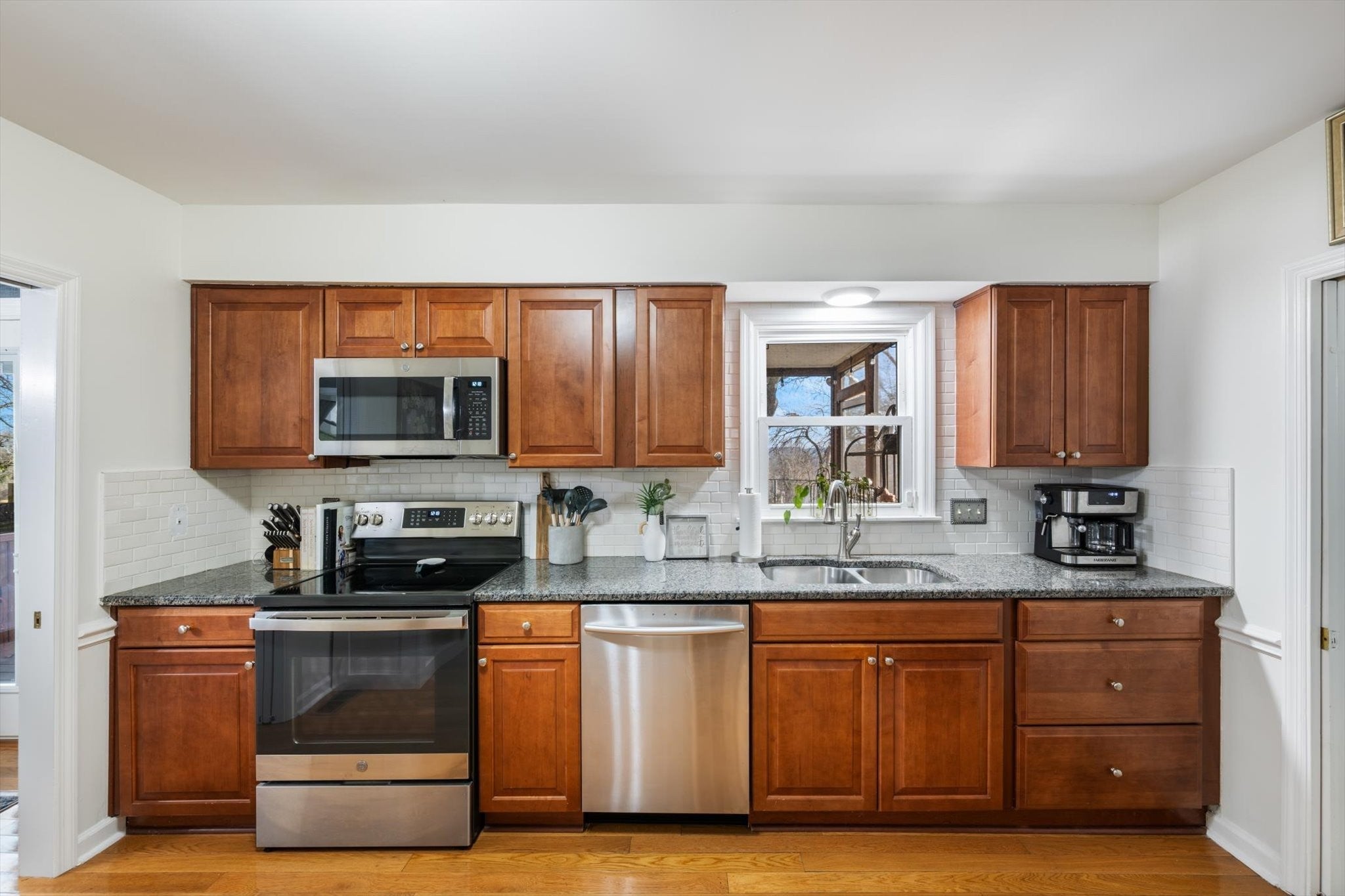 - Electric Oven, Dishwasher, Microwave, Refrigerator, Stainless Steel Appliance(s)