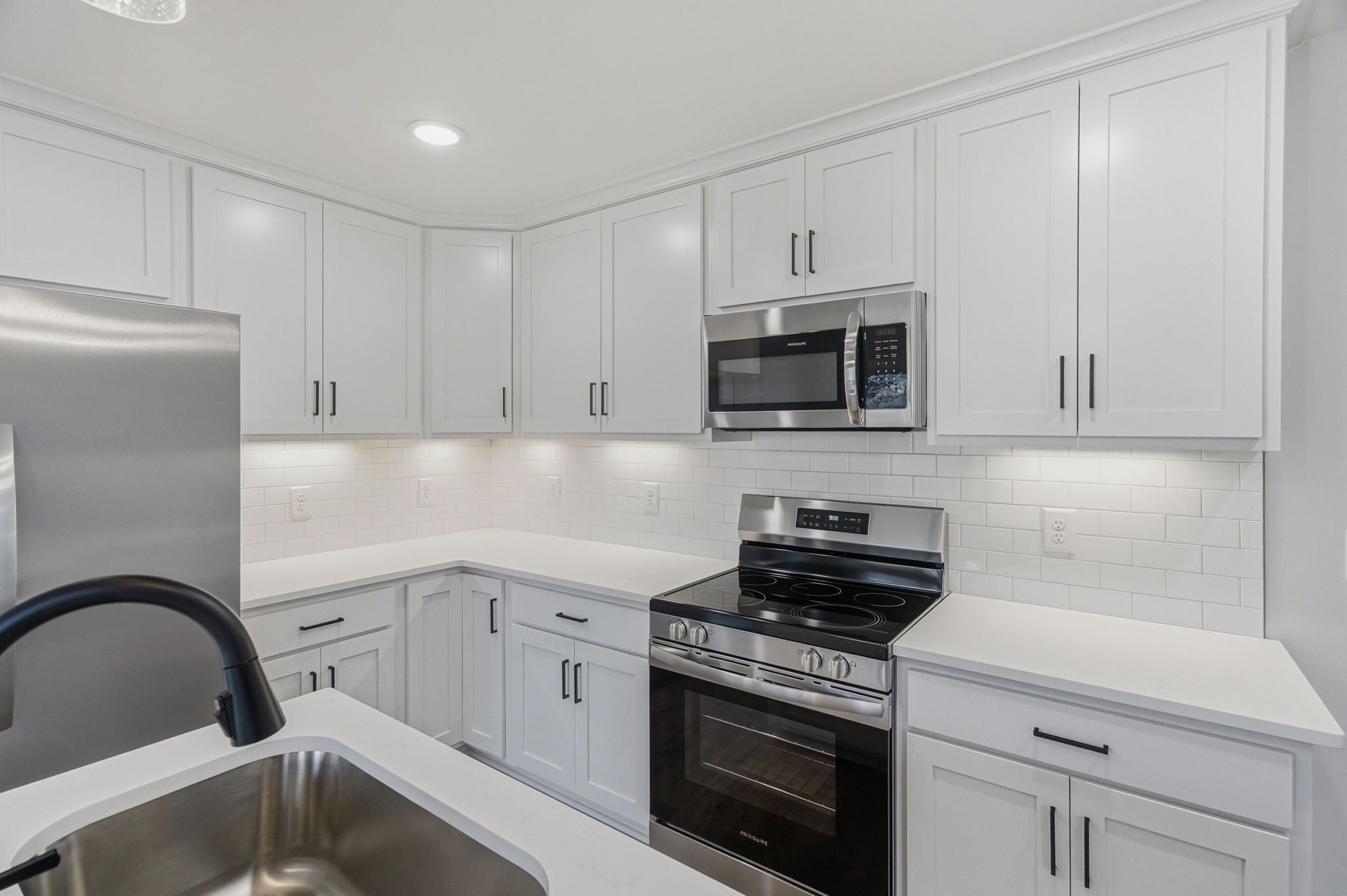- Electric Oven, Electric Range, Dishwasher, Microwave, Refrigerator, Stainless Steel Appliance(s)
