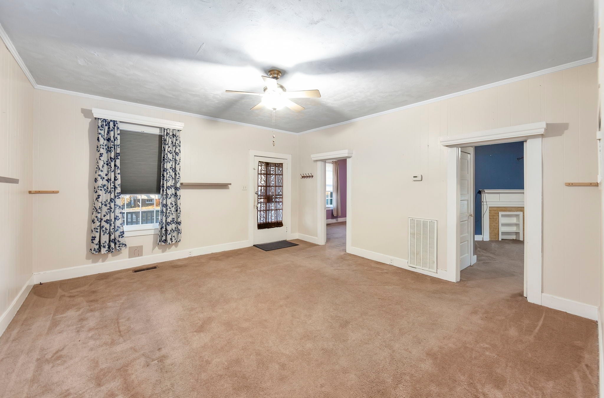 Discover the charm of this quintessential All-American small-town home, brimming with character from its 1920s origins. Unwind on the inviting front porch as you soak in the neighborhood vibes, or retreat to the cozy sunroom at the rear for a peaceful escape. Beneath the current carpet lies beautiful original hardwood flooring, ready to be revealed. Inside, you'll find generously sized rooms, including three bedrooms, two bathrooms, and a dedicated dining area. The kitchen boasts ample cabinetry for all your storage needs. Adding to its appeal, a full basement stretches under the entire house, offering ample storage or potential for expansion, while a convenient shop is located just off the garage, ideal for hobbies or projects. Step from the sunroom onto the brand-new deck, where you can enjoy serene views of the spacious backyard—perfect for gatherings or quiet moments alike.