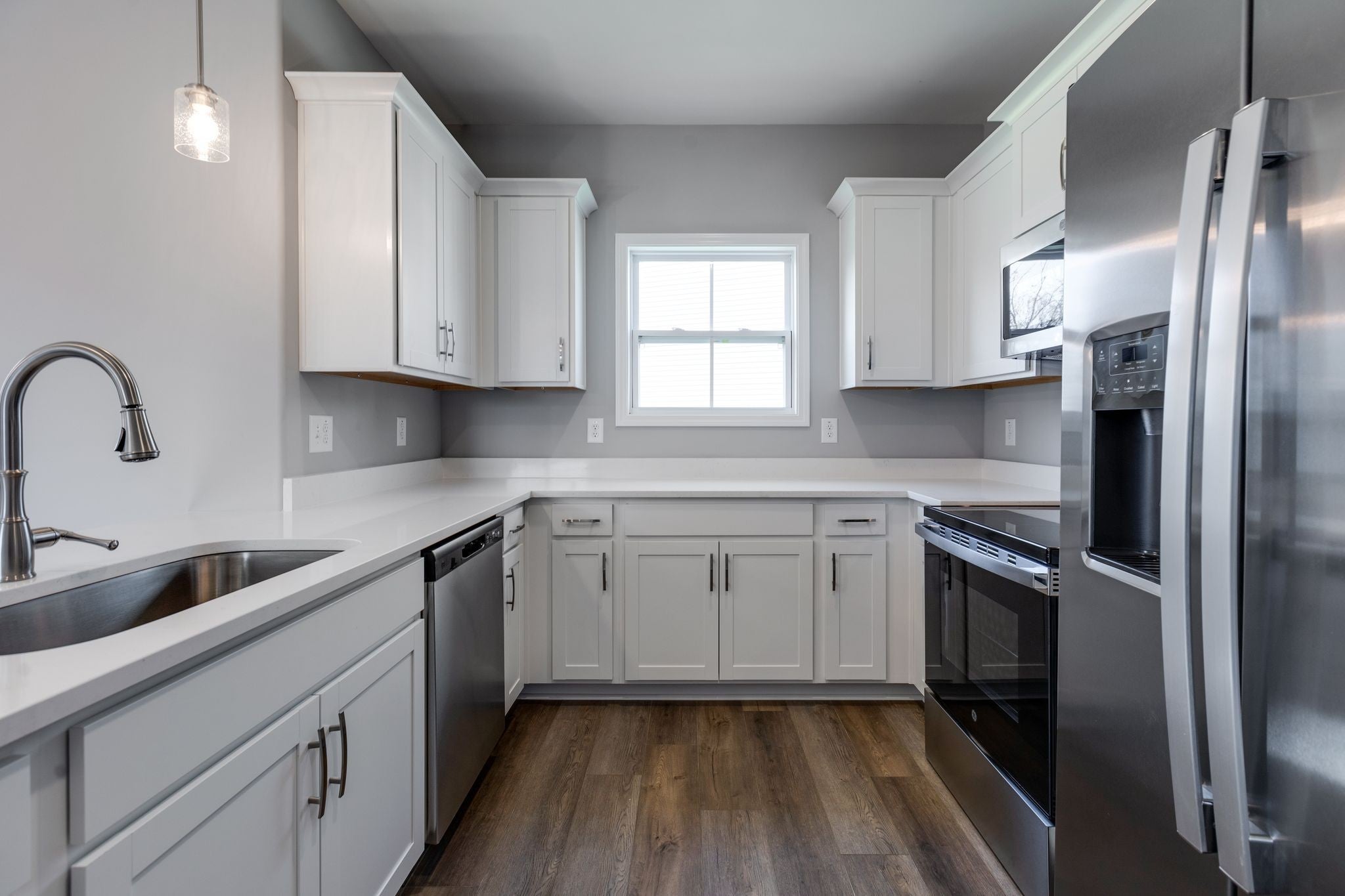 New Construction in Cul de sac Queen Anne style house of 1269 square feet features a spacious living and dining room area and a private master bedroom suite with a walk-in closet. This open floor plan includes a total of three bedrooms, two full and 1/2 bathrooms, a laundry room, and U-shaped kitchen with a breakfast bar that opens to the dining room. The historically inspired exterior offers a dutch gabled roof, covered front and rear porches, and exterior storage room. Call TODAY for Personal Tour