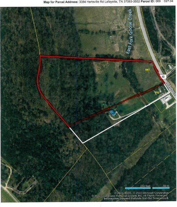 14+ ac located in an ideal rural – country – private location but convenient to approx. 3 miles to Lafayette, TN. Year around creek (East Fork Goose Creek) going through the property (550” of creek), modest restrictions (double wides allowed), loads of wildlife, approx. 7 ac in an open level to a gentle roll cleared fields (more could be cleared) and the remaining in gentle rolling – level mature woodland, approx. 350’ of paved State Hwy road frontage, Natural gas well on the property is capped but can be used, utilities available at the road (not installed), some fencing, lovely mountain views, several building sites to select from, ideal horse property and lots of fresh air. Billboard sign at corner of property generates an income of $500 a year – will transfer to the buyers at closing. Buyers will need to develop their own personal access – driveway off Hwy and develop their own bridge across the creek.