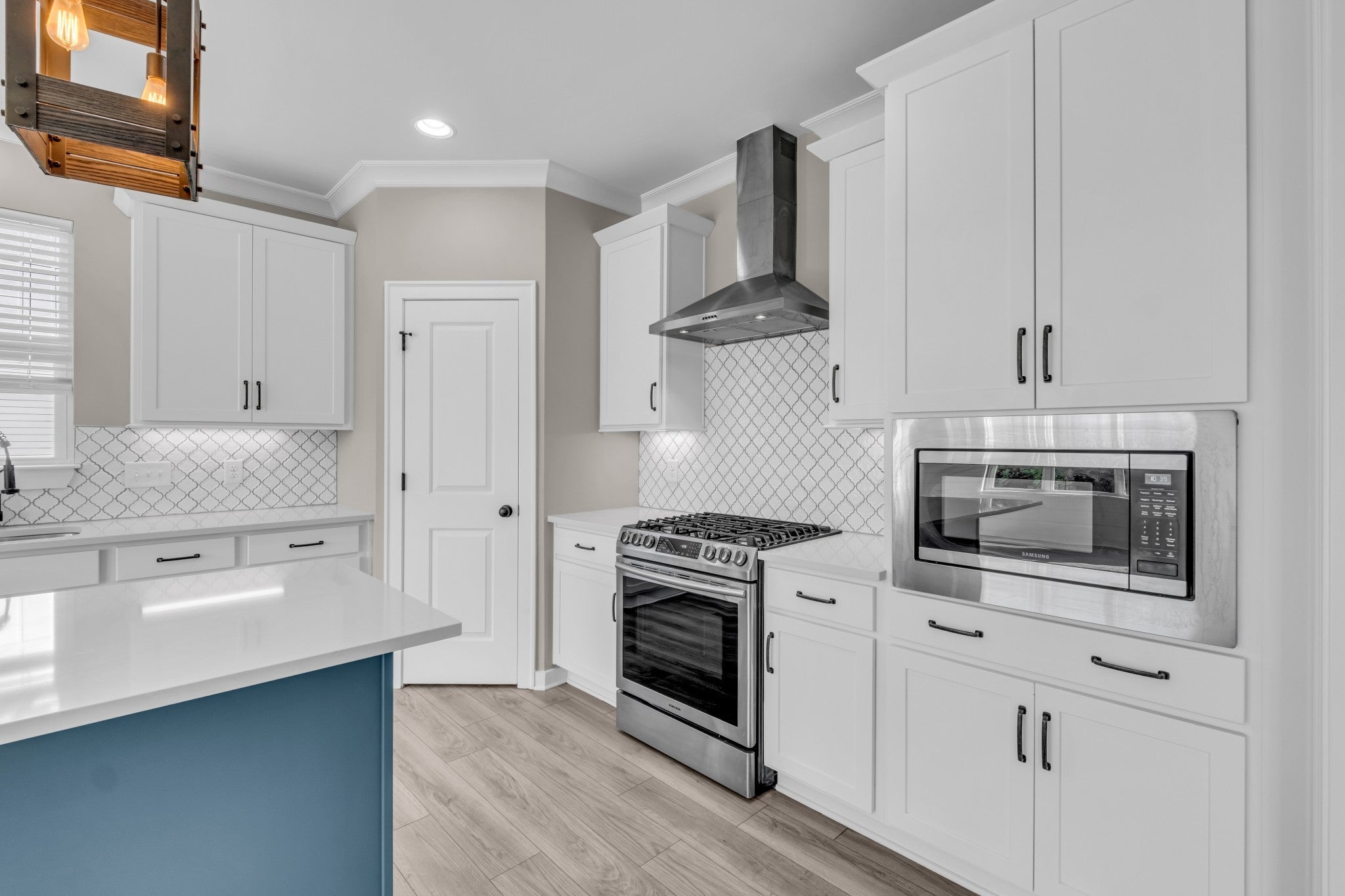 - Gas Oven, Electric Range, Dishwasher, Disposal, Microwave, Stainless Steel Appliance(s)