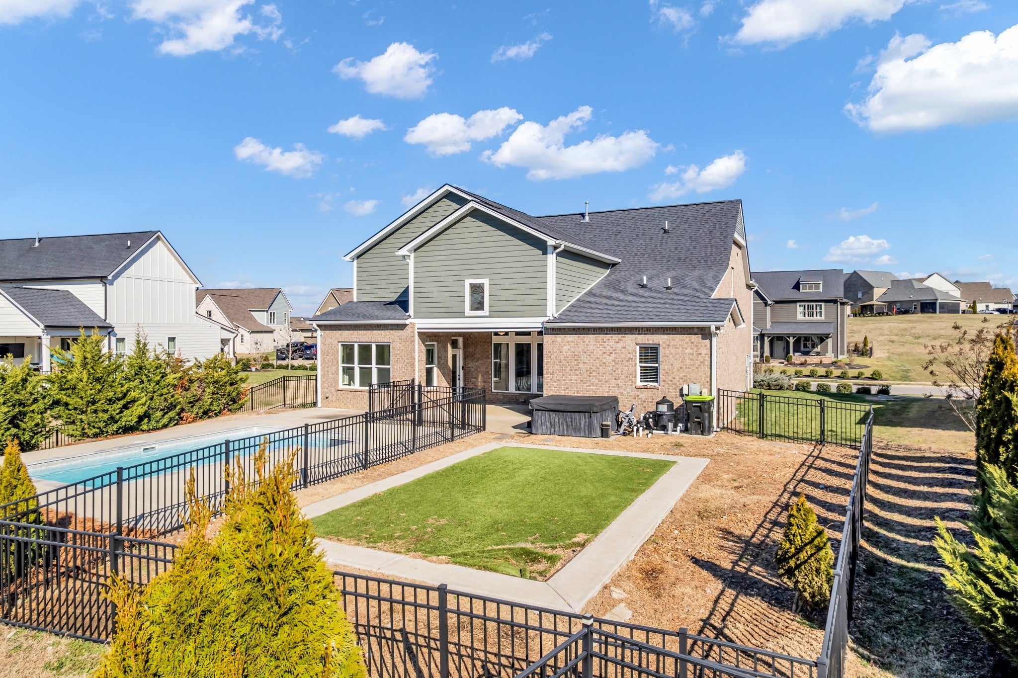 Move in Ready! Welcome to 834 Plowson Rd, where space, privacy, and convenience come together in Mt. Juliet. This Jackson Hills home offers a 5 bedroom, 4.5 bath with 3050 square feet of thoughtfully designed living space. Fresh interior paint throughout the home-including walls and trim-gives this property a crisp, move-in ready feel. Brand new carpet has been added to the primary suite and second main level bedroom. Inside you'll find vaulted ceilings, custom built in's, finished closets that elevate every room. There is an abundance of natural light throughout with a bonus room on the second floor. Enjoy a backyard retreat with a built-in inground pool, hot tub, privacy screened patio and fully fenced outdoor space. Complemented by a storm shelter conveniently located in the garage. Neighborhood amenities include fitness center, walking trails, wiffle ball field, playgrounds, clubhouse, and swimming pool.