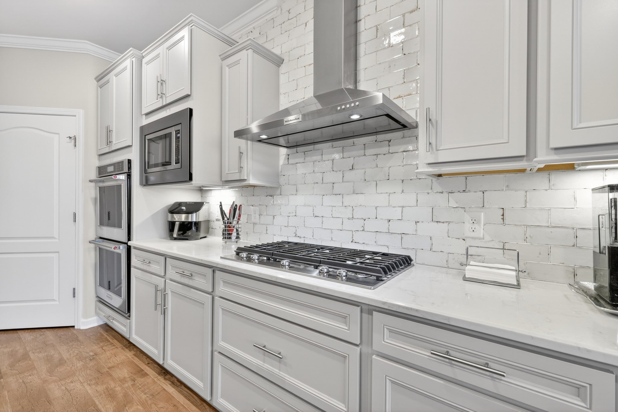 - Double Oven, Cooktop, Dishwasher, Disposal, Dryer, Microwave, Refrigerator, Washer