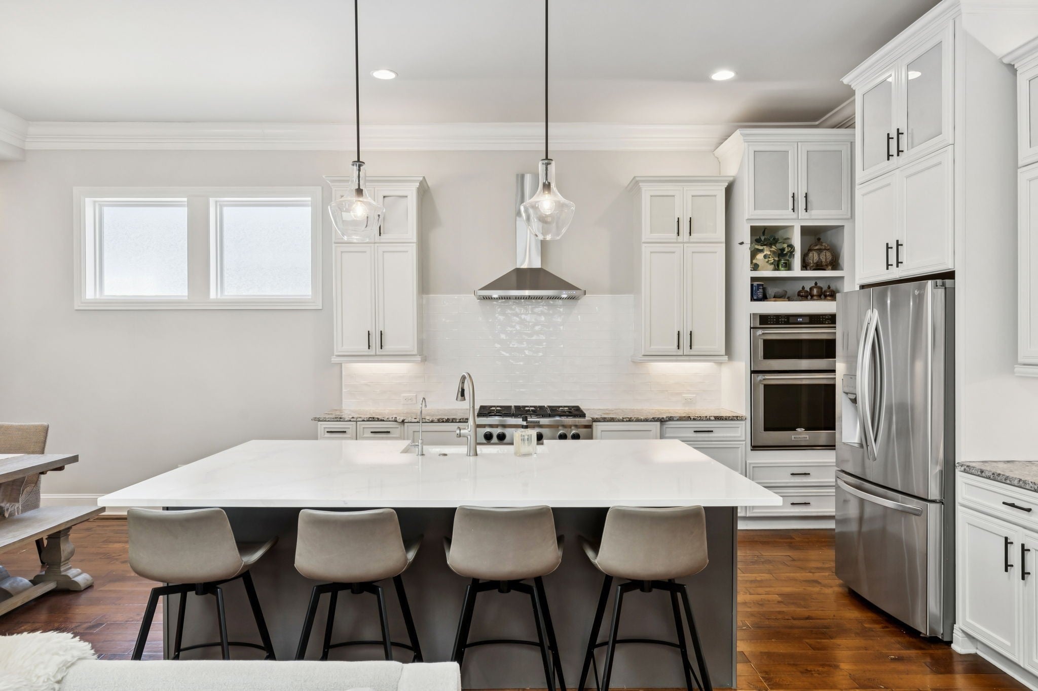 - Double Oven, Electric Oven, Built-In Gas Range, Dishwasher, Disposal, Microwave, Refrigerator