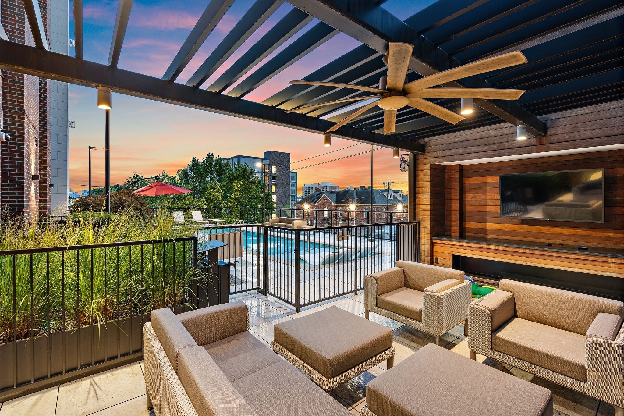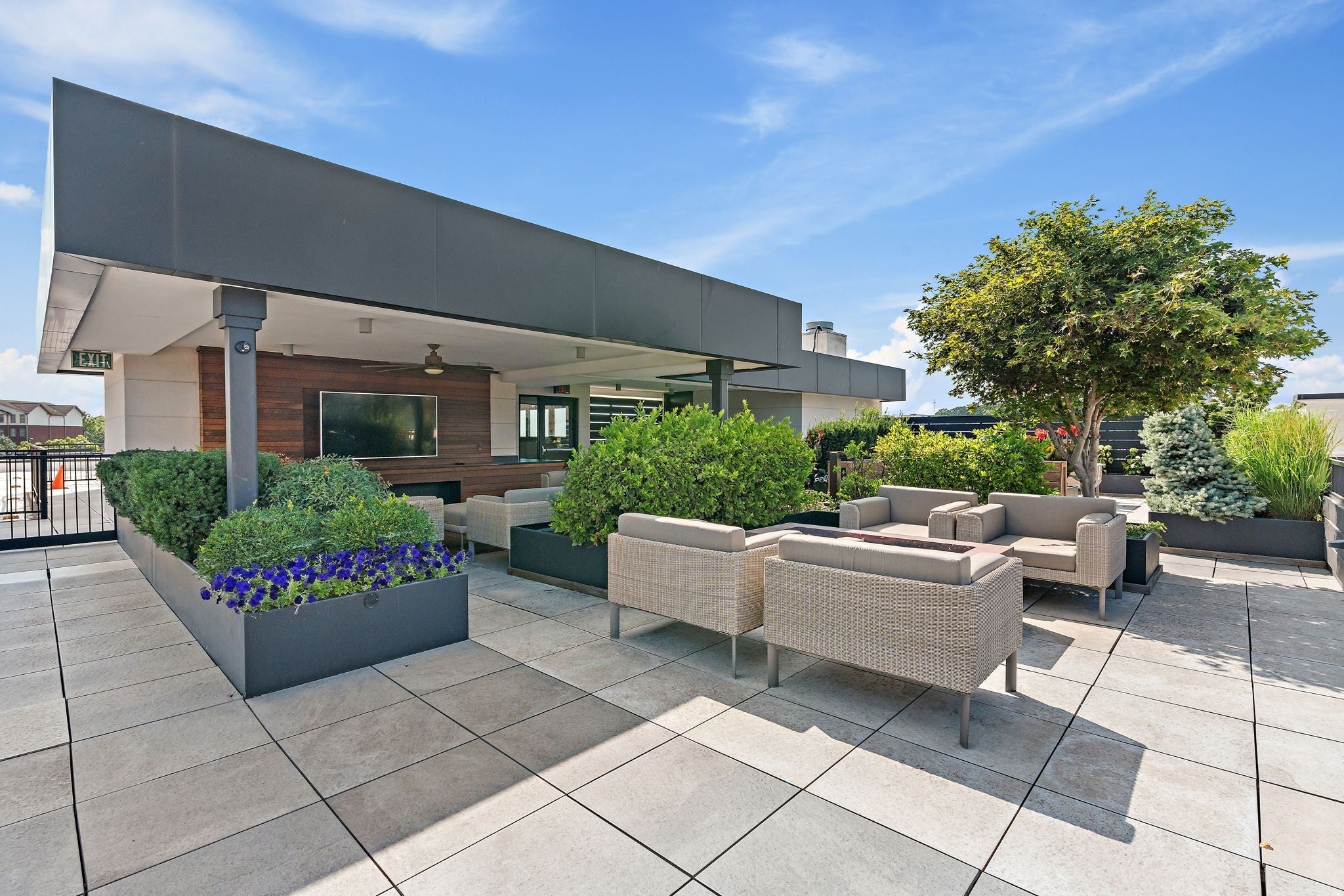 Top-floor sunset views and rare wraparound outdoor living at The Poston--now offered at $1,099,000! Dinners on the balcony or skydeck, dips in the heated pool=you'll love spring living here! Residents of The Poston enjoy a resort-style pool, fitness center, and stunning rooftop lounge --all with a comparatively low $680 monthly HOA in one of Nashville’s most walkable and convenient locations just outside Belle MeadePenthouse 503 delivers that same elevated lifestyle with gracious open living, a sleek kitchen and a private wraparound terrace. This exceptional corner residence lives as a 3-bedroom home, offering two private en-suite bedrooms plus a well-proportioned 3rd flex room--ideal for guests, a nursery, or a dedicated home office. The owner’s suite features a spa-like bath with deep soaking tub, separate shower, and an oversized walk-in closet. A second en-suite bedroom and a stylish powder room provide comfort and privacy for family and guests alike. The open-concept layout is filled with natural light and offers modern finishes paired with a warm, comfortable vibe—perfect for everyday living or entertaining. Beyond the residence, owners enjoy an exceptional lineup of amenities: a resort-style pool with lounge seating, lounge and fireplace, a fully equipped fitness center, and the show-stopping rooftop Skydeck featuring a covered outdoor living area, large-screen TV, full kitchen and grill, dining for twelve, fire pit, and panoramic downtown views. Two prime,side-by-side parking spaces in the secure garage—located next to the elevators—add everyday ease. This is a notably quiet building and quiet unit, offering rare serenity just minutes from the city’s energy. Belle Meade adjacent, yet only five minutes to Broadway, walkable to BrickTop’s, Stoney River, UAL, Centennial Park, The Local, coffee shops, and neighborhood favorites. Comparatively low HOA for the beautiful setting, security and amenities. Buyer and buyer’s agent to verify all pertinent information.