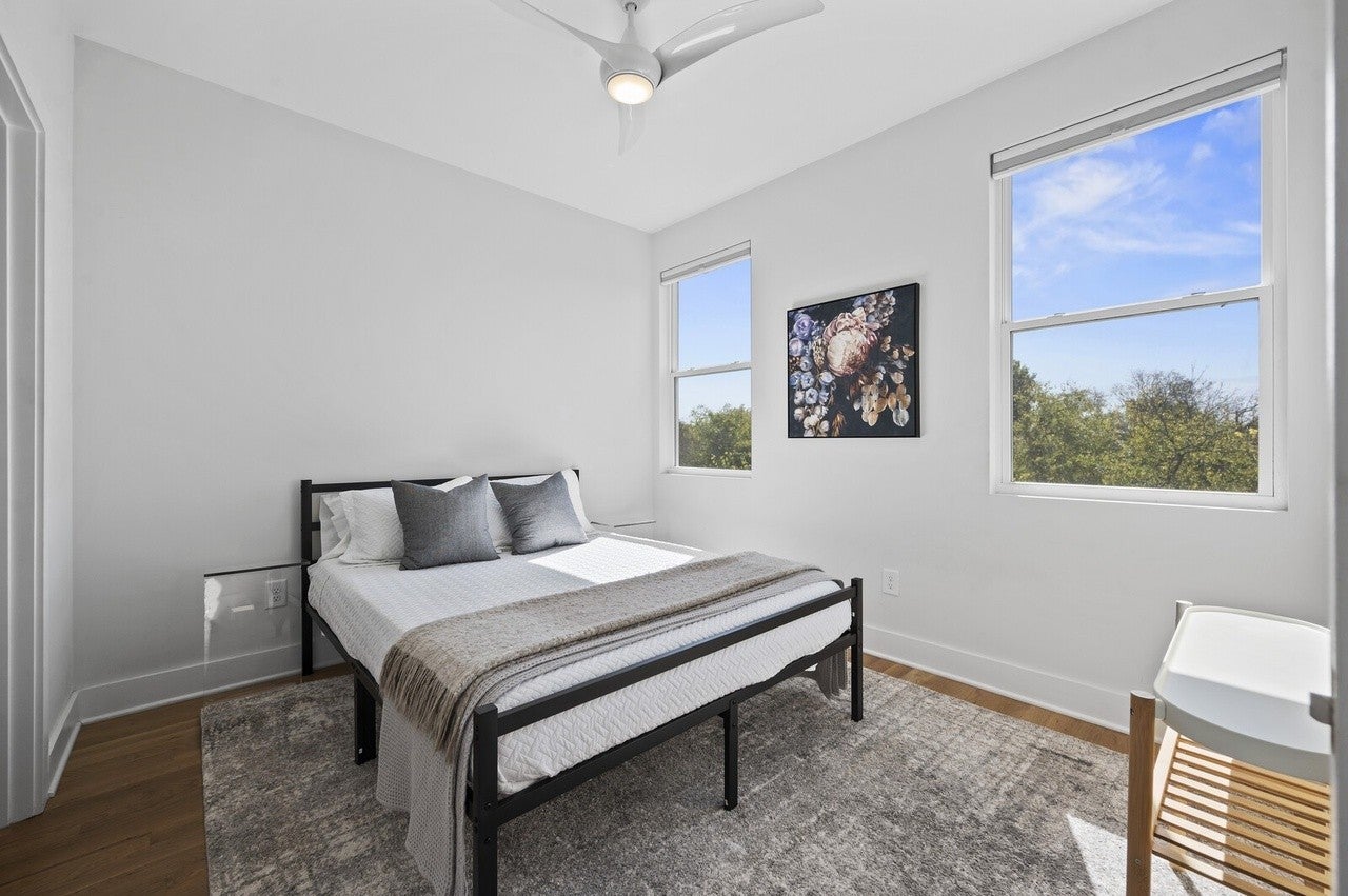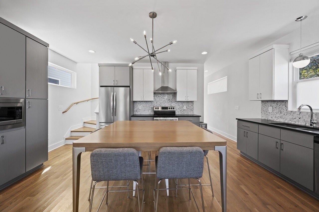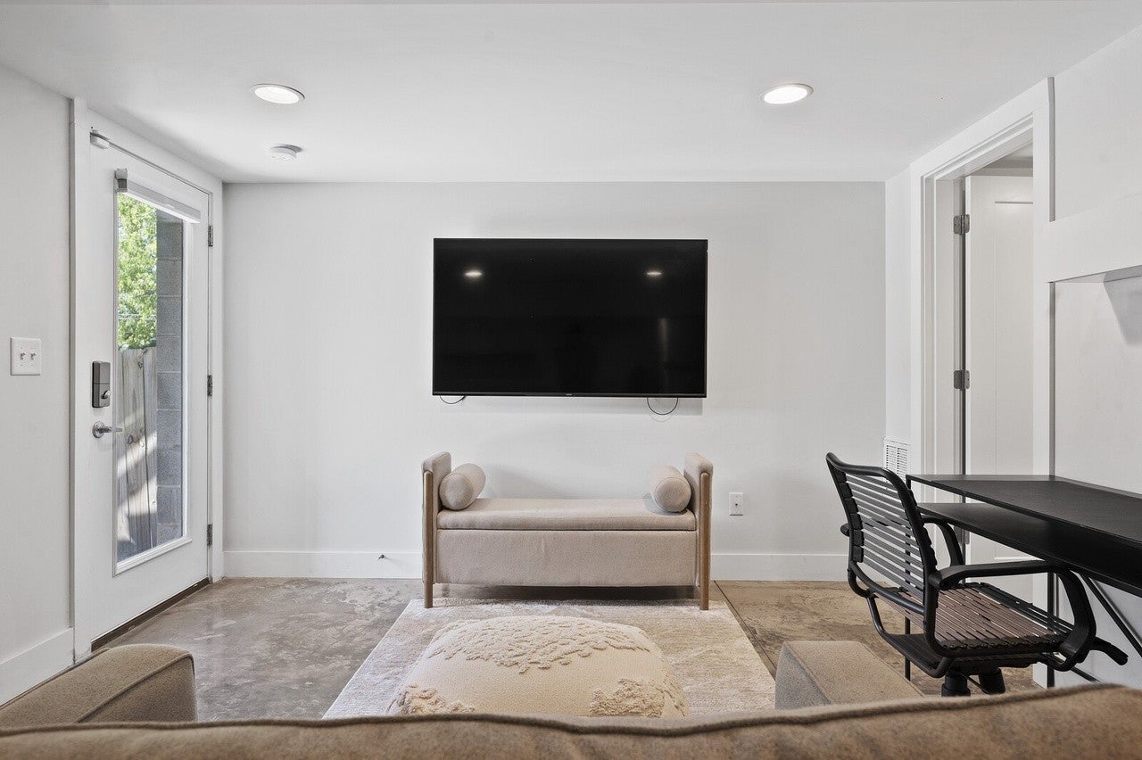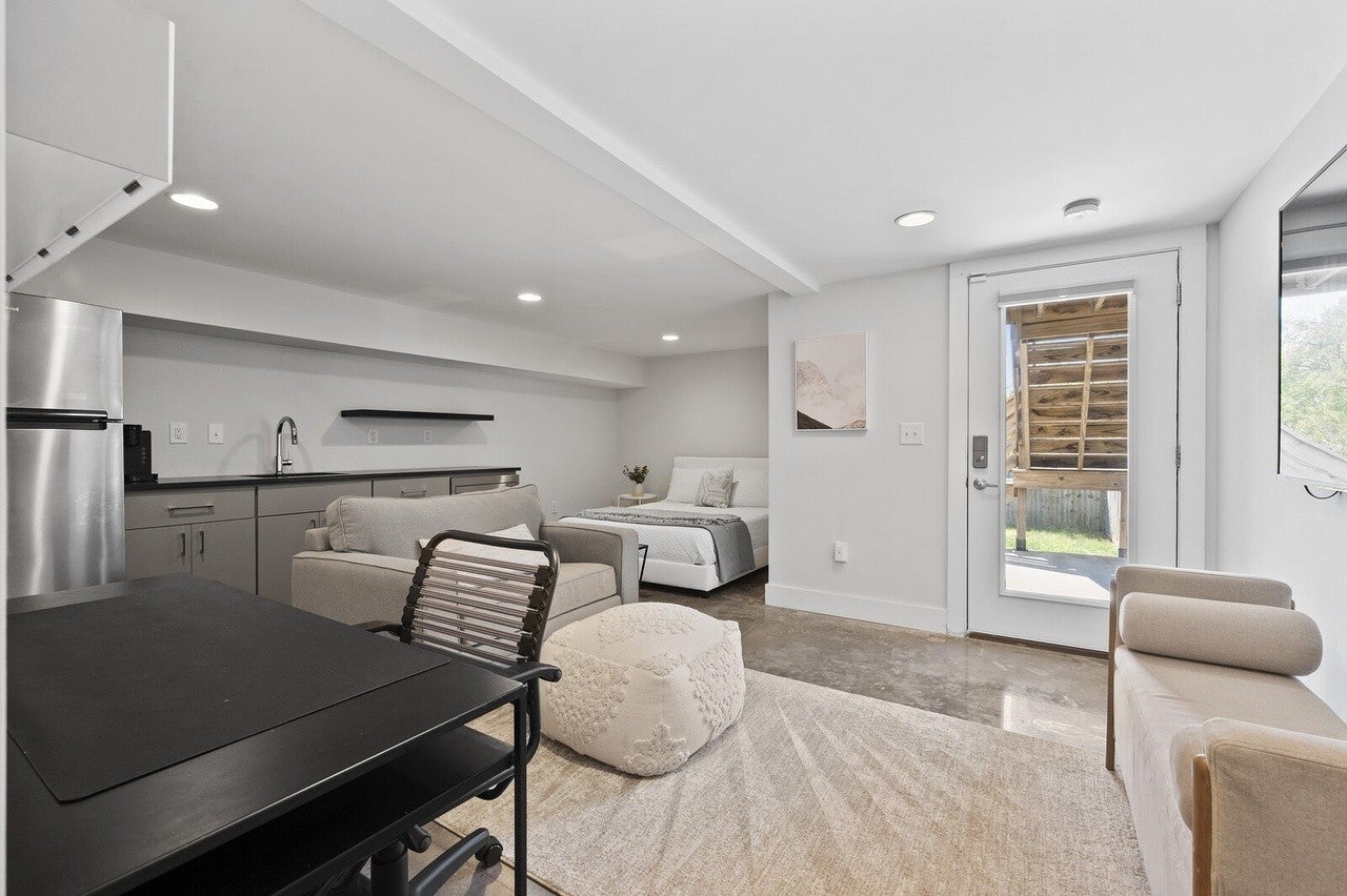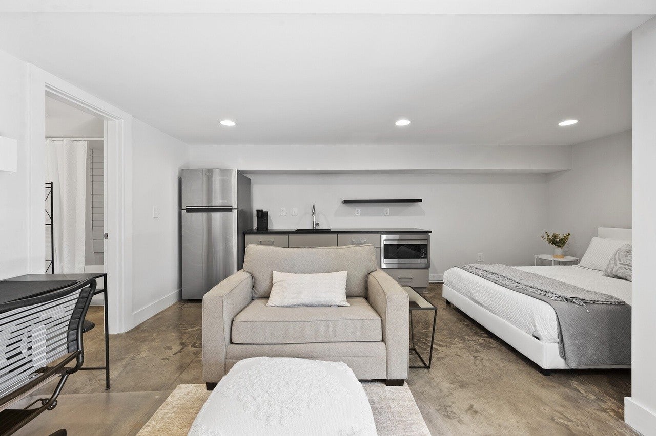 Main house has 3 bedrooms & 2 full bathrooms with modern finishes, quartz countertops and hardwood floors, plus a rooftop deck with downtown views. Additionally, a studio apartment is located in the basement and features a living room, kitchenette, full bathroom, walk-in closet and has its own private entrance. This could be in-law suite or long term rental.