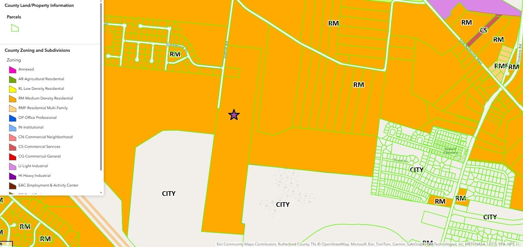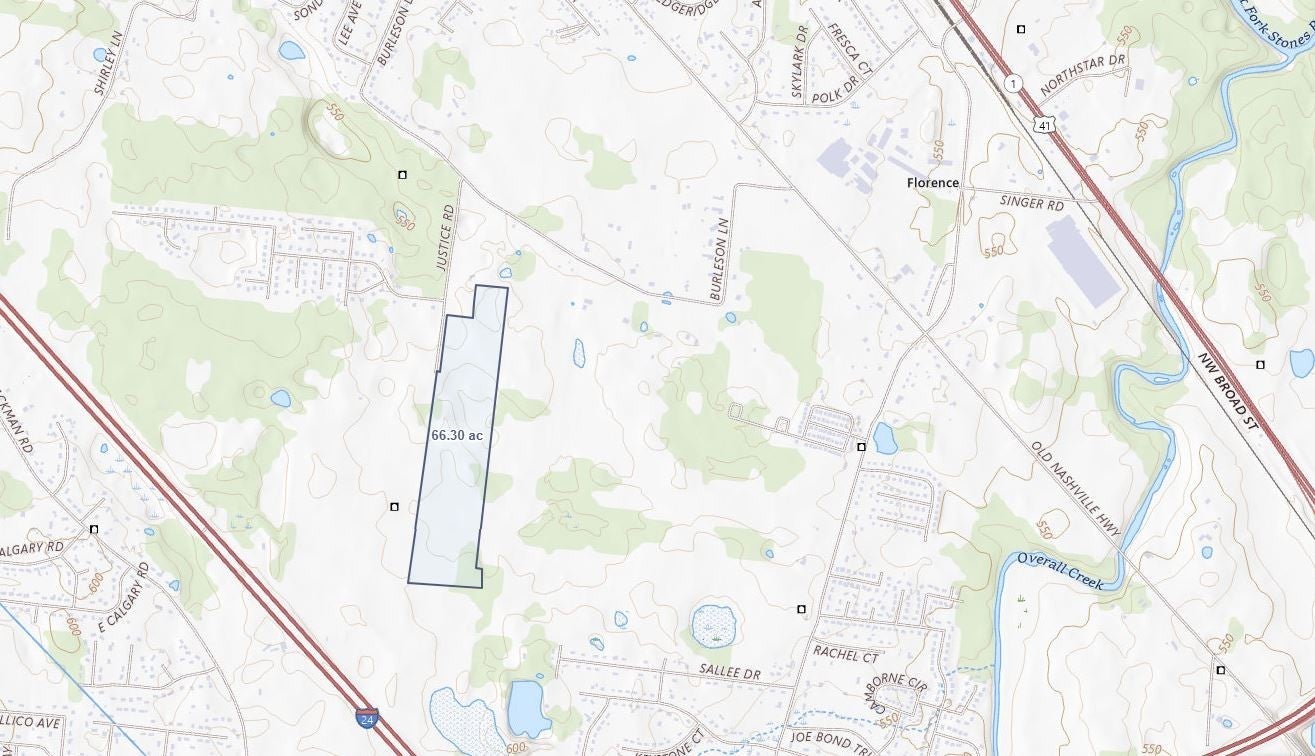 Tremendous residential development opportunity. Approximately 66+/- acres of level farm land contiguous to Murfreesboro City limits. 720+ feet of paved road surface along western border. Tax parcel size 73 acres, seller to retain approximately 6 on the north end of the parcel. Ideally located between Murfreesboro and Smyrna with easy access to I840 and I24. Do not disturb neighbor at 5028 Justice Road, parcel and house is not a part of this sale. Utilities currently provided by Middle TN Electric and Consolidated Utility District. Current zoning- Medium Density Residential: lot size 15,000sqft, 75ft width, setback -Front – 40 ft. Rear - 20 ft. Side -10 ft. Interested parties must verify development plans and requirements with Rutherford County or the potential for annexation with the City of Murfreesboro