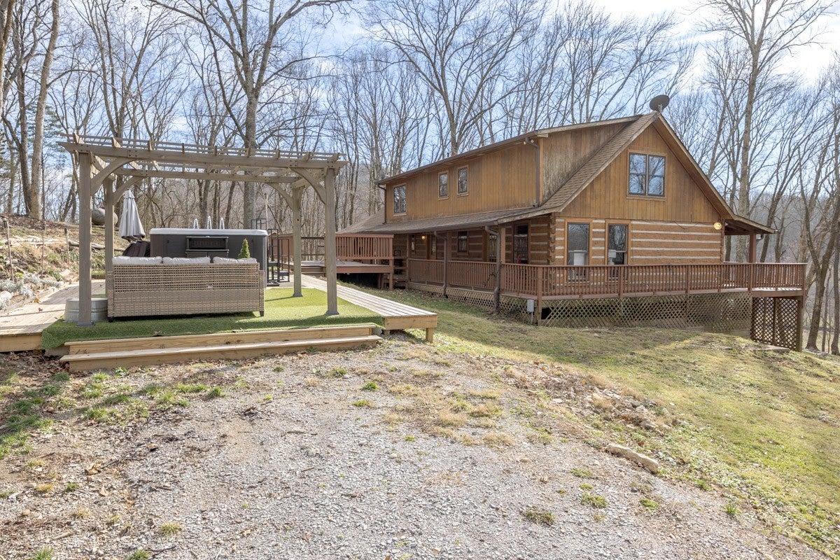 Your Nolensville retreat awaits. Discover the perfect balance of peaceful country living and everyday convenience in this beautiful custom log home set on 8.3 private acres. Surrounded by nature yet just minutes from Cool Springs, Franklin, and Murfreesboro, this property offers the rare combination of seclusion and easy access to town. Inside, a warm open-concept layout showcases rustic character paired with comfortable modern living. Vaulted ceilings and a dramatic stone wood-burning fireplace anchor the main living area, creating an inviting space for gatherings or quiet evenings at home. The upstairs primary suite provides a private sanctuary, complete with a spacious bedroom, walk-in closet, and an updated en-suite bathroom. Outdoor living is equally impressive, with a wraparound porch and expansive deck overlooking scenic rolling hills—perfect for morning coffee or sunset views. The property also features a Swim Spa and an Amish-built shed with a loft, offering flexible space for storage, hobbies, or creative use. Whether you’re seeking land, privacy, or a peaceful lifestyle without sacrificing convenience, this unique Nolensville property truly stands apart. Schedule your private showing today and experience it for yourself.