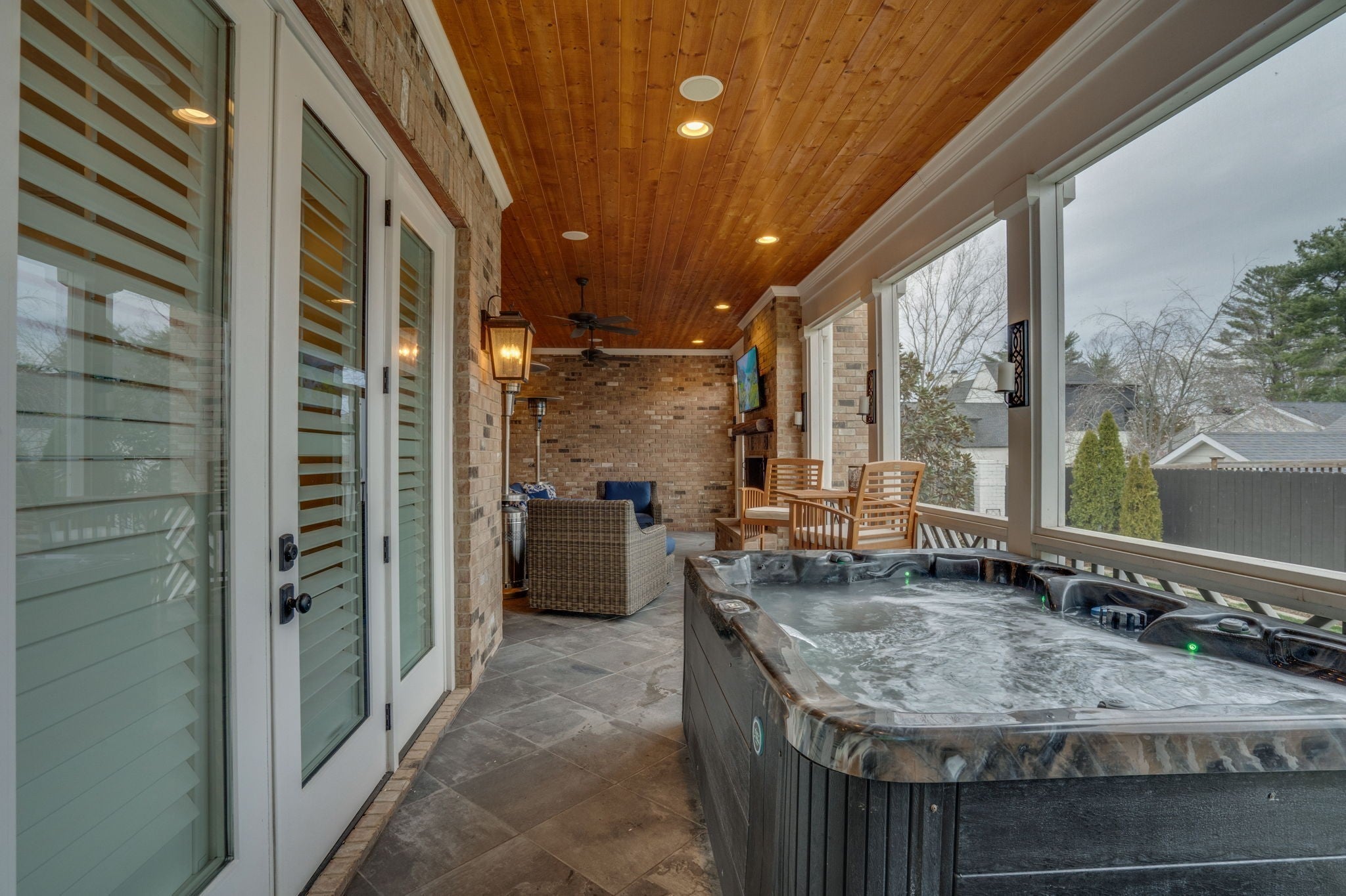 Better Than New in the heart of Green Hills! Walk to Whole Foods, GH Mall, YMCA and much more! Classic architecture with a modern and sophisticated design/layout! Plantation shutters on all windows! Jenn-Air Appliance package including built in refrigerator, 42' range & ice machine in wet bar. Dramatic custom slider doors connect the open living area into an over the top screened porch with fireplace and hot tub! Large primary bedroom opens onto porch with spa like bath featuring roman tub and large shower. Owner's closet has stackable washer/dryer. Upstairs secondary primary bedroom/bath. Upstairs living area opens to a charming balcony. Media room and wet bar off upstairs living area. Nice size fenced back yard with curbed landscaping beds. Walkable to Julia Green!