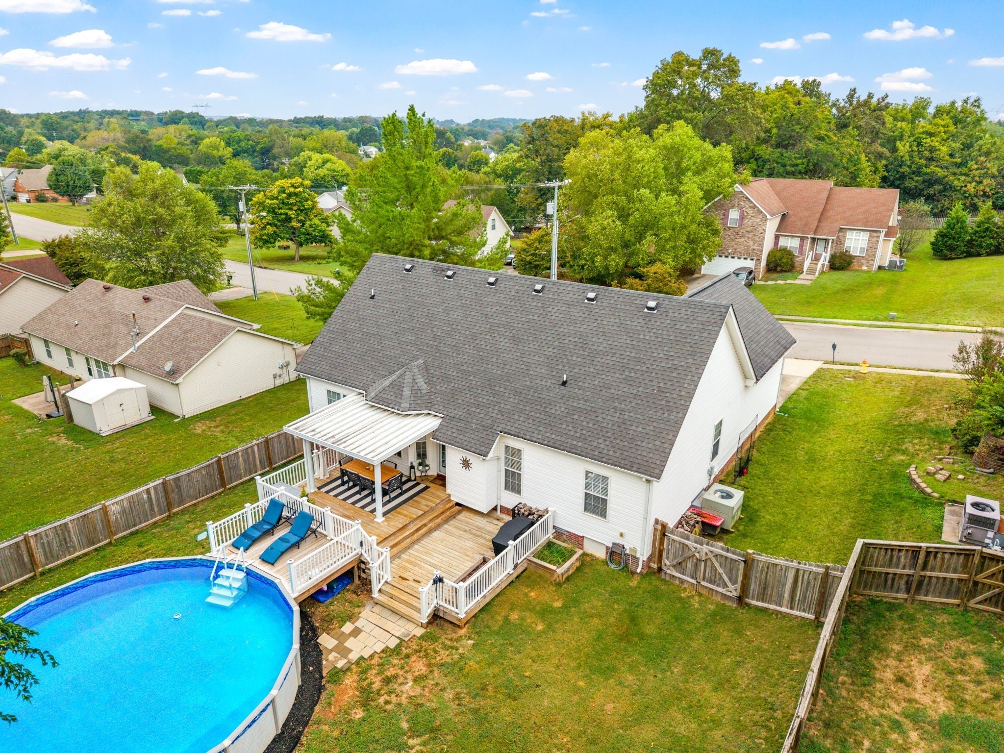 Welcome to this beautifully updated four-bedroom, two-bath ranch home featuring a desirable split floor plan. The bonus room, thoughtfully converted into a fourth bedroom, offers flexible living options to suit your needs. You’ll love the abundant natural light and modern finishes showcased throughout the home. Step outside to your own backyard oasis, complete with a spacious covered deck and an additional deck adjoining a stunning 30-foot above-ground sparkling pool—perfect for outdoor entertaining or relaxing summer days. Located in the highly sought-after Sango area and just minutes from I-24, this home offers convenient access to Fort Campbell and Nashville. Don’t miss the opportunity to make this stunning home yours!