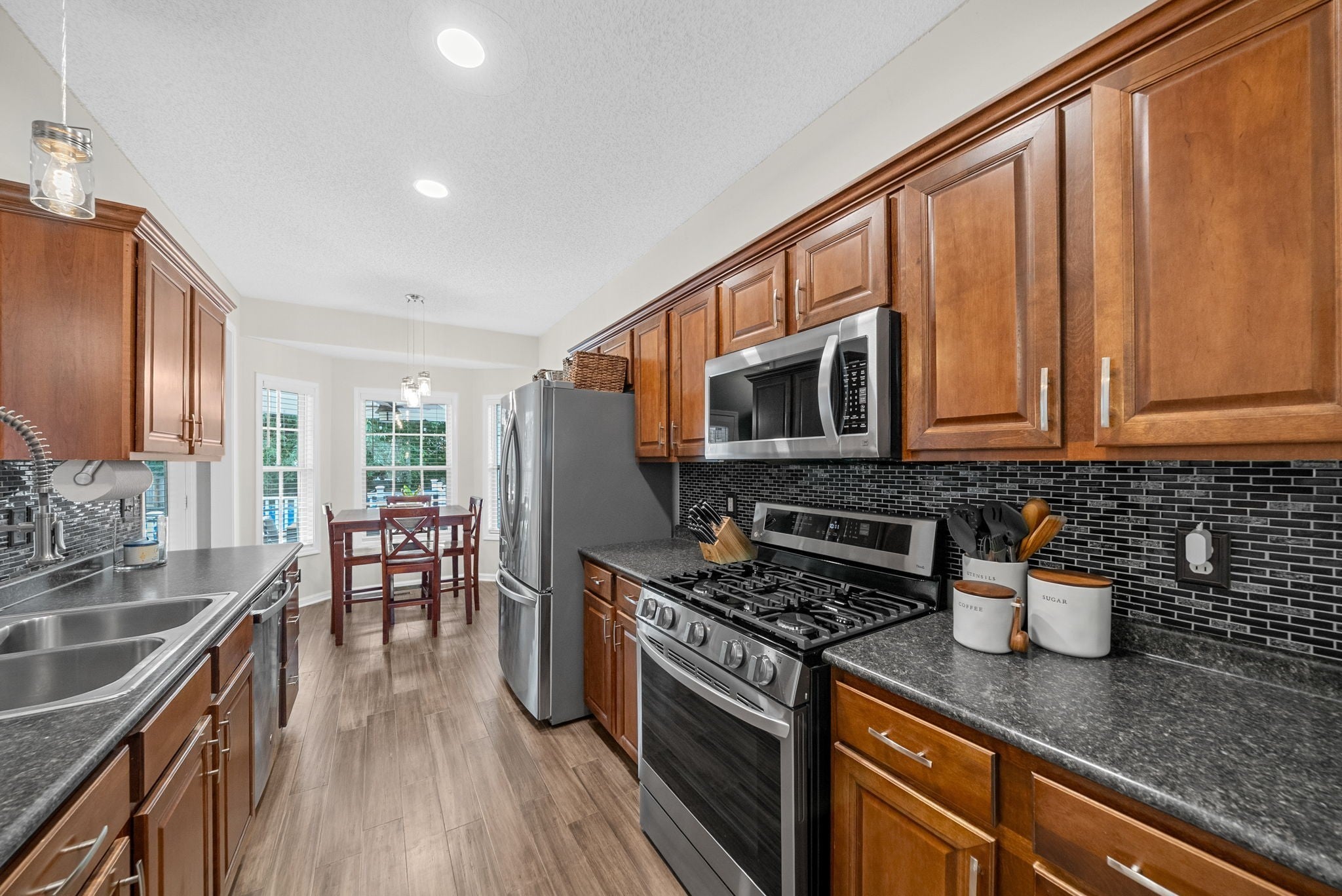 - Built-In Gas Oven, Built-In Gas Range, Dishwasher, Disposal, Microwave, Refrigerator, Stainless Steel Appliance(s)