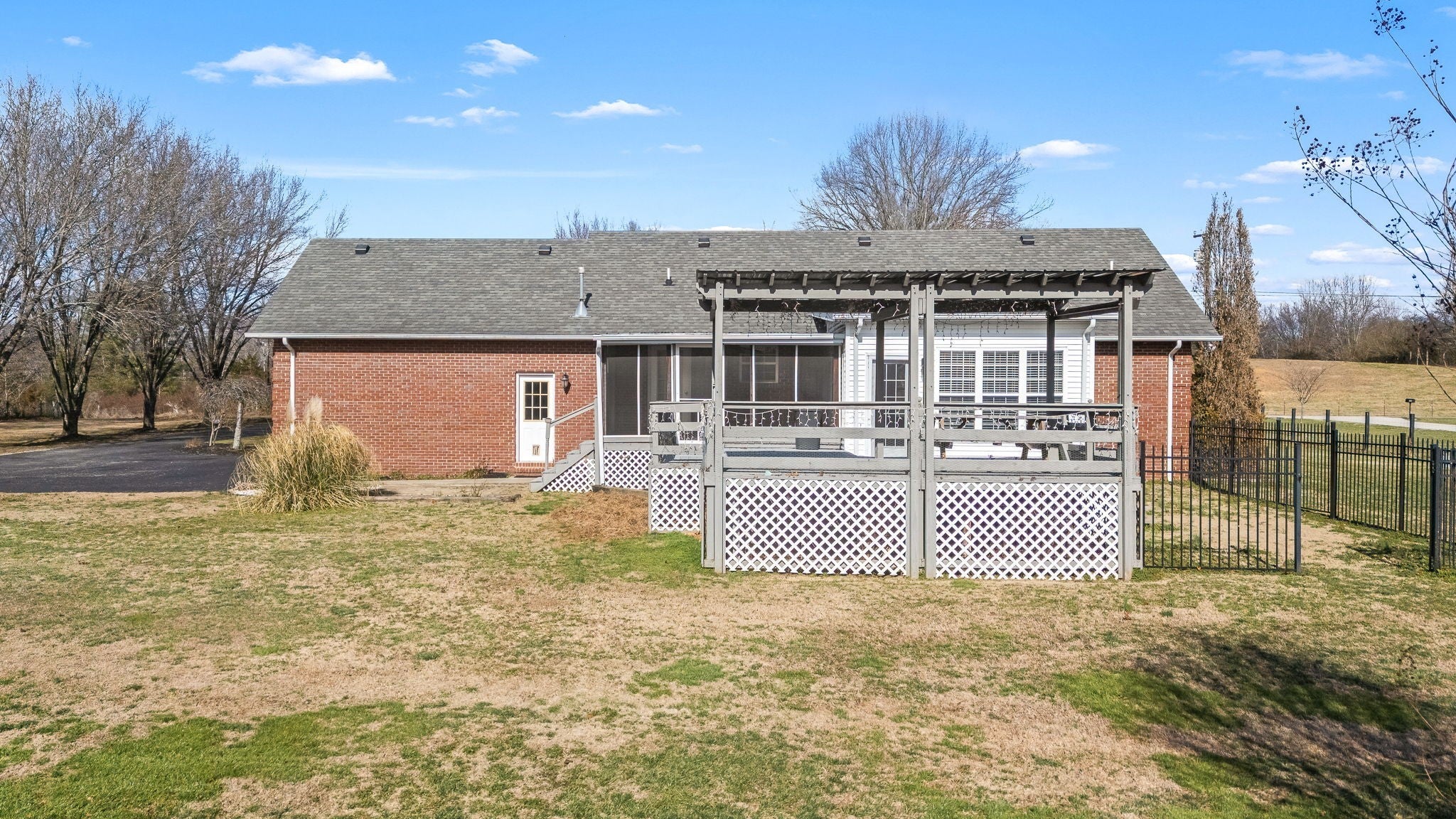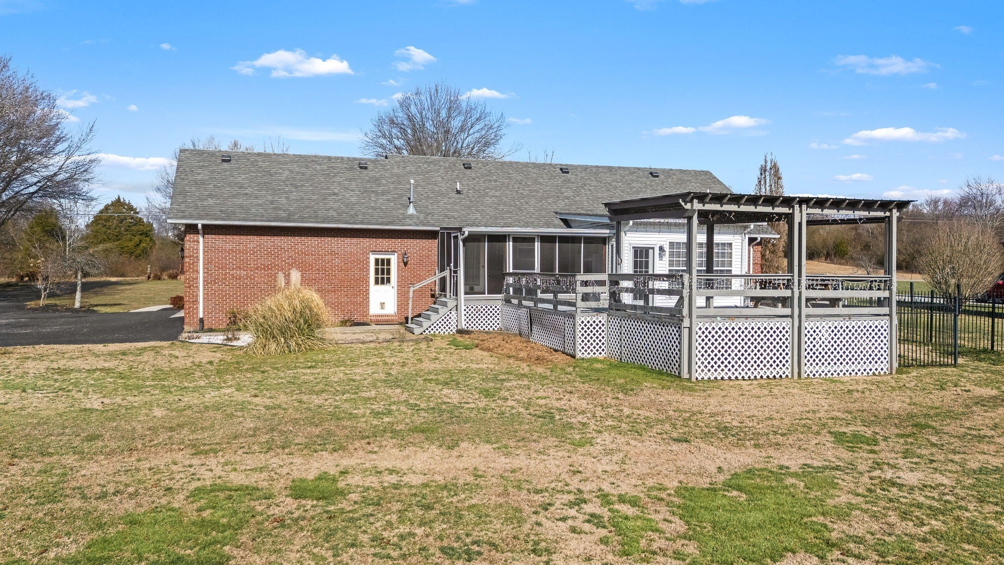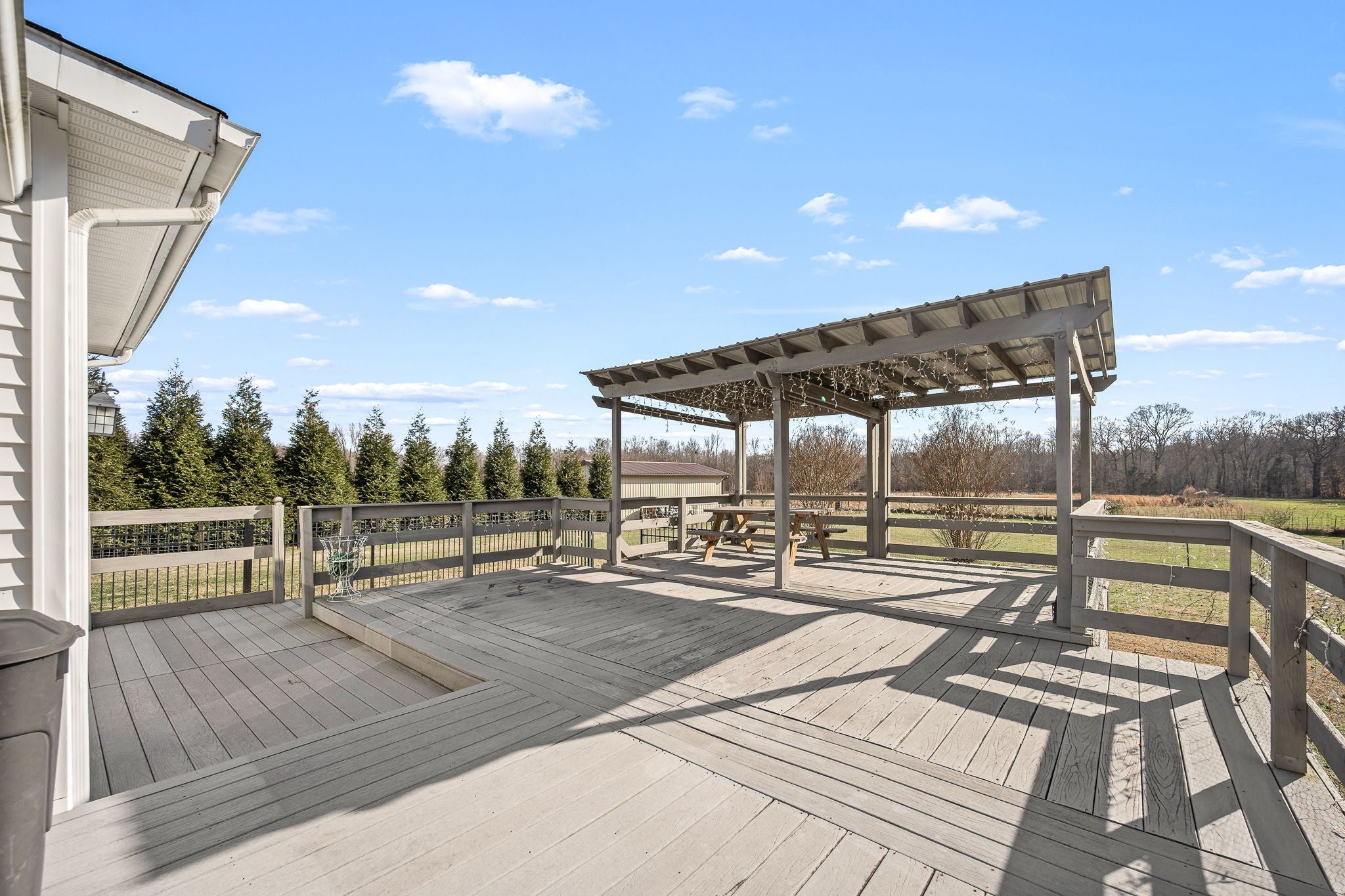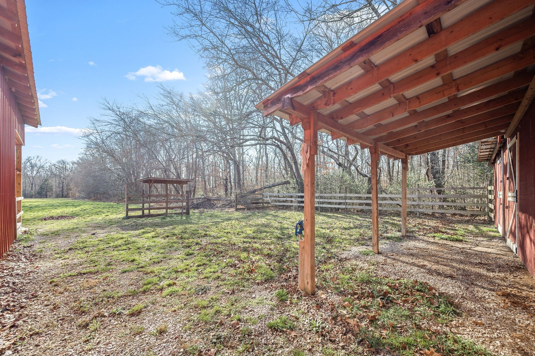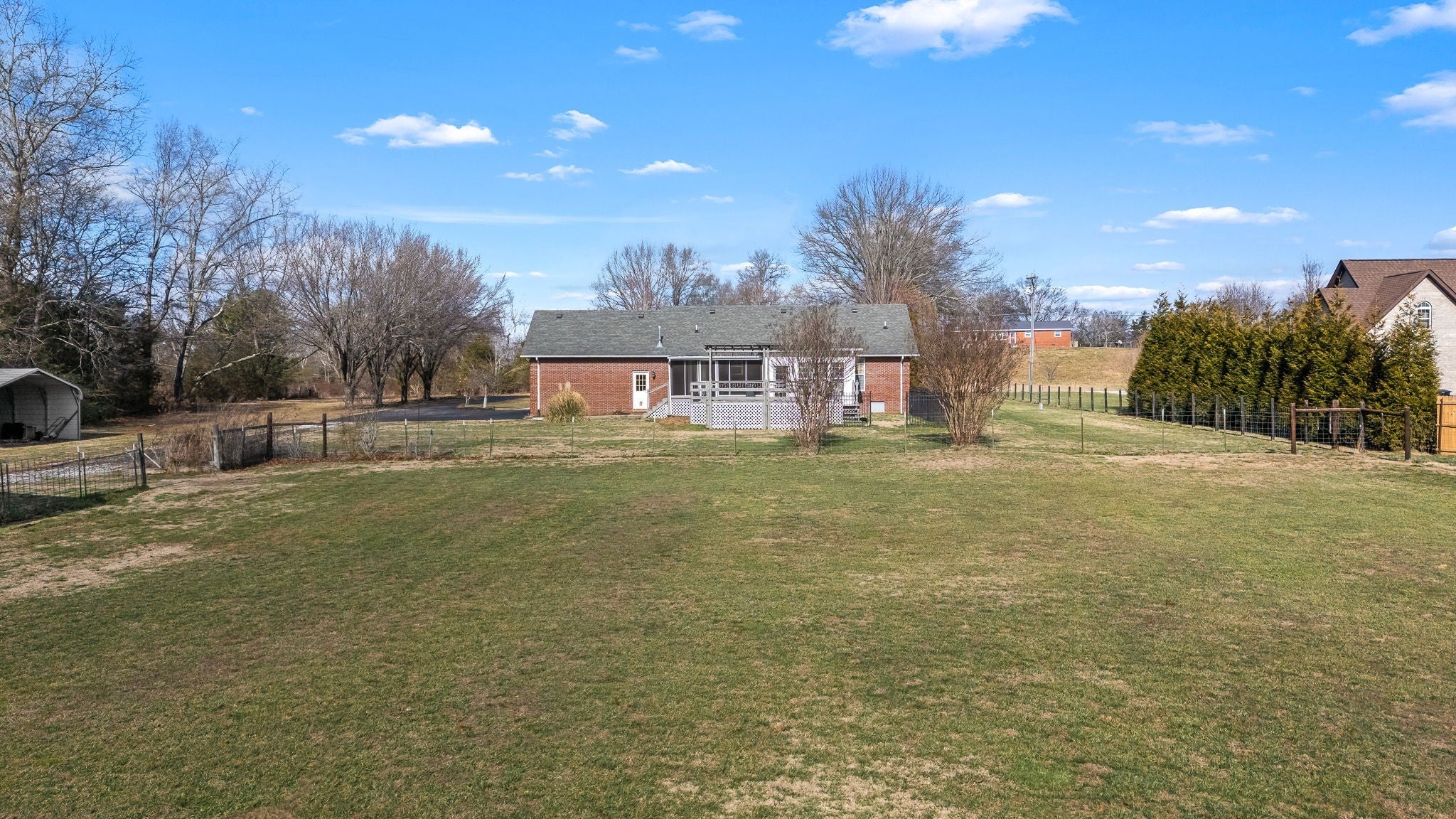 Spanning approximately 15.74 acres registered in the Greenbelt, this exceptional property offers the ideal setup for a hobby farm or peaceful country retreat. The land features two fenced pastures, a pond, a barn with four stalls, a detached metal carport, and a fenced dog run. A 60x20 workshop with an office area and covered back porch provides excellent space for projects, storage, or small business use. Outdoor living and entertaining are a dream with a screened-in porch and a huge low-maintenance deck complete with a gazebo and party lights—perfect for hosting gatherings or enjoying quiet evenings surrounded by nature. The move-in ready 3-bedroom, 2-bath home offers a well-designed split floorplan with spacious living and dining rooms and a beautiful Florida room that fills the home with natural light. The kitchen features granite countertops, appliances, and a pantry closet. Additional highlights include a gas log fireplace, an attic fan and a 2-car garage with permanent stairs leading to generous overhead attic storage. This property seamlessly blends comfortable living with exceptional outdoor amenities and endless possibilities.