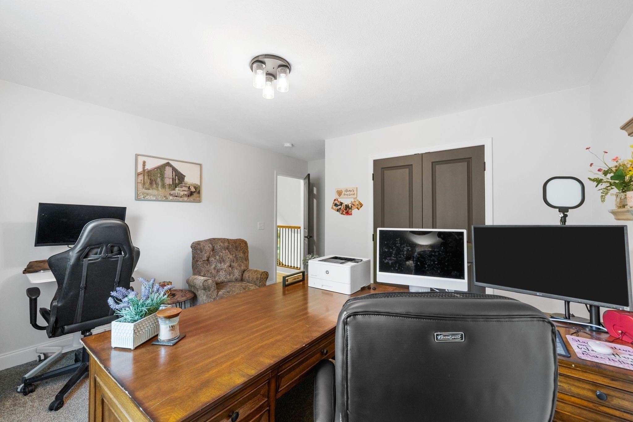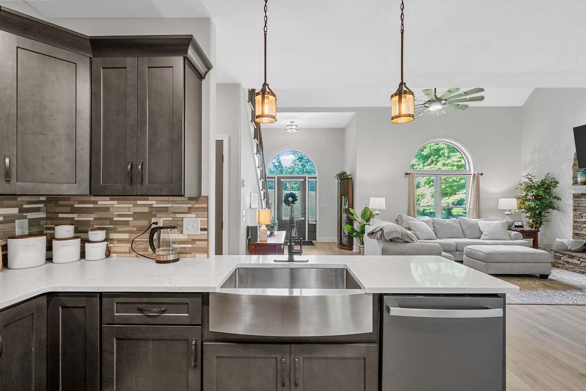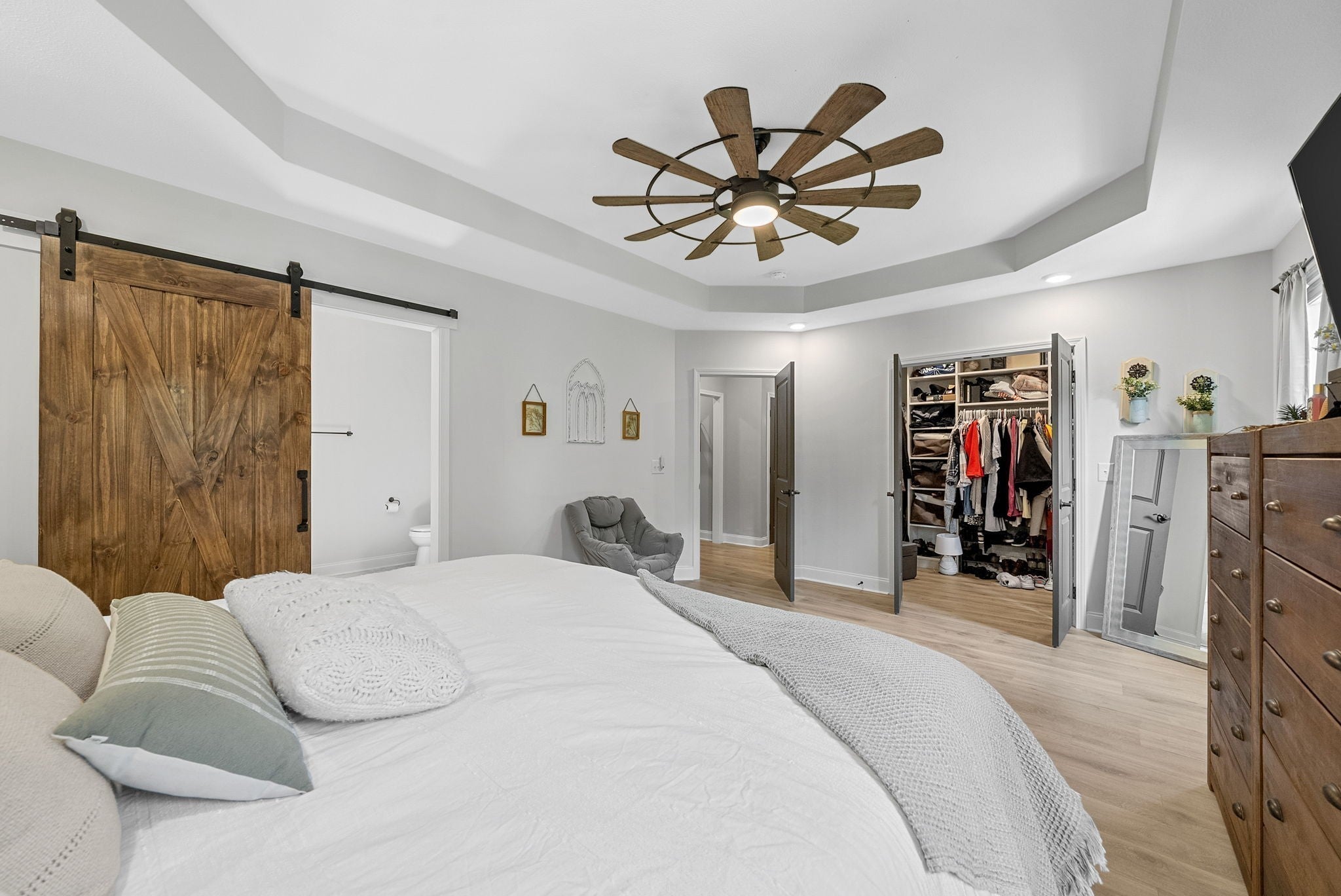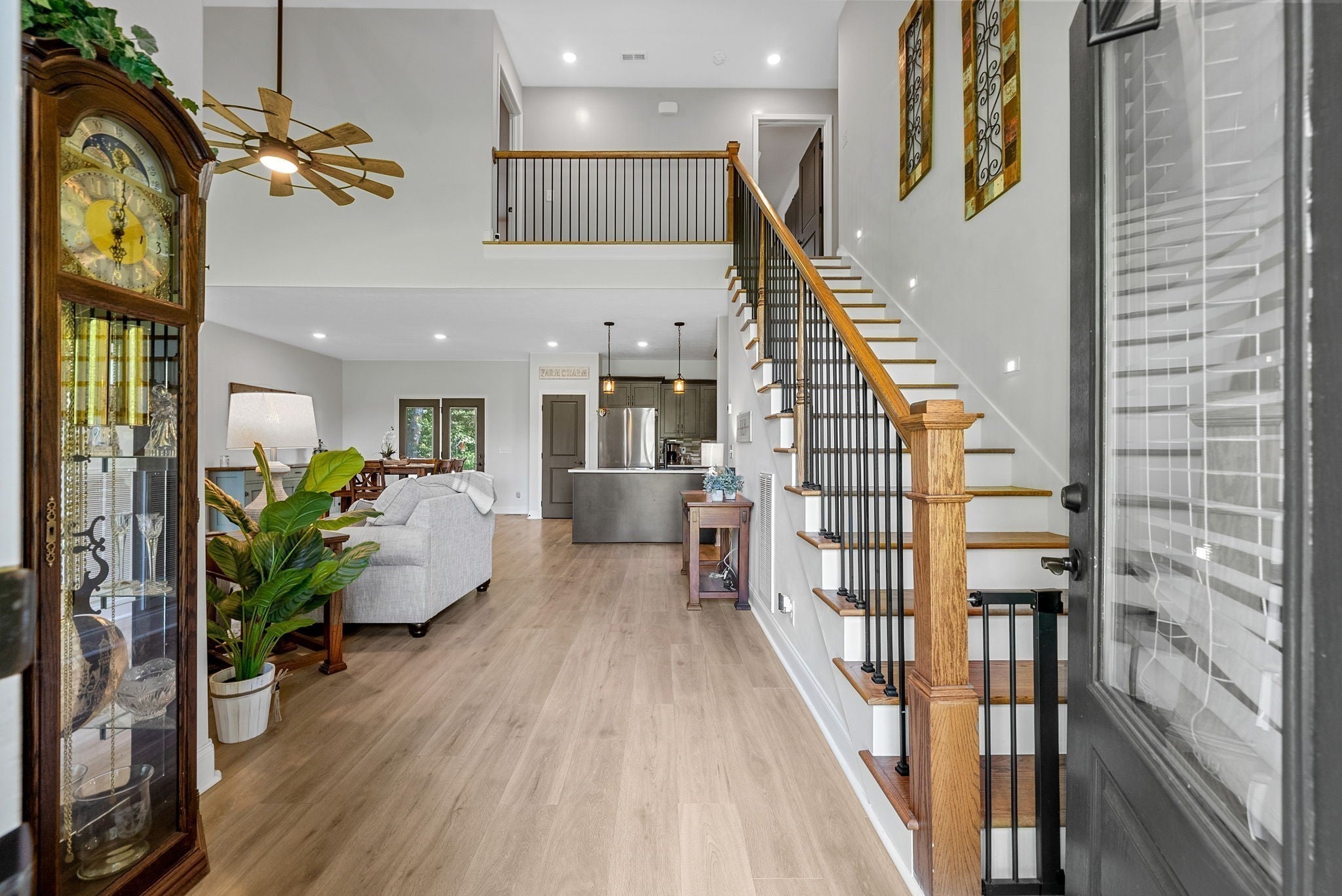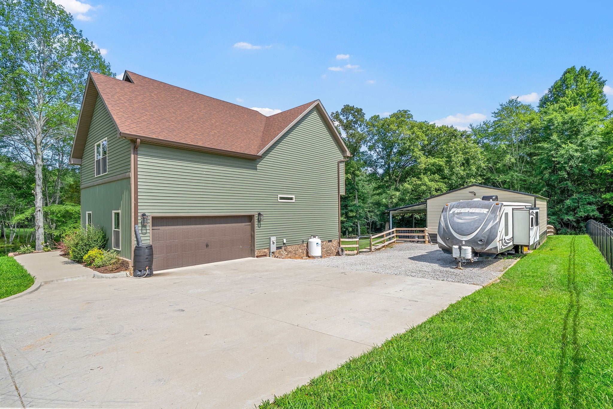 Country living at its finest! Only 20-25 mins from Downtown Clarksville! NO HOA! NO CITY TAXES! Motivated sellers! *SELLER TO PROVIDE $30,000 IN CONCESSIONS!* + $6,947 LENDER CREDIT! This luxury estate boasts 2.74 acres, a detached garage, covered patio, chickens + chicken coop, and a gated path leading to your private creek. Inside, the main living area features vaulted ceilings, stone fireplace, handcrafted floors, and stairwell lighting. The eat-in kitchen boasts custom cabinetry, quartz countertops, and a pantry! Downstairs primary suite offers a walk-in closet with an en suite bathroom, double vanities, linen closet, and a custom tiled shower. Upstairs you’ll find 2 oversized bedrooms with large closets PLUS a 2nd primary suite w/ huge walk-in closet and full en suite bathroom. Two additional linen closets upstairs! MASSIVE bonus room for fifth bedroom, office, or movie room. All ceiling fans are on a remote control. Preferred Lender is offering a credit up to $6,947 towards closing costs or permanent rate buydown. Flood insurance not required. The pond has never flooded, there is a runoff in the back to catch any overflow and direct it to creek.
