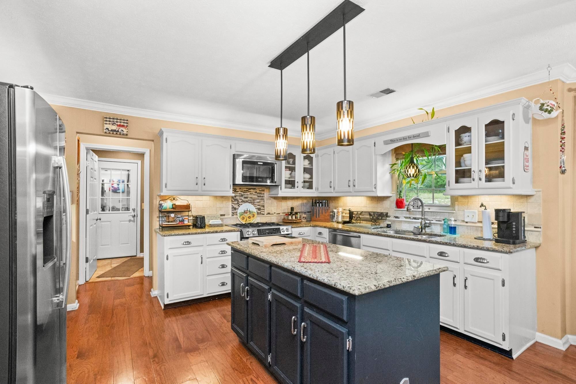 - Electric Oven, Gas Range, Dishwasher, Disposal, Microwave, Refrigerator, Stainless Steel Appliance(s)
