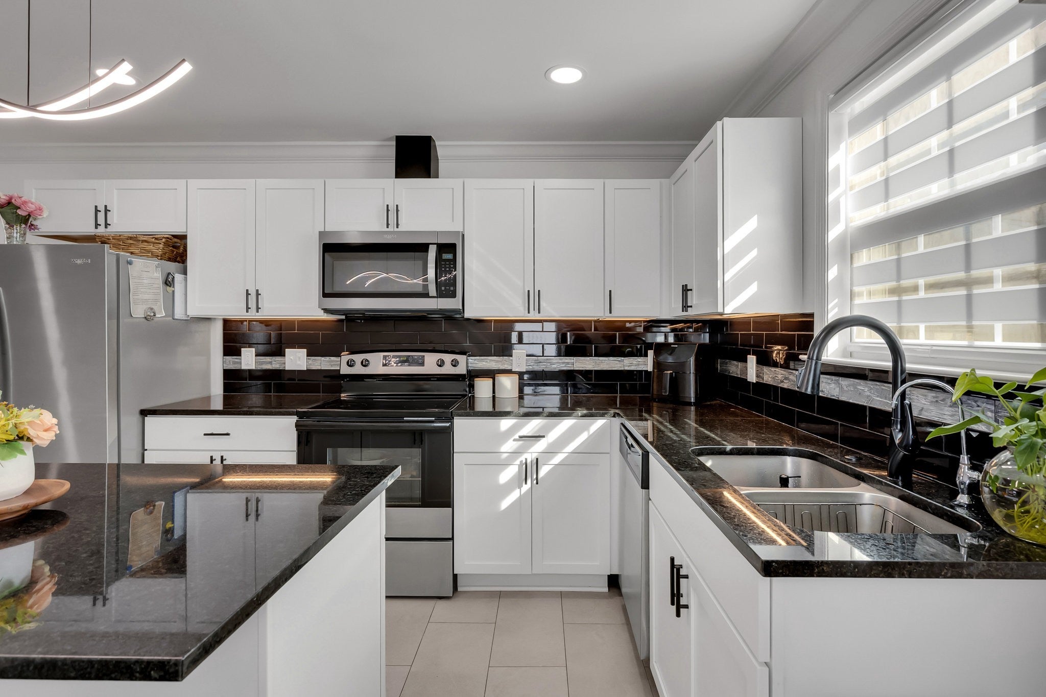 - Electric Oven, Electric Range, Dishwasher, Disposal, Microwave, Refrigerator, Stainless Steel Appliance(s)