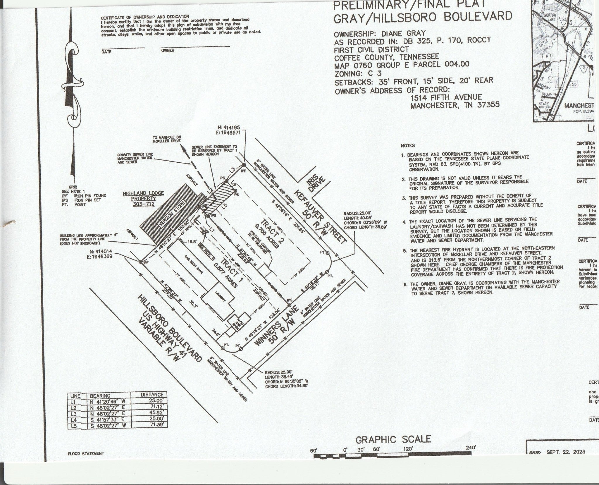 .7 acre surveyed tract at the corner of Winners Lane and Kefauver Street in view of busy Hwy 41. All city services available. Totally cleared lot ready for commercial construction. Rare possibilities Frontage on two streets. Located behind a current business and surveyed off total acreage.