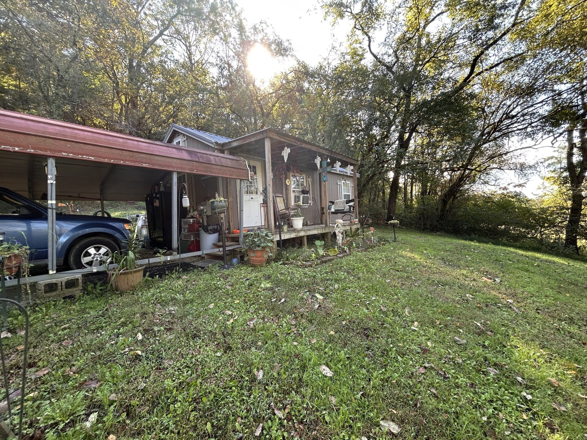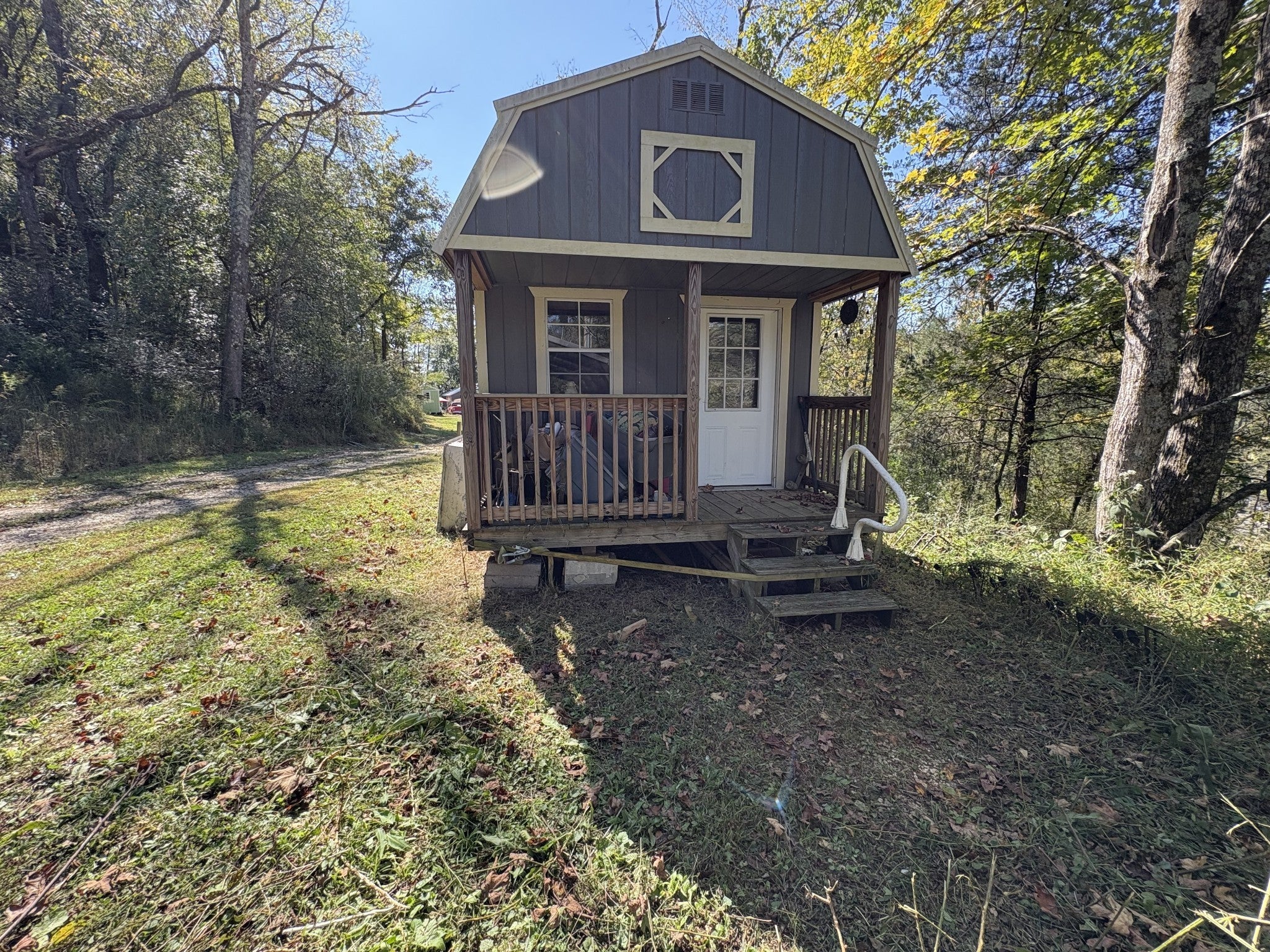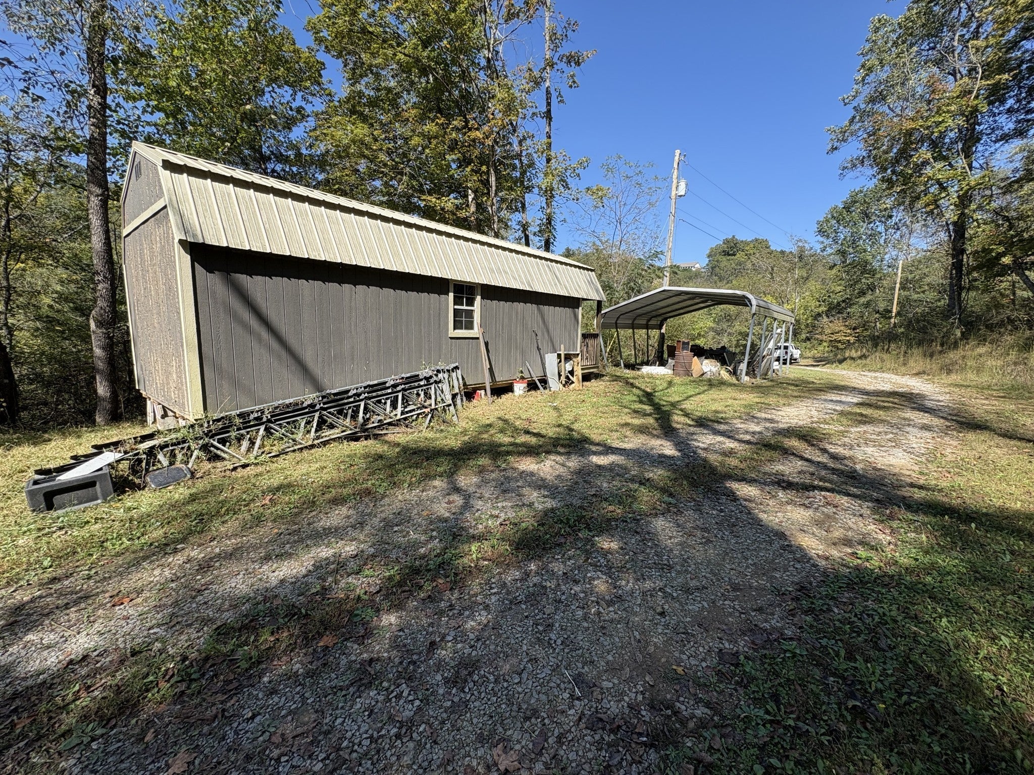 Opportunity awaits on 9 rolling, unrestricted acres featuring a finished 14’ x 28’ tiny home on a permanent foundation with septic, water, and electric. The property also includes an 8’ x 12’ utility building and a second unfinished 11’ x 32’ tiny home with a 3’ covered front porch, ready for completion and utility connection. Ideal for a weekend retreat, future residence, or investment opportunity. Note: The finished tiny home is a converted utility structure, not a traditional site-built residence. Tenant occupied—do not disturb renter.