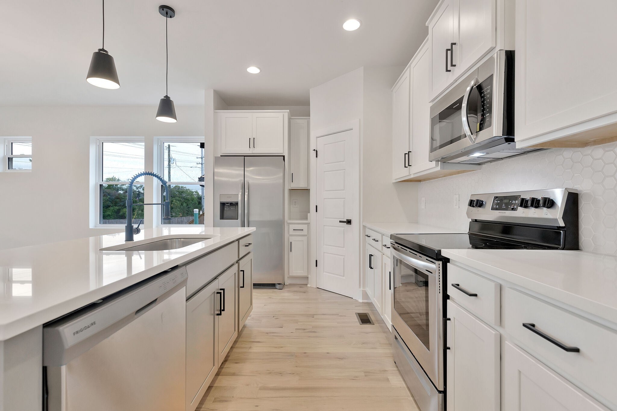 - Built-In Electric Oven, Electric Range, Dishwasher, Disposal, Microwave, Refrigerator, Stainless Steel Appliance(s)