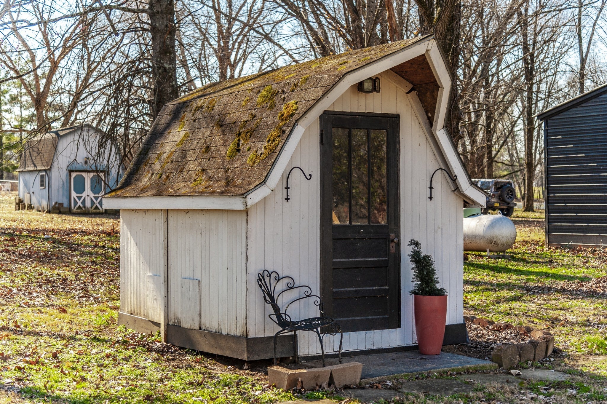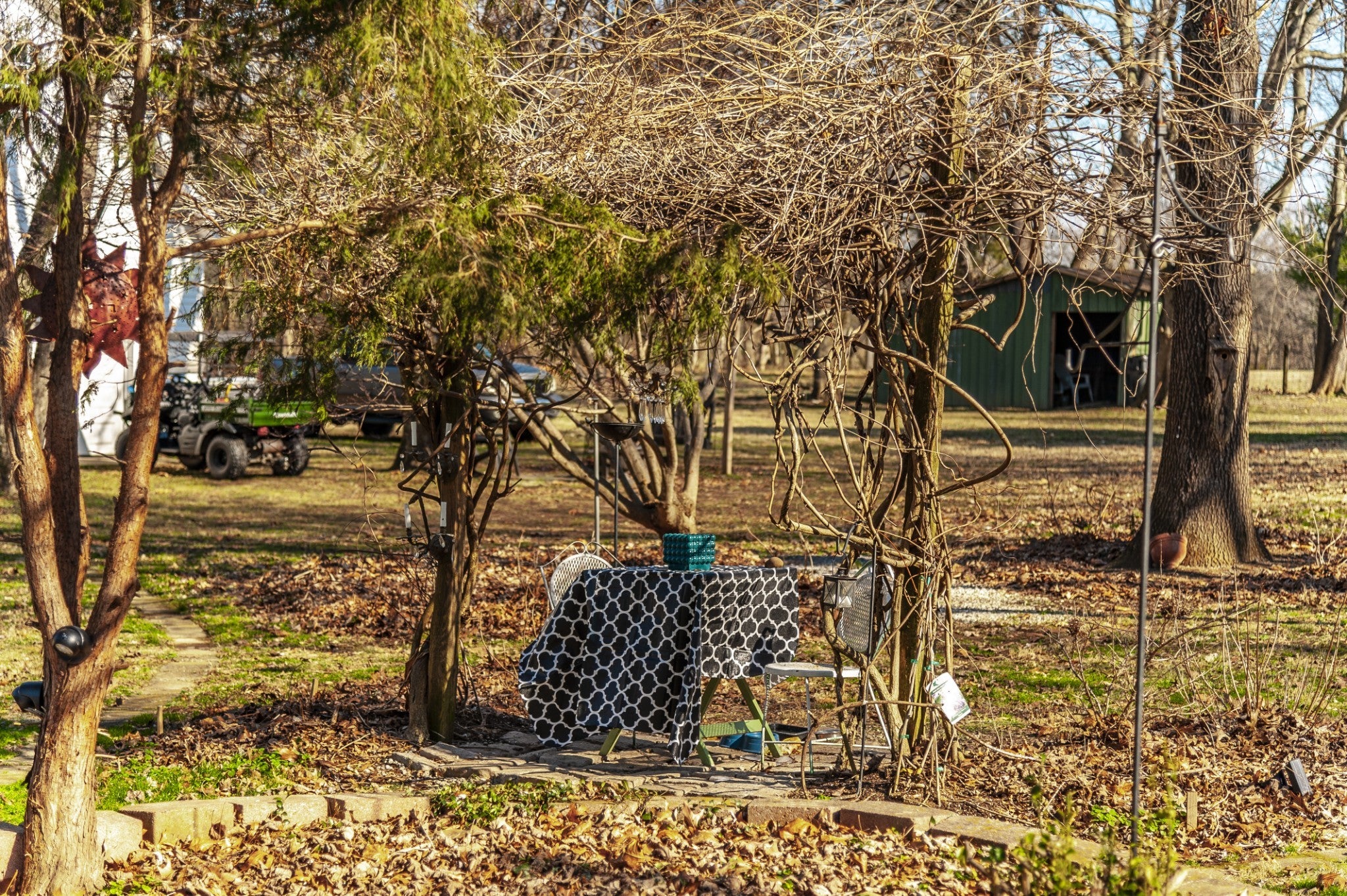- Garage Door Opener, Detached, Circular Driveway, Gravel
