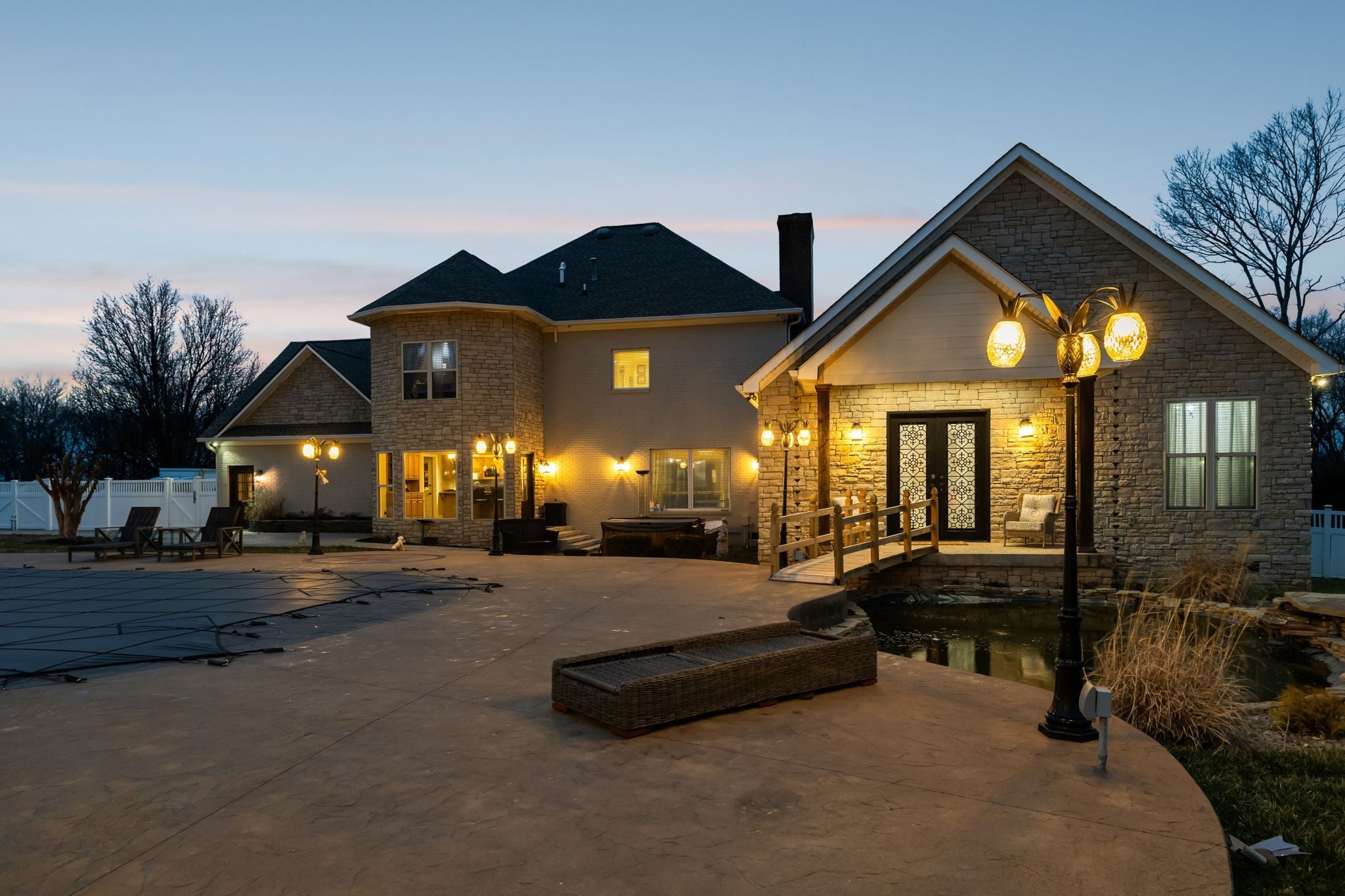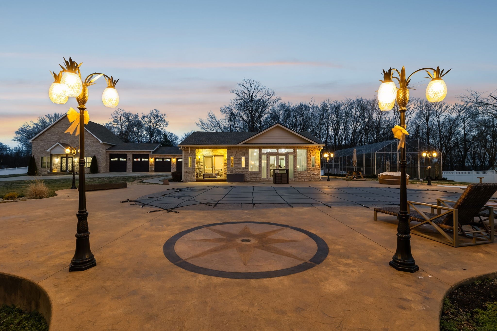 **In total, over 8,300 heated square ft.** This 2.02 acre estate features a 4060 sq ft home, custom heated pool, 1120 sq ft pool house with a full commercial kitchen + living space, 3,200 sq ft heated 4 bay garage with theater on the mezzanine level, outdoor Gazebo perfect for hosting and many other features. Huge master suite with his/hers bathrooms and CUSTOM his/hers closets. Koi pond. Hot tub. Don't miss your opportunity to see a one-of-a-kind property. Too many upgrades to list. The pictures don't do it justice!