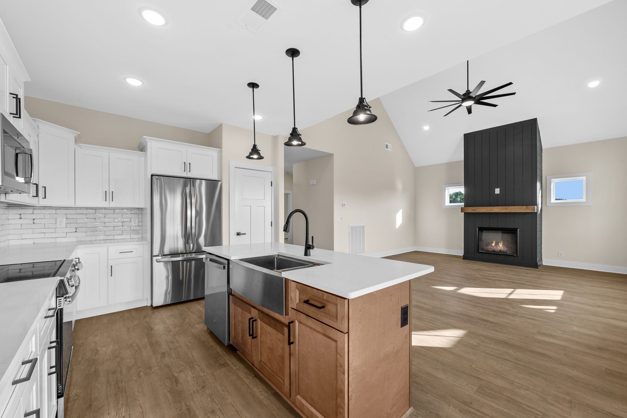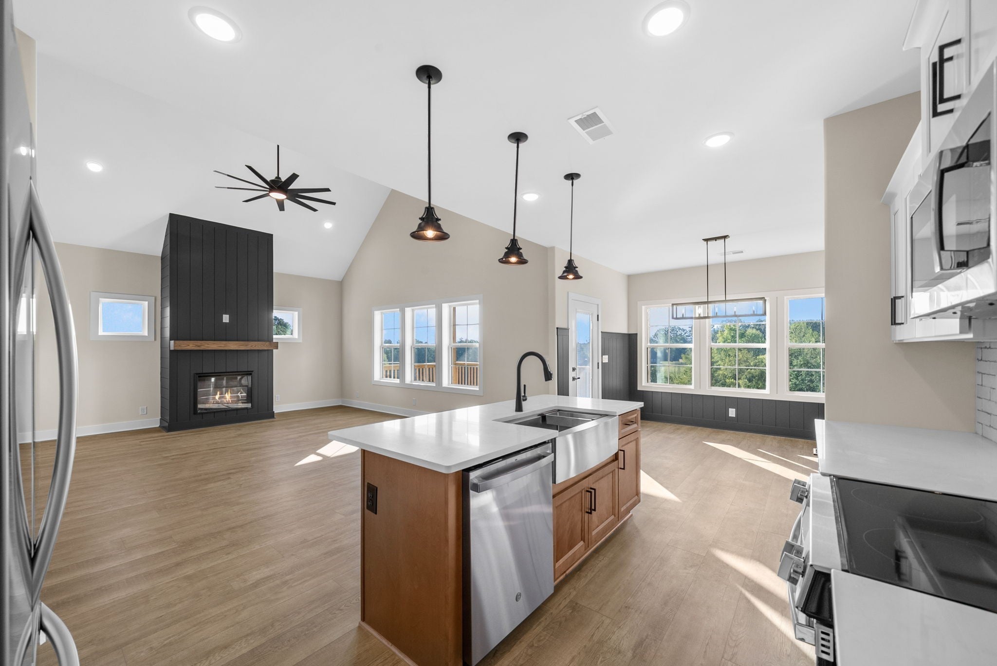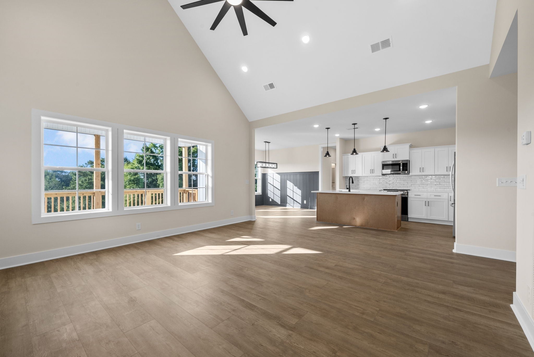 Exquisite FARMHOUSE design with custom touches! Talk about attention to DETAIL! Incredible covered porch greets you. Get away from the hustle and bustle and embrace this peace and serenity! Wide open concept living gives you amazing views from your main living areas! Beautiful LVP flow into your large eat in kitchen w/ Pantry! Tons of natural light flows in! Primary bedroom is to die for! The perfect split bedroom plan with a bonus!