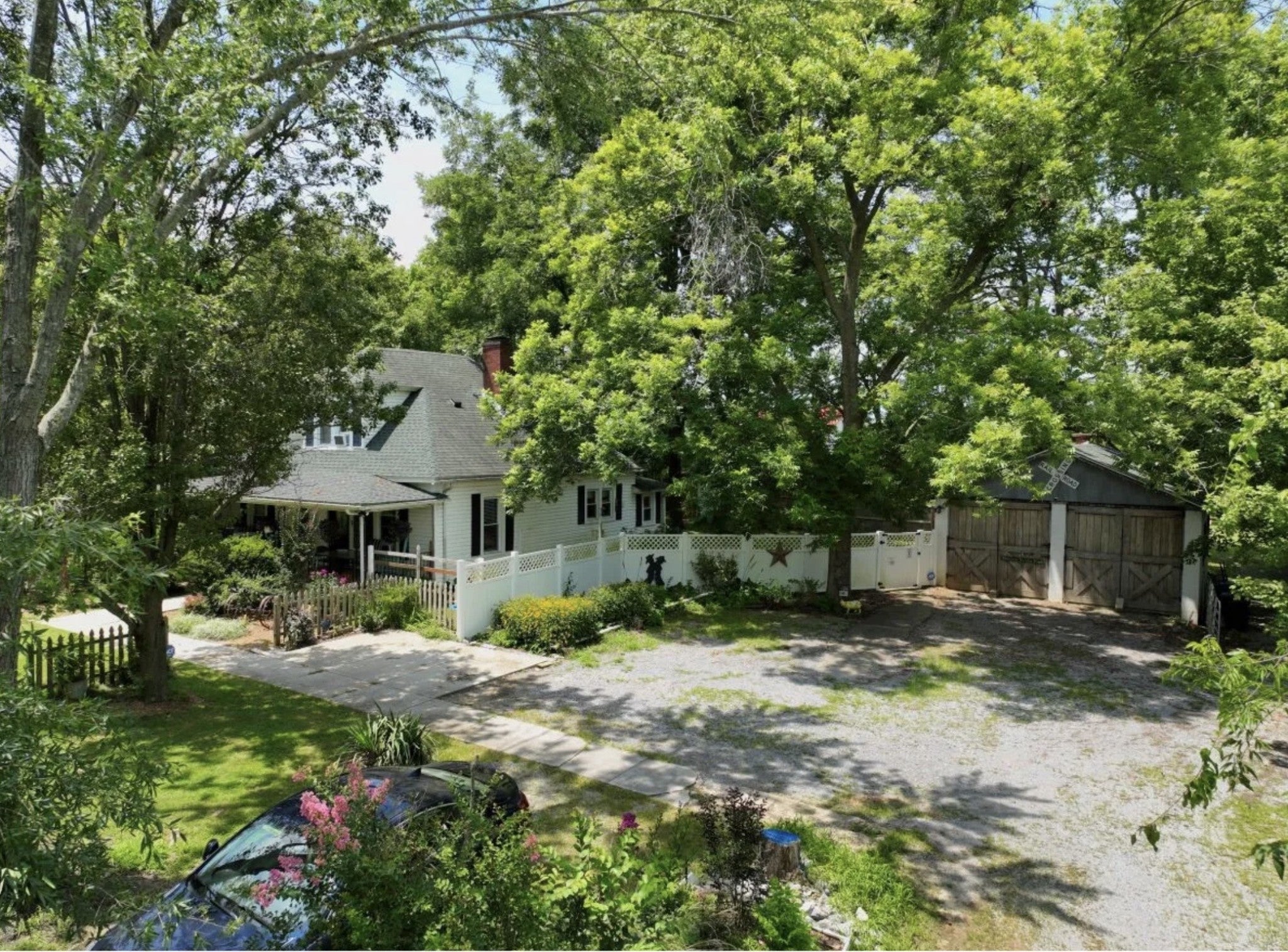 Farmhouse Charm & barns with 7.05 acres of Privacy conveniently located of 68/80 and just minutes from Lake Barkley! Fall in love with this 3-bedroom, 1-bath home featuring a beautifully remodeled kitchen, hardwood floors, and a large front porch perfect for morning coffee or evening relaxation. Enjoy privacy, mature trees, a fenced yard, storage shed, a 24x24 detached garage & 2 beautiful huge barns. Move-in ready with character, charm, and all the space you need! Plenty of land to build your dream home if wanted and have an income property, guest house or whatever you can dream up!! Call today for your private showing. LAND, HOUSE, BARNS, SHOP, CONVIENCE, THIS IS A RARE GEM!