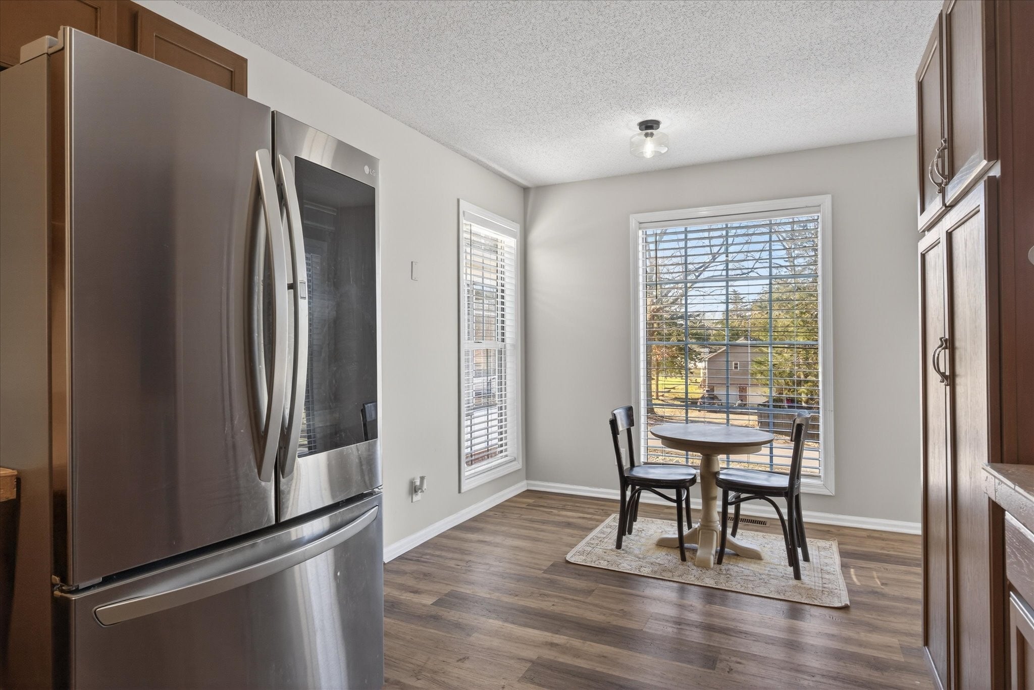 This home is such a stunner! Sitting on over half an acre with NO CITY TAXES yet in an established subdivision. This ranch home sits on a large corner lot with beautiful mature trees and a fenced in backyard. The kitchen offers all new stainless steel appliances and a bay window perfect for a cozy eat-in dining room table. The living room offers a brick fireplace and tons of natural lighting which opens to the formal dining room. Primary bedroom has TONS of room, big enough for a reading corner. Both guest rooms are spacious with full size closets. Separate laundry room and 2 car garage! ***USDA eligible***