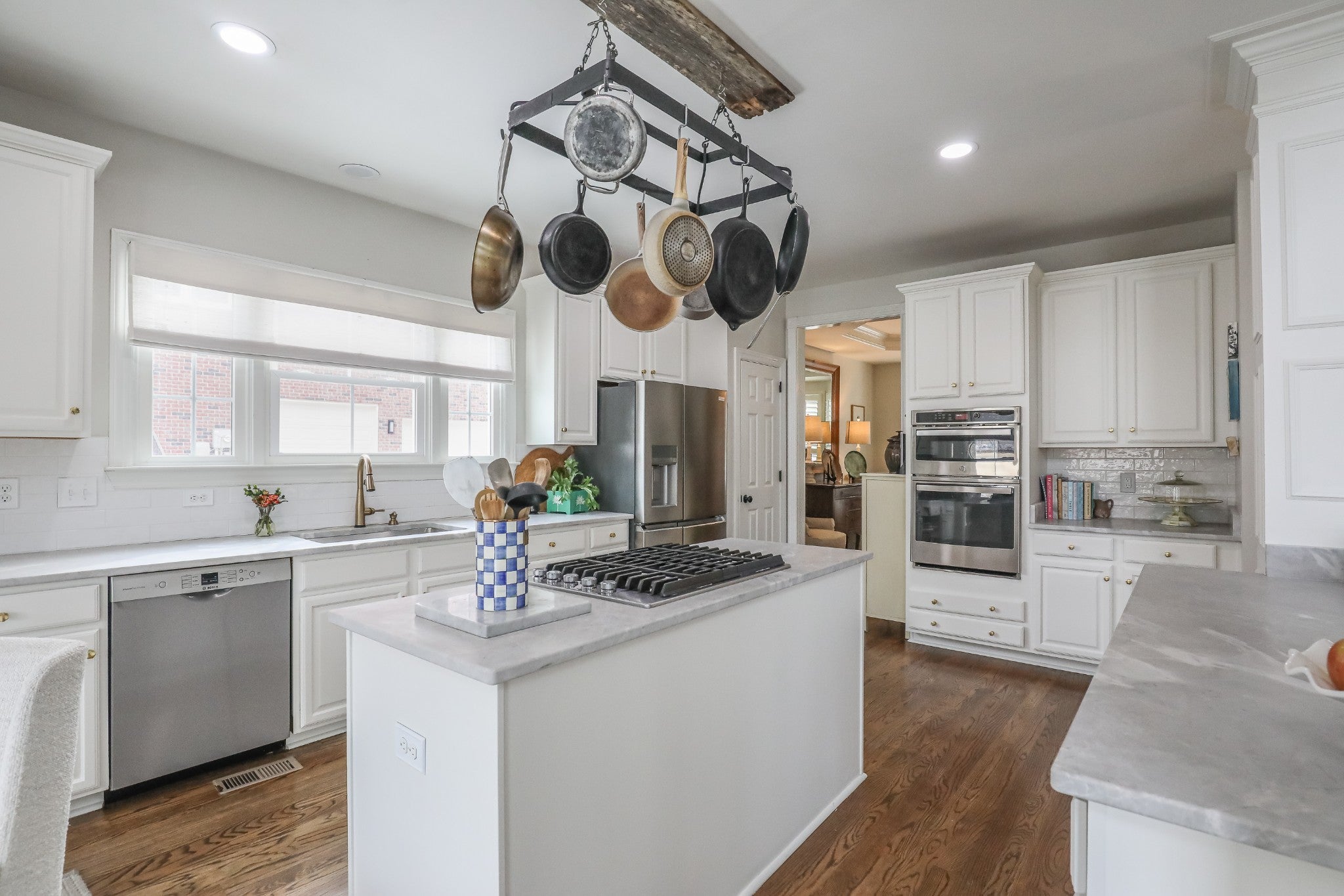 - Built-In Electric Oven, Cooktop, Dishwasher, Disposal, Freezer, Microwave, Refrigerator, Stainless Steel Appliance(s)