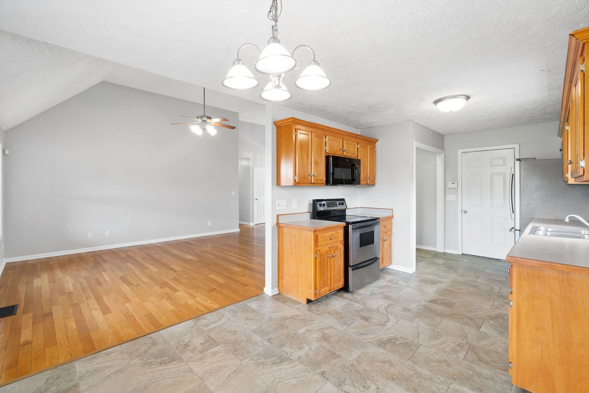 - Electric Oven, Electric Range, Dishwasher, Microwave, Refrigerator, Stainless Steel Appliance(s)