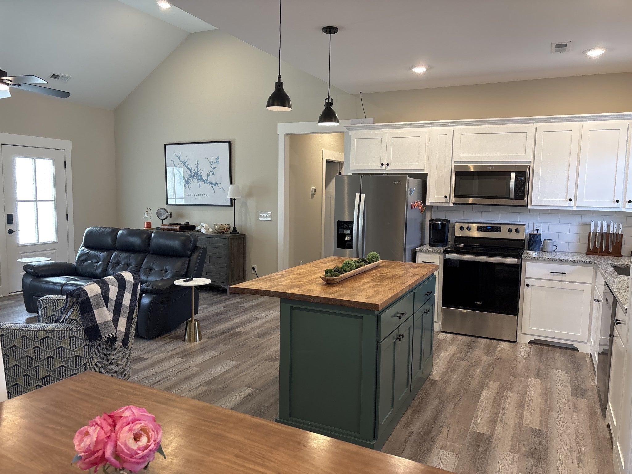 Gorgeous Home near Tims Ford Lake! Just 8 Minutes to Tim's Ford Marina, and just 5 Minutes to Blue Grill Grill! Selling Fully Furnished! 3 Bedrooms, 2 Full Baths on Large .61 Acre Lot with Fenced Back Yard; 720 Square Feet of Heated/Cooled Garage Space; Trex Decking on Back of Home; Seller will pay $7500 towards buy down to $4.99% Interest Rate; Beautiful Kitchen w/Granite Counters, Tiled Backsplash, and Large Island; Large Open Great Rm w/Cathedral Ceiling & Electric Fireplace; Primary Bedroom with Vaulted Ceiling and Huge Walk-in Closet; Large Primary Bath w/Walk-in Tiled Shower & Double Vanities; Lots of Parking Space on Concrete Driveway; This Home still feels like NEW, Call Today to See!
