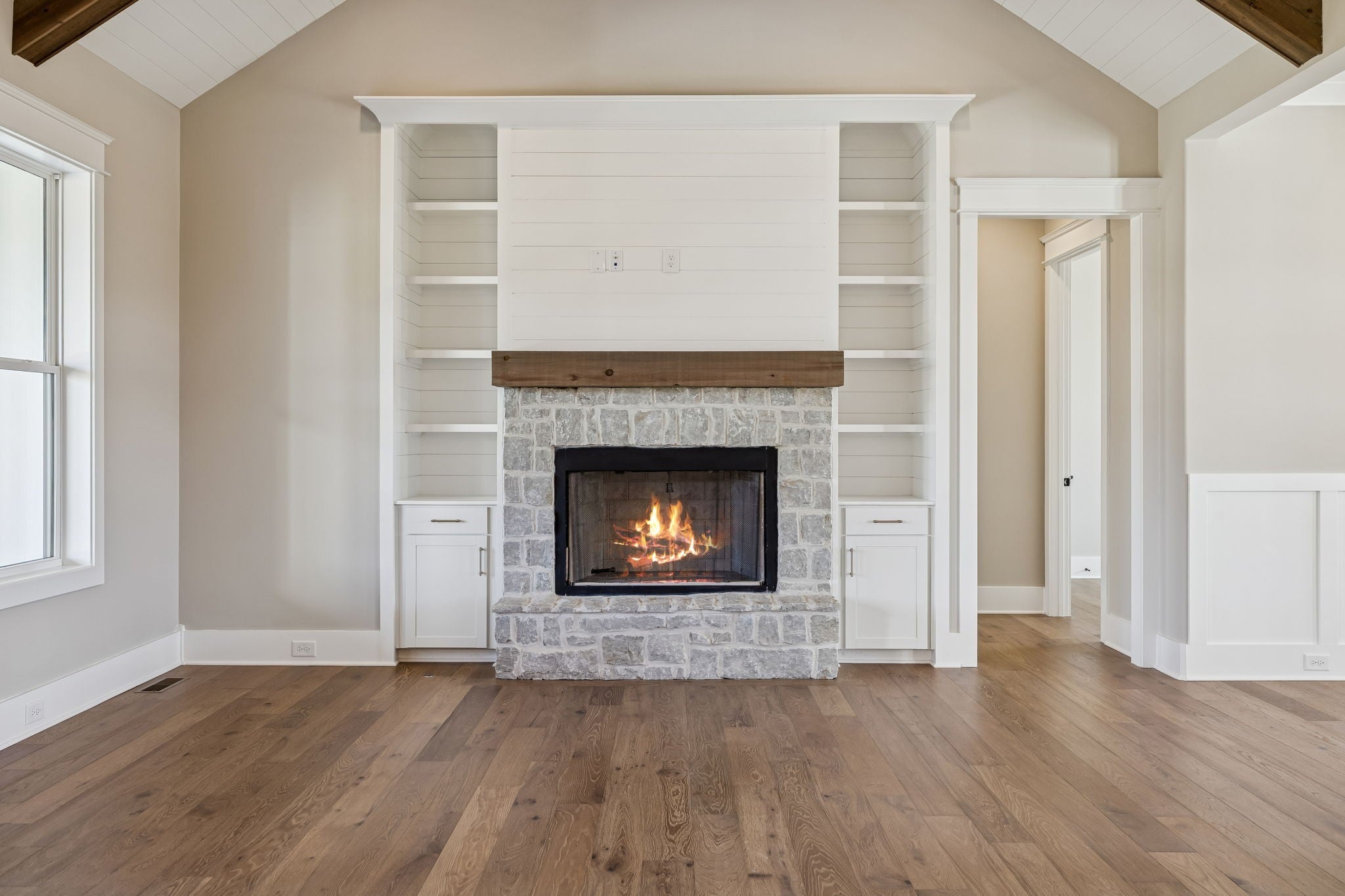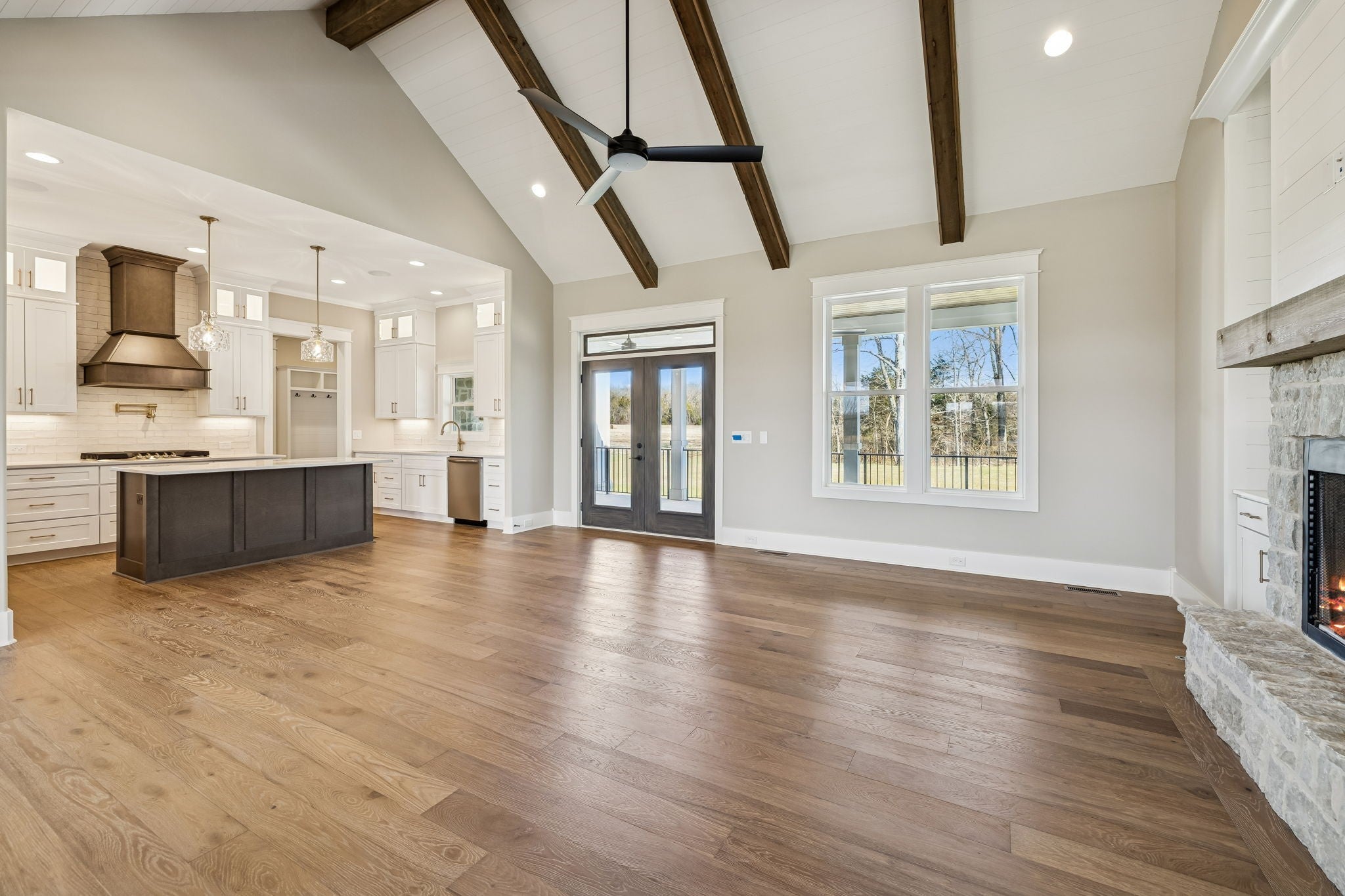 BUILDER INCENTIVE: Builder to offer 3/2/1 buydown when using the industry partner at FirstBank. Welcome to the newest Wayne Dunn and Associates home in Cedar Brooke. This home will carry you back to the days of custom, hands on craftsmanship featuring many beautiful details and features not found in today’s cookie cutter market. Built by the oldest, still active building company in Williamson County since 1953, this is a home you would be proud to own for a lifetime. This rare to find 1.5 story home offers main level living with high end finishes, custom craftsmanship, and thoughtful details throughout. With the primary suite and 2 bedrooms down, there's a 4th bedroom, full bath and recreation room upstairs. This open concept design includes cedar beams, decorative ceilings, extensive trim, built ins, and rich hardwood flooring. Soaring 10 foot ceilings downstairs and 9 foot upstairs enhance the spacious feel, while ADA compliant door openings in the primary living spaces, a max 3 step entry, low curb master shower, and steel security railings on porches ensure accessibility. The kitchen includes quartz countertops, 10 foot cabinets to the ceiling, lighted glass uppers, pot filler, gas cooktop with external vent wood hood, convection oven, and built in microwave. The great room features a real stone gas fireplace, nickel lap wood ceiling, and cedar beams. The massive private covered porch includes a real stone woodburning fireplace perfect for relaxing outdoors. A drop zone with butcher block seating, custom closets with built in drawers, and quartz topped vanities add to the home’s refined functionality. Extras include: Delta Champagne Bronze fixtures in the kitchen and primary bath, hardwood stairs, custom shelving, 6 inch gutters, and Arctic White Hardie siding with 15 year colorfast warranty. Sitting on a nearly half acre lot bordered by mature trees, this home provides rare privacy, room to stretch out, and natural beauty in a truly unique community.