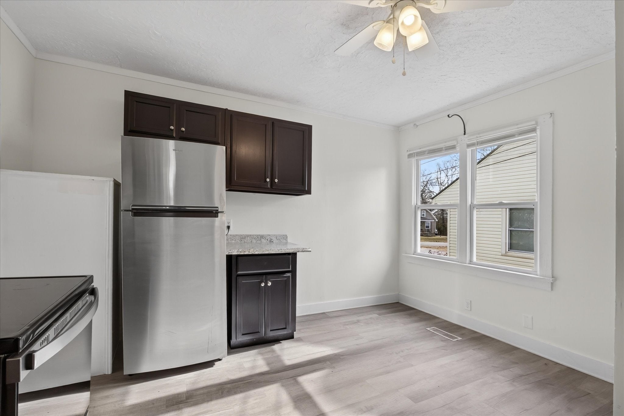 - Electric Oven, Refrigerator, Stainless Steel Appliance(s)