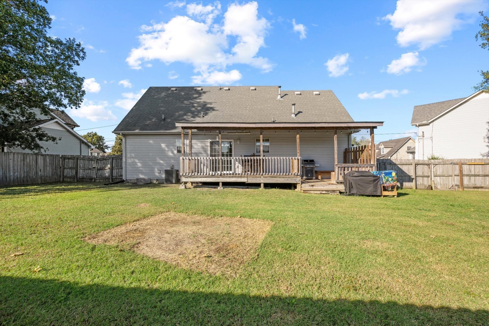 No HOA!!! Nestled in a peaceful cul-de-sac, this home offers a fenced backyard, a charming covered front porch and a covered back deck overlooking the fenced backyard, providing privacy, and inviting spaces to relax or entertain in any season. It is just minutes from grocery shopping options including Kroger, Publix, and Aldi's, as well as Rotary Soccer Park, local playgrounds, and the Nashville I-24 Campground. A convenient location close to parks, shopping, and everyday necessities.