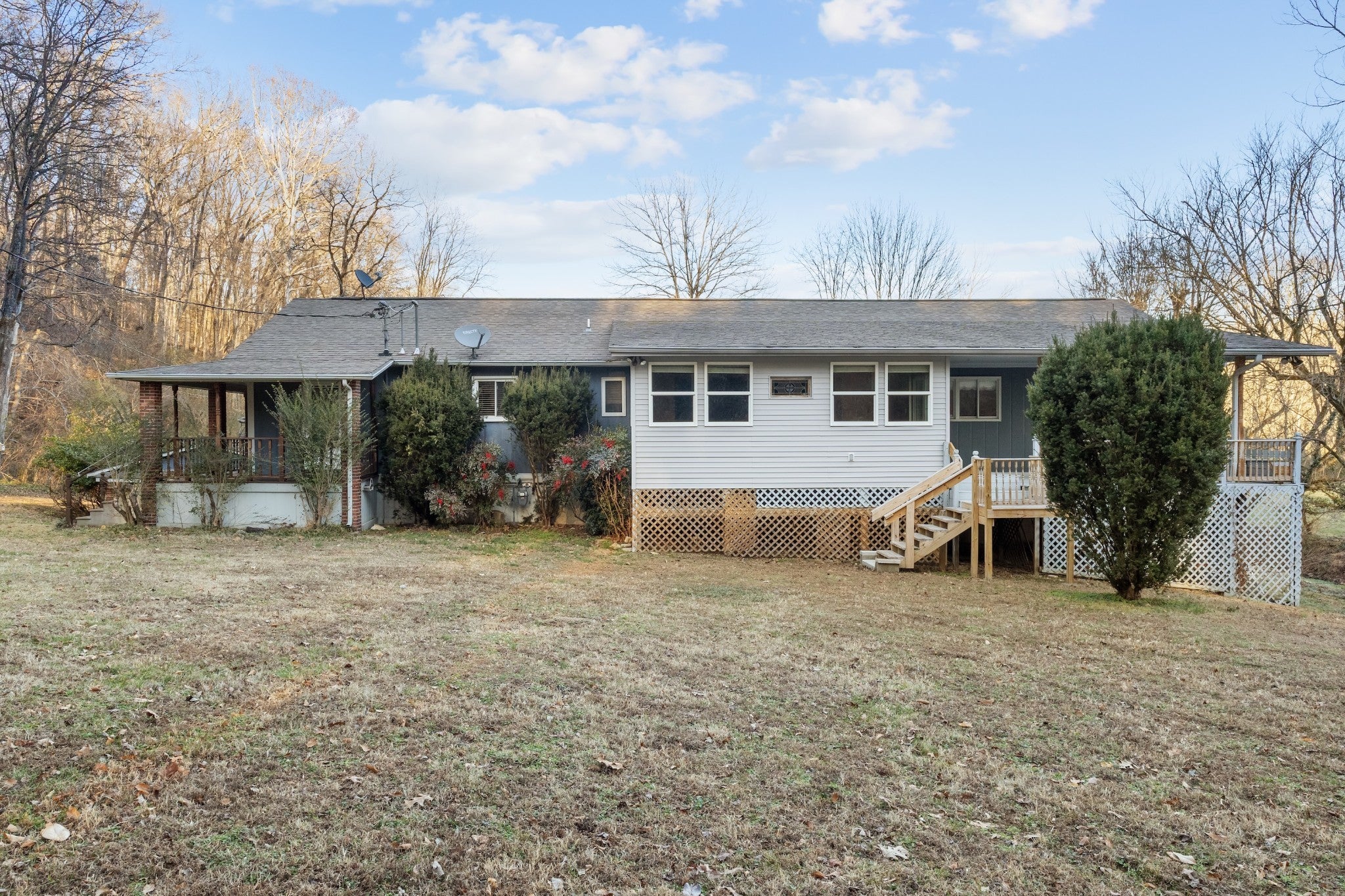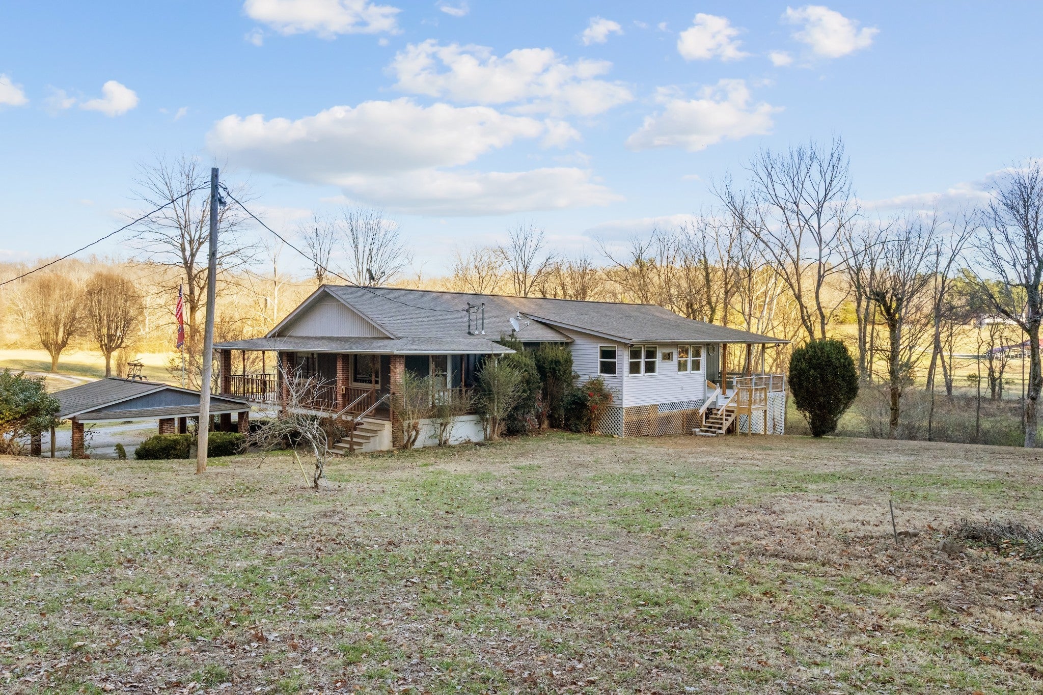Rare opportunity to acquire 73.18 acres with river frontage along the East Piney River, a natural spring feeding into the river, a spring house, and a pond located at the rear of the property in southwest Dickson County. Zoned A1 – Agricultural/Estate Residential, the property offers highly usable level to gently rolling terrain suitable for residential, recreational, and long-term land investment uses. The land has been actively maintained with bush-hogged trails, providing access throughout, and the rear portion opens beyond the woods to a level area at the top, ideal for outdoor recreation, hunting, or future improvements. The property supports strong wildlife activity, with frequent sightings of large groups of wild turkey and regular deer presence, making it especially appealing to hunters and outdoors enthusiasts. A pear tree–lined driveway leads to an existing ranch-style residence, built in 1979, offering approximately 2,181 square feet above grade with an additional 1,004 square feet in the basement, totaling 4 bedrooms and 3.5 bathrooms. The home allows immediate use while enjoying the land, with flexibility for future updates. The basement includes an attached garage and additional storage, supporting recreational gear and equipment. Utilities include public water, septic, and natural gas. The property is approximately 5 minutes from grocery stores, restaurants, and everyday amenities, about 45 minutes to downtown Nashville, and a short drive from Montgomery Bell State Park, one of Middle Tennessee’s premier outdoor destinations offering over 3,800 acres with lakes, hiking and biking trails, horseback riding, camping, and fishing. This location delivers a rare balance of privacy, usable land, outdoor recreation, and convenient access while maintaining a true rural setting.