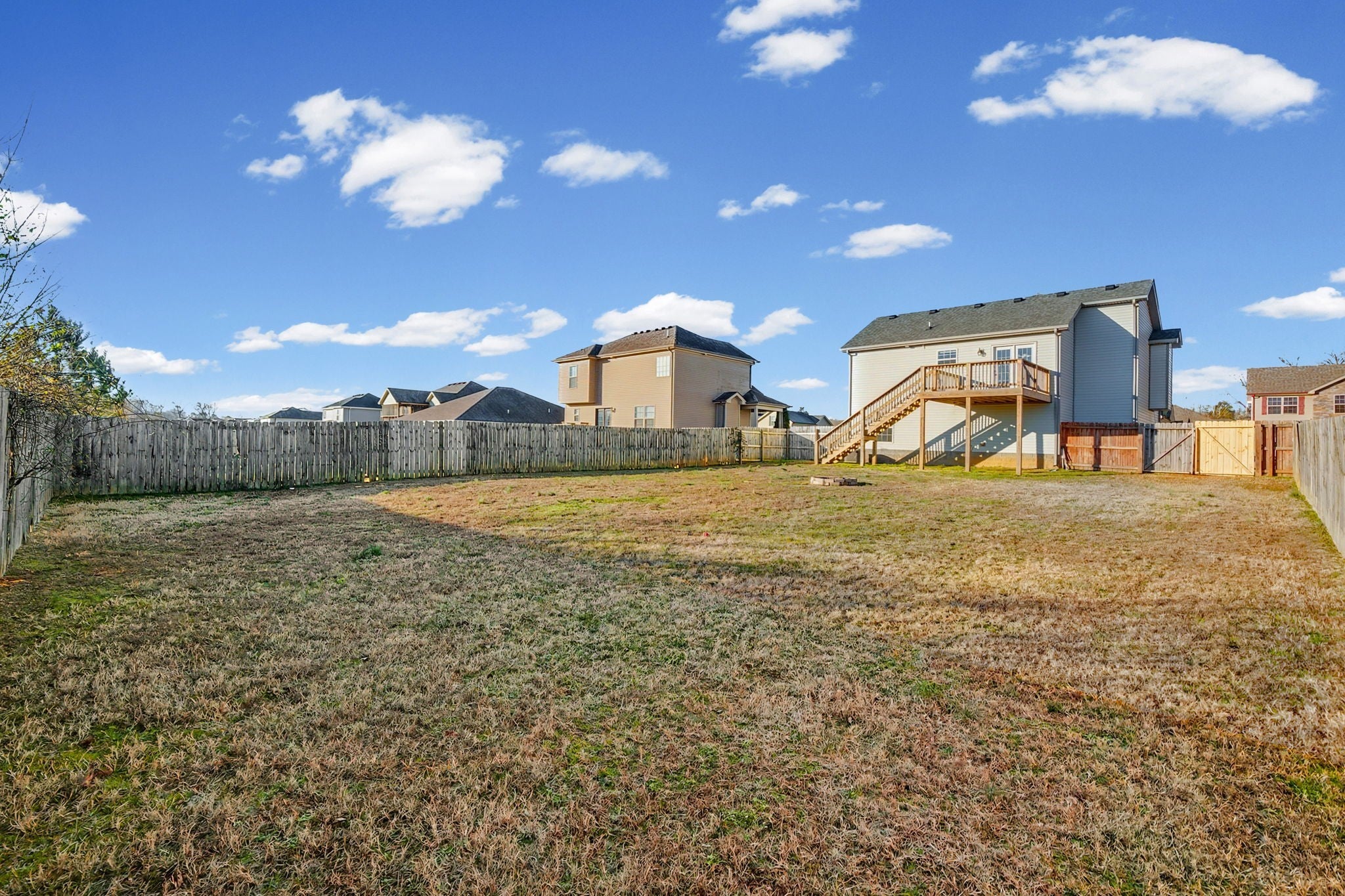 Beautiful three-bedroom, two-bath split-level home offering space, style, and functionality. The main level features a spacious living room, an eat-in kitchen with stainless steel appliances, and a private primary suite. Step out from the kitchen onto the deck, perfect for entertaining or relaxing while overlooking the large, fenced backyard. The primary bedroom boasts a tray ceiling, walk-in closet, and a generous ensuite bath. The lower level includes two additional bedrooms, a full bathroom, and a convenient laundry room. A two-car garage completes the home, complete with a built-in workbench for projects or extra storage.