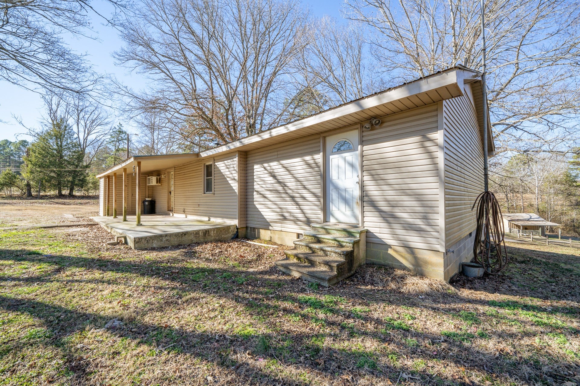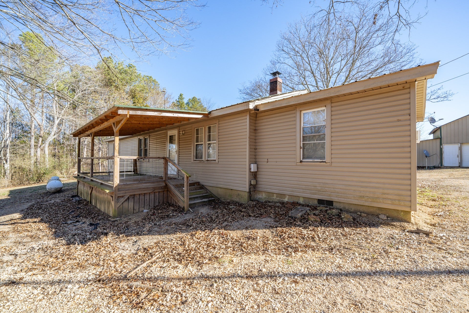 Welcome to this charming country property offering the perfect blend of comfort, functionality, and outdoor lifestyle. Located within the desirable North Alabama Trail Riders Association (NATRA) offering trail riding and recreation for the whole family. This home sits on approximately one acre of unrestricted land, providing flexibility and space to enjoy rural living at its best. The home features three bedrooms and two full bathrooms, highlighted by a spacious master suite with a full bathroom, large closet, and an additional versatile area ideal for a mudroom, home office, or hobby space. New flooring in the bedrooms. Enjoy relaxing mornings and evenings on the covered front porch or the rear covered patio, perfect for taking in the peaceful country surroundings. A wired shop offers ample workspace and storage, complete with lean-tos on each side for added functionality. Enjoy not having a water bill as a newer well has been added and estimated to be approximately 5–6 years old. Conveniently located just minutes from the scenic Rainbow Falls and Horse Creek, this property is ideal for those seeking a quiet country lifestyle with access to natural beauty and outdoor recreation. Perfect starter home and not many in this price range. Can also be used as an Air bnb! Some photos have been virtually staged using Ai. Call to schedule your private tour today!
