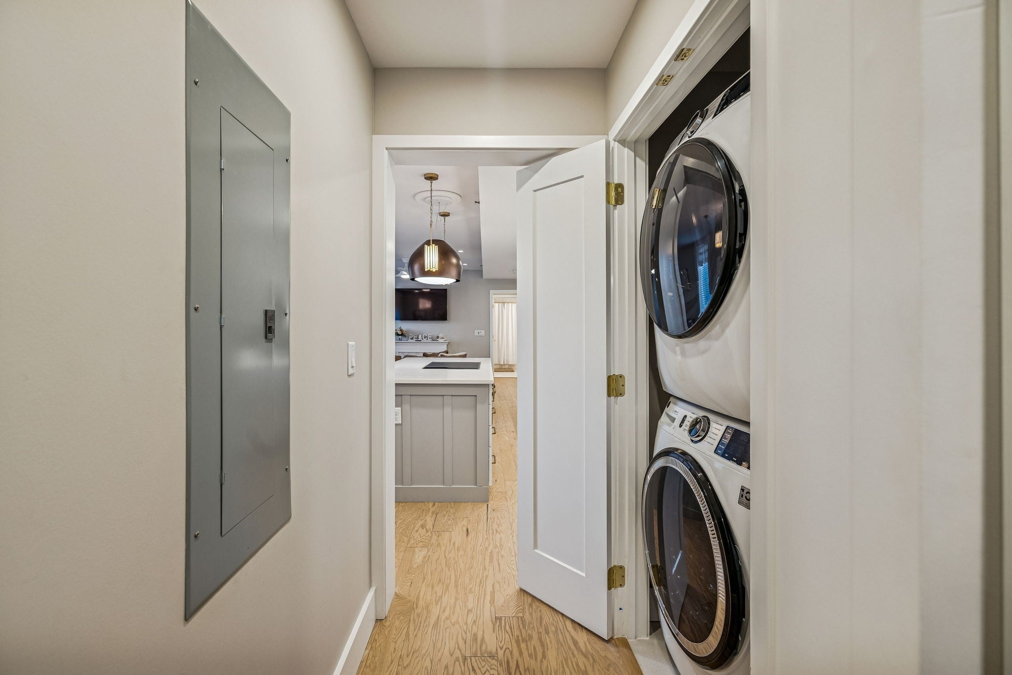 - Built-In Electric Oven, Range, Dishwasher, Disposal, Dryer, Microwave, Refrigerator, Stainless Steel Appliance(s), Washer