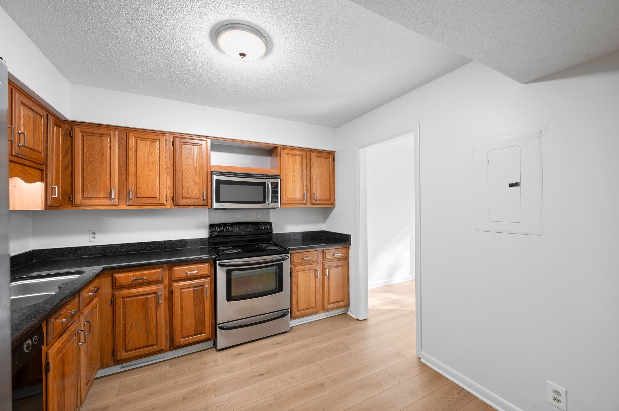 - Electric Oven, Built-In Electric Range, Dishwasher, Disposal, Dryer, Freezer, Microwave, Refrigerator, Stainless Steel Appliance(s), Washer