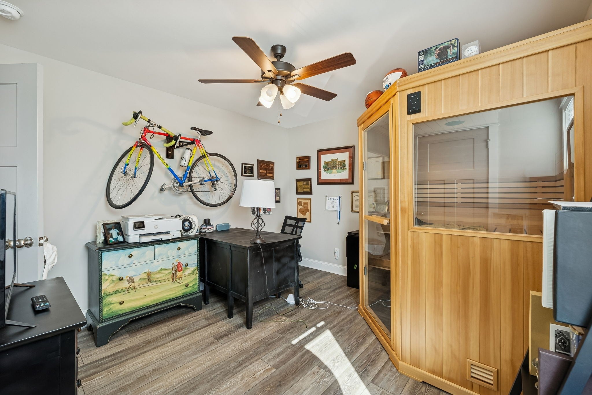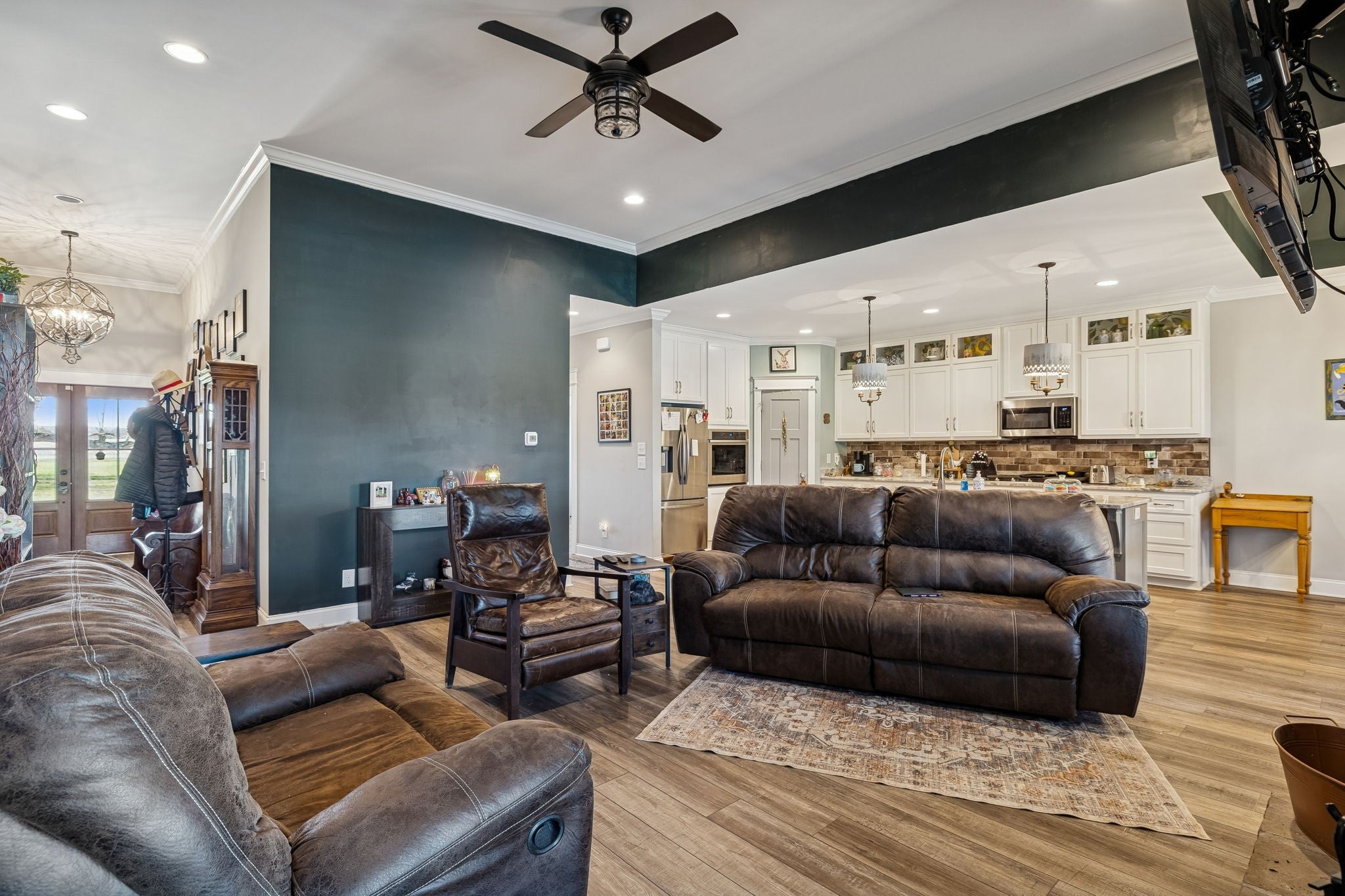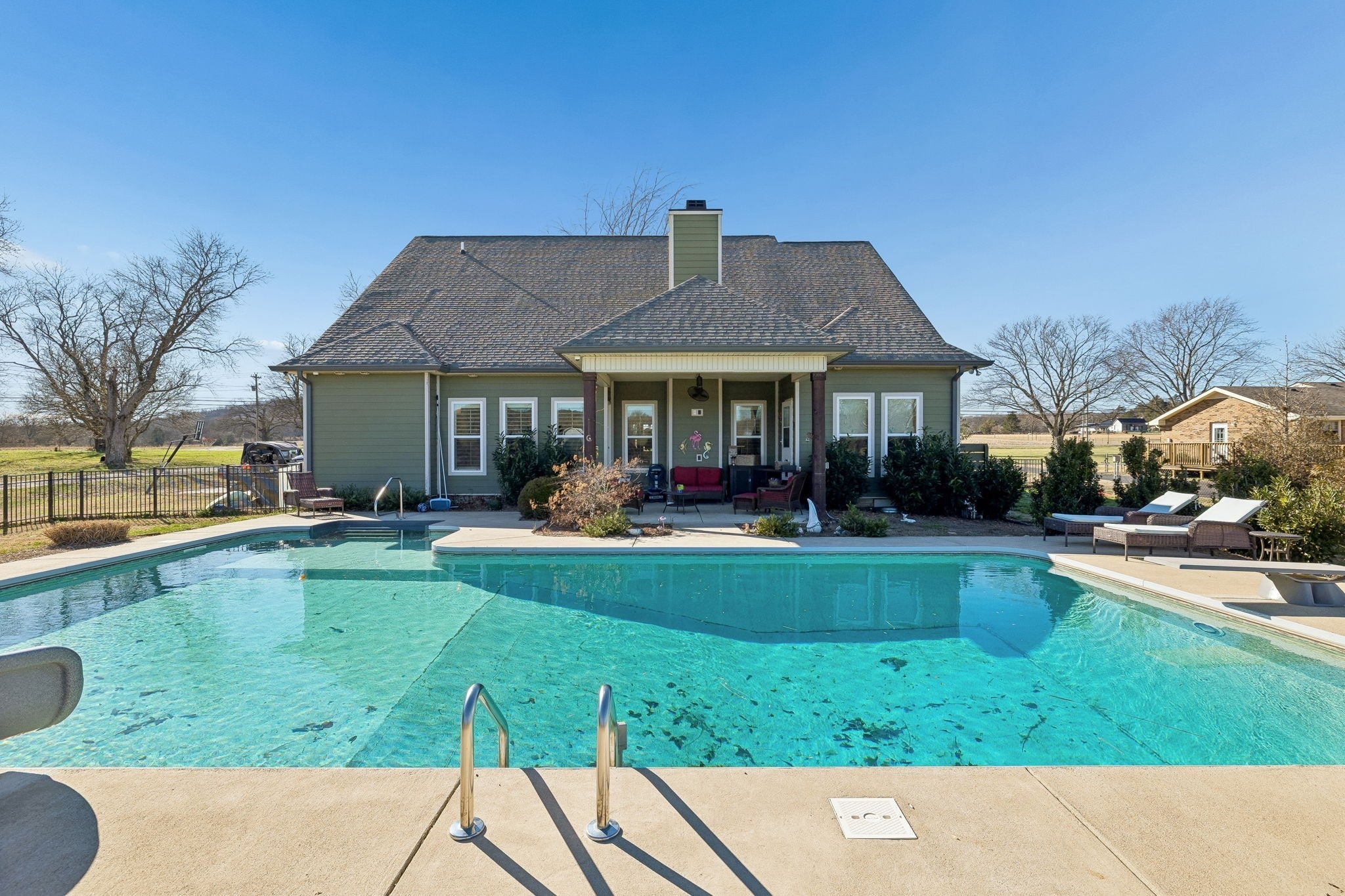 Beautiful 2702. SqFt home built in 2020 on large lot with open floor plan. 4 bedrooms, 3 full baths. Open kitchen / den floor plan with rock fireplace and gas logs. Walk-in pantry, gas grill top, electric oven. Engineered hard wood floors throughout. 2-car garage, bonus room with step-up office. Covered porch, in-ground pool built in 2022. Sauna stays with property. All attached flat screen TVs to stay with home.