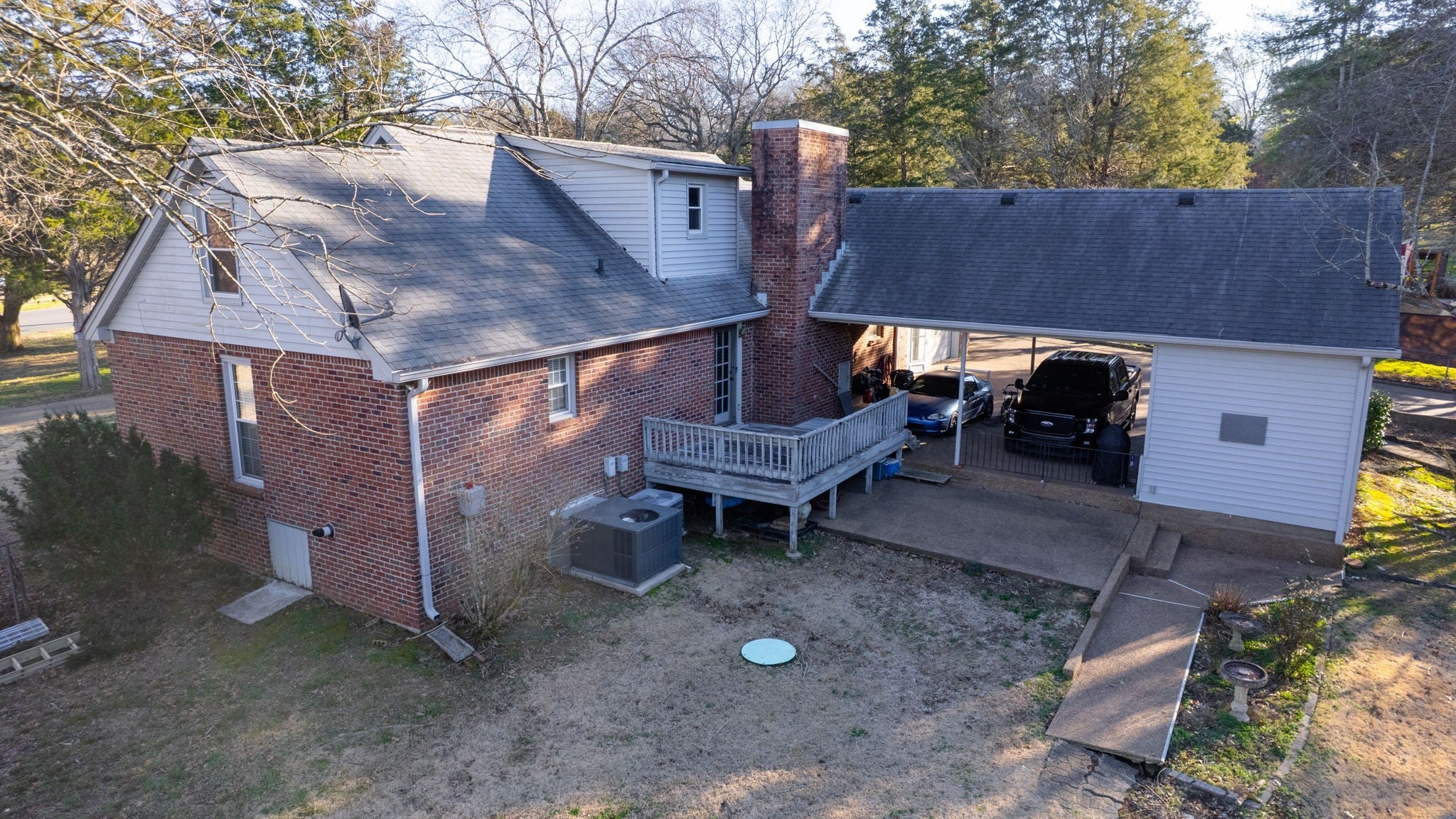 MOTIVATED SELLERS!! Located in the heart of Mt. Juliet, this stunning 4-bedroom, 3-bath home sits on a spacious 2+ acre lot. Enjoy a huge fenced-in backyard with wooded privacy and a peaceful creek beside the property. Parking and storage are abundant with a 2-car garage, carport, detached garage, electric/smart phone remote gate and large outdoor shed with water and electricity. There's also a gas line outside ready for your gas grill and outdoor kitchen. It also has a circle drive in front. The main level features primary suite with a huge, updated walk-in shower. The family room opens up to the updated eat-in kitchen. Recently updated with quartz countertops and backsplash. Enjoy the formal dining room or convert it to office space. Upstairs offers two additional bedrooms, full bath, small flex space and tons of attic storage space. Prewired 7.2 surround (studio quality), Cat 5, Engineered fiber optics w/ redundant diverse connectivity. Architectural charm shines through with the original, oversized brick fireplace, now converted to gas burning. This rare Mt. Juliet property combines space, privacy, and convenience—don’t miss it! Copy and paste to see video https://youtu.be/pd2gq_d4n_4?si=bb2RFA_113Mb8fYk