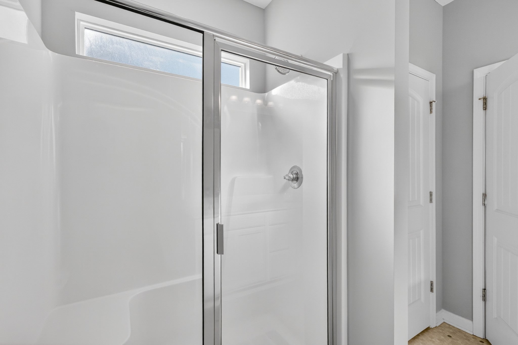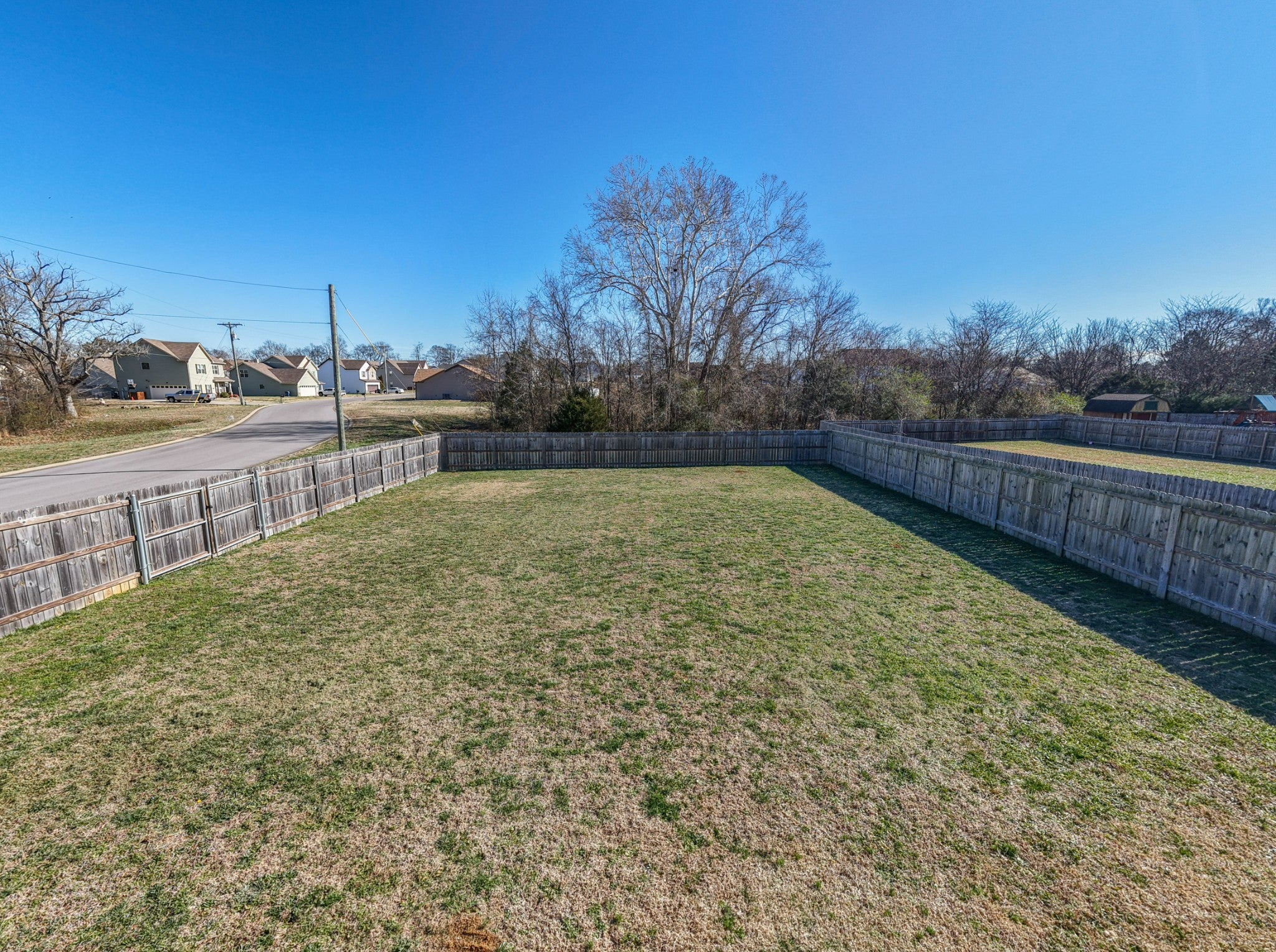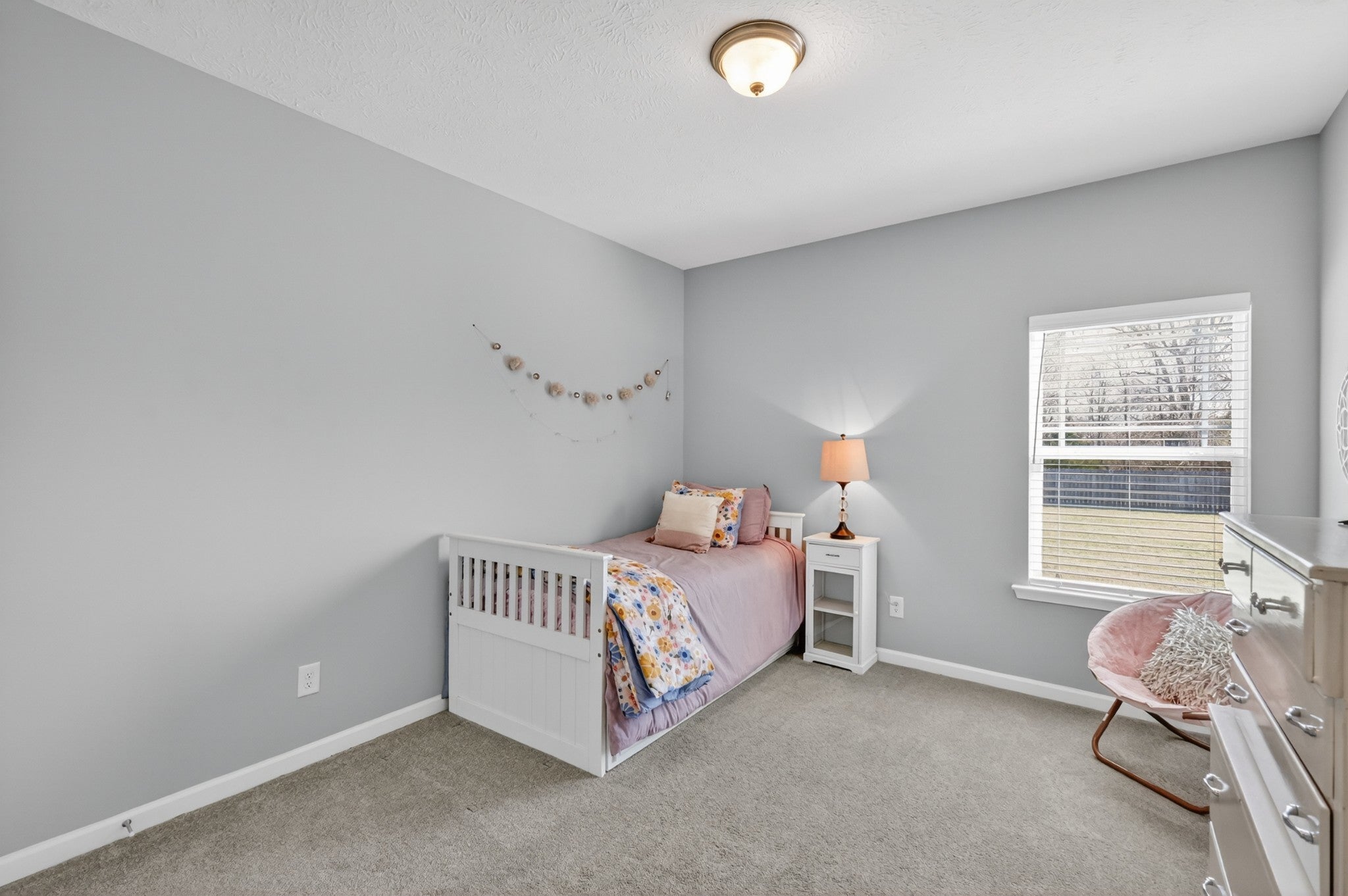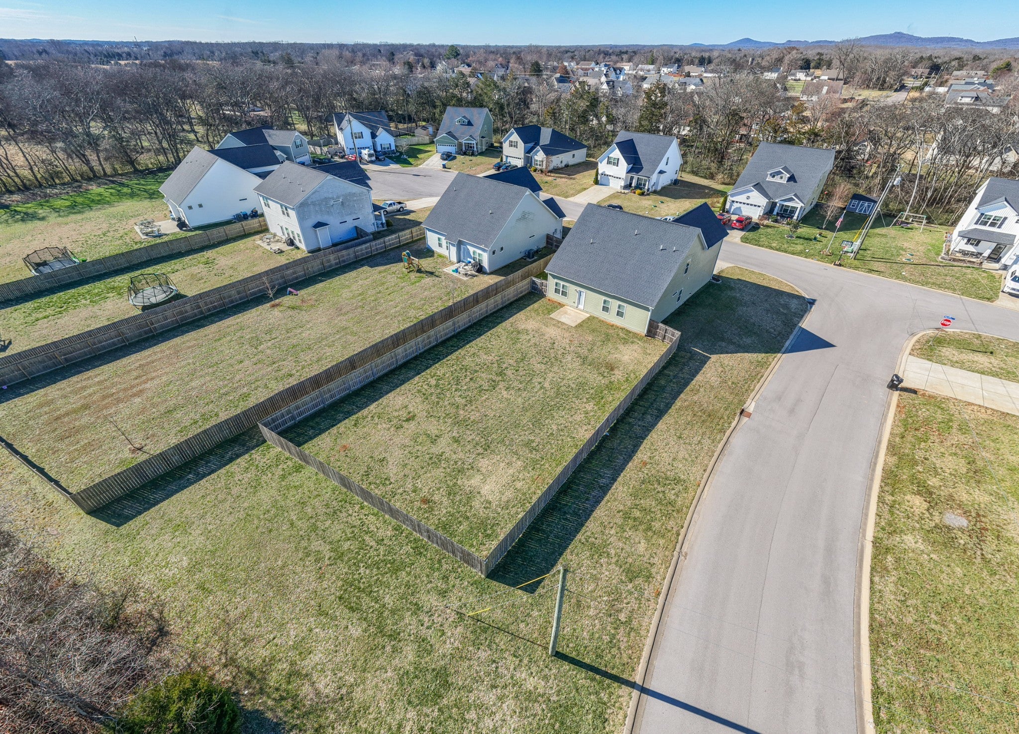 Thoughtfully designed living spaces feature laminate flooring throughout the kitchen, dining, and great room, creating a seamless and inviting flow. The kitchen is anchored by an expansive island, generous cabinetry, pantry storage, and stainless steel appliances—ideal for both everyday living and entertaining. The primary suite offers a private retreat with a spa-inspired bath showcasing extra counter space and a large walk-in shower. All bedrooms are conveniently located on the main level, including the primary suite and two additional zoned bedrooms, providing flexible living and privacy. Outdoors, a large fenced backyard enhances this desirable corner lot, offering both privacy and ample space for outdoor gatherings, pets, or play.