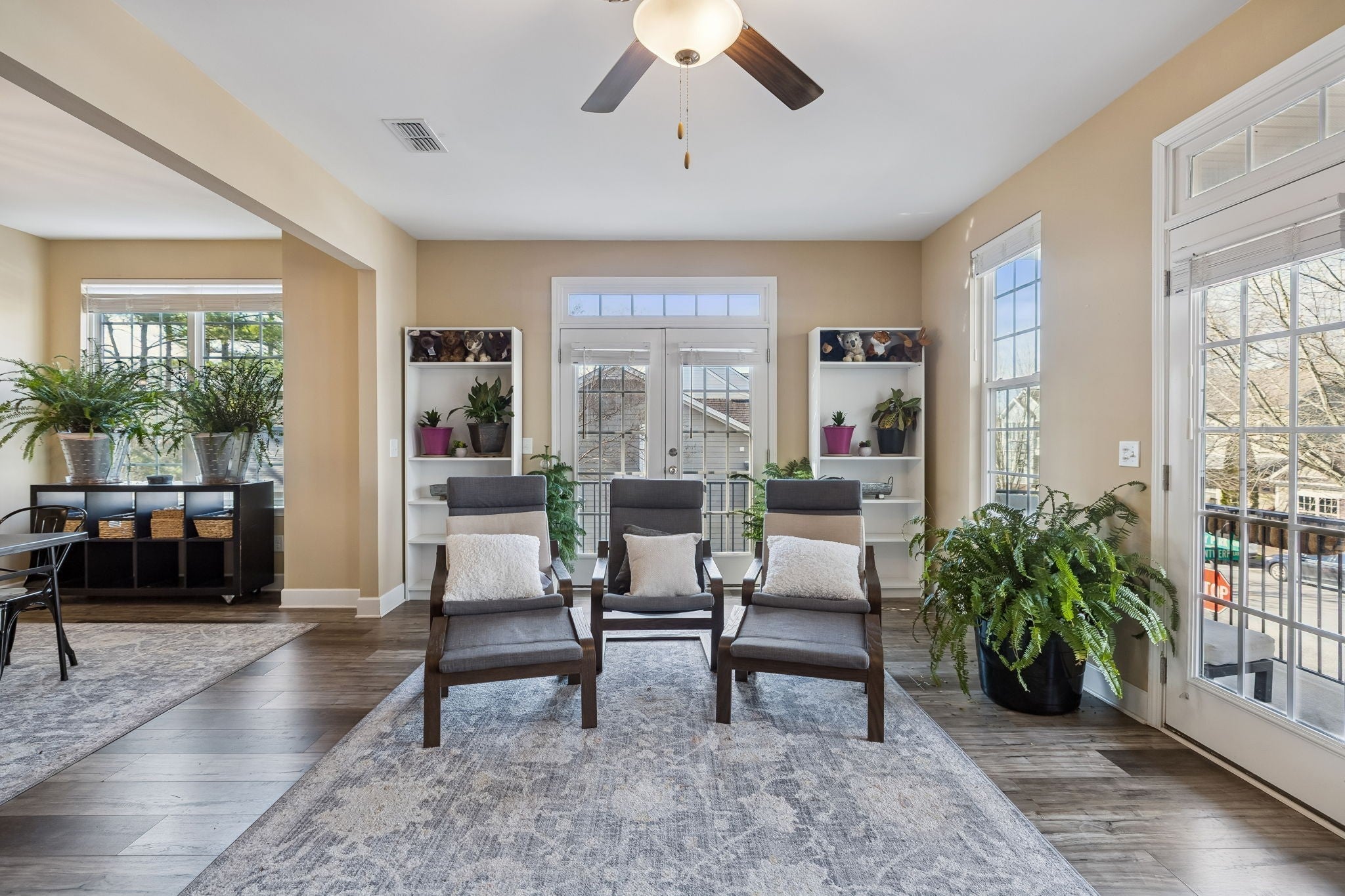 RARE LIVE/WORK TOWNHOME — thoughtfully designed to allow you to operate a business from the first floor while living comfortably on the second and third floors. This is a unique opportunity for an entrepreneur or professional to work from home, eliminate the cost of renting commercial space, and put that money toward your mortgage instead. Welcome to 1035 Avery Park Dr, a 2019 end-unit townhome in the desirable Lenox of Smyrna community. Purpose-built as a live/work residence, the first-floor flex space is ideal for a variety of office or retail uses, while the upper levels function as a spacious, modern home filled with natural light. This 3-bedroom, 2 full bath, 2 half bath townhome offers 2,148 square feet of living space with a super open layout and excellent quality construction — you won’t hear neighboring units. As an end unit, the home features tons of windows and abundant natural light throughout. The second floor showcases an open-concept kitchen, dining, and living area with LVP flooring and ceramic tile throughout (no carpet), granite countertops, and access to three large balconies — one off the kitchen/breakfast nook and two off the living room. Upstairs, the bedrooms are generously sized and well laid out. A sliding barn door separates the first-floor flex space from the main living areas, creating true work-life separation. The semi-finished garage provides bonus square footage not included in the 2,148 sq ft — perfect for additional workspace, storage, or studio space — and can easily be converted back to a traditional garage. Fresh exterior paint, a tree-lined neighborhood entrance, and a quieter interior location enhance the setting. Conveniently located just off I-24, you’re 30 minutes to Nashville or BNA, 5 minutes to the Nissan plant, and 15 minutes to Murfreesboro. With Smyrna’s continued growth, this home offers strong long-term value and an ideal setup to run a small business from home.