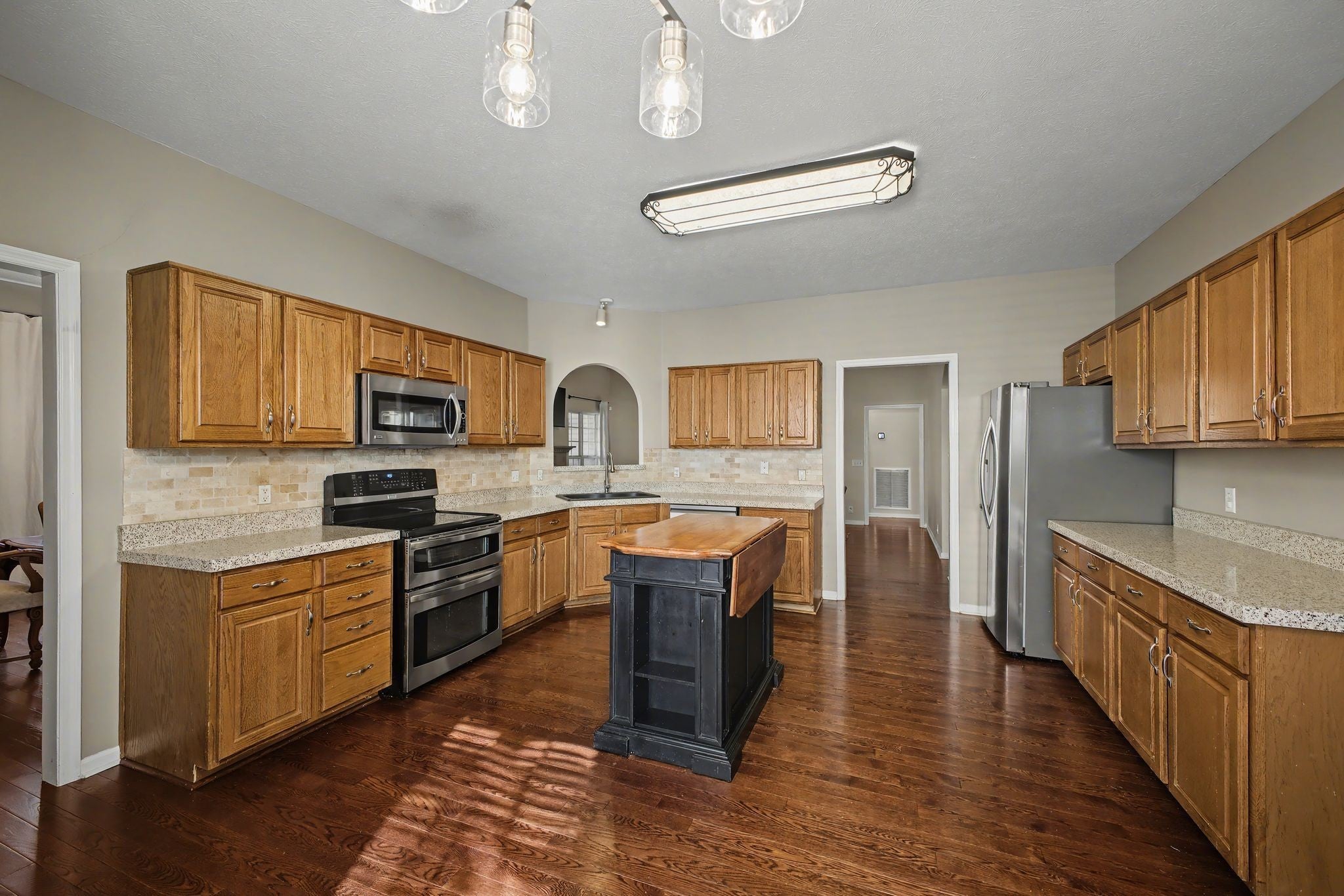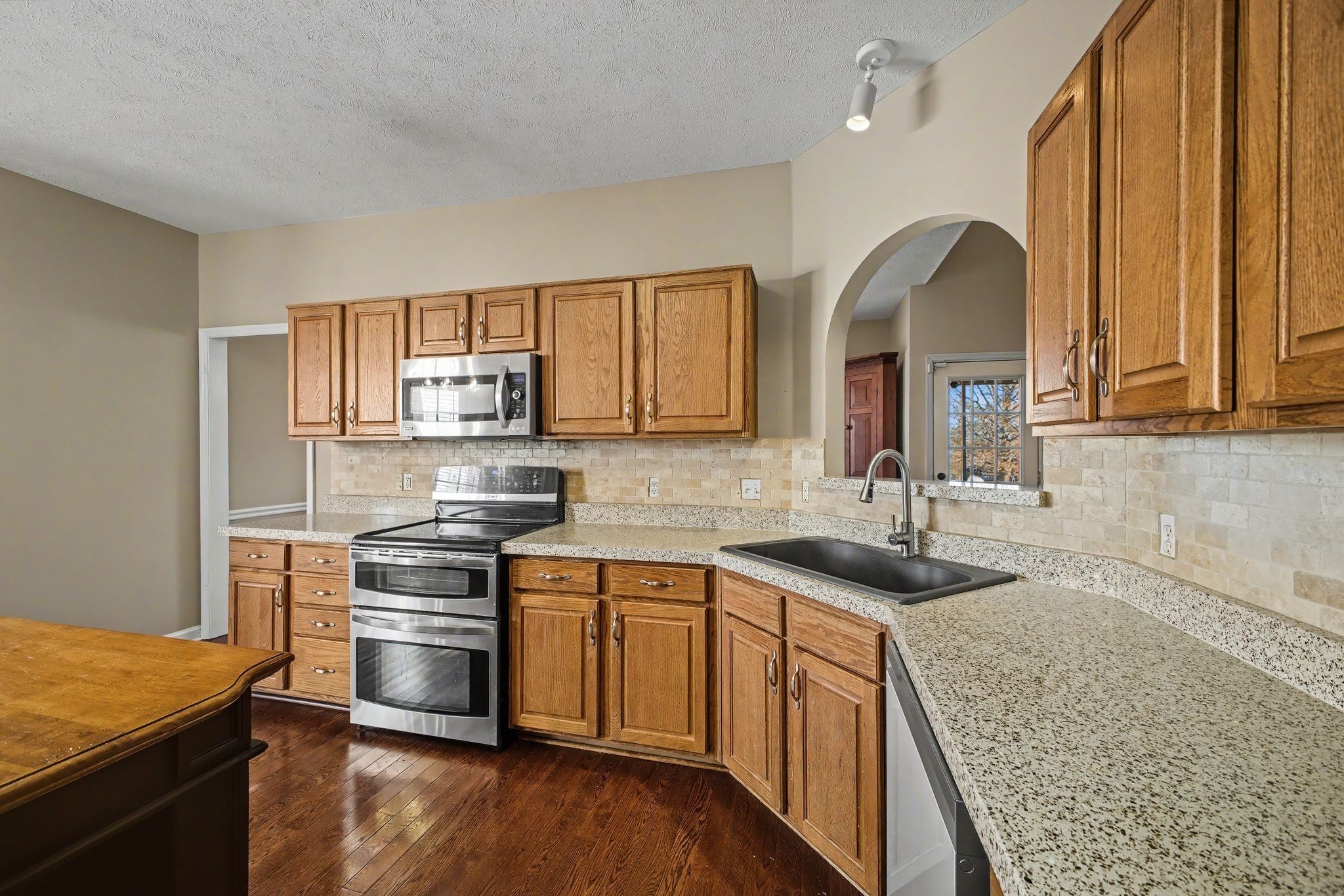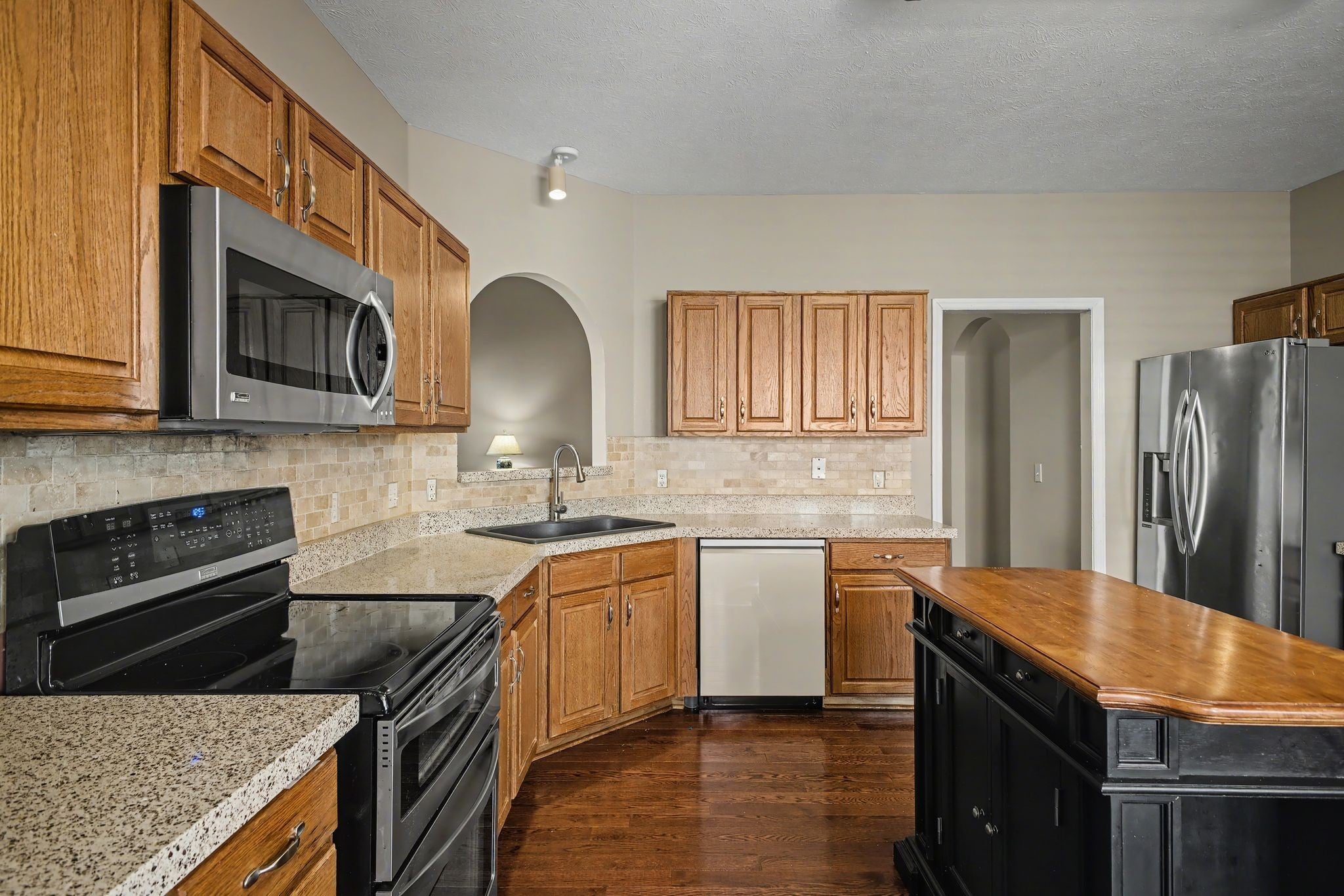 - Double Oven, Electric Range, Dishwasher, Disposal, Microwave, Refrigerator