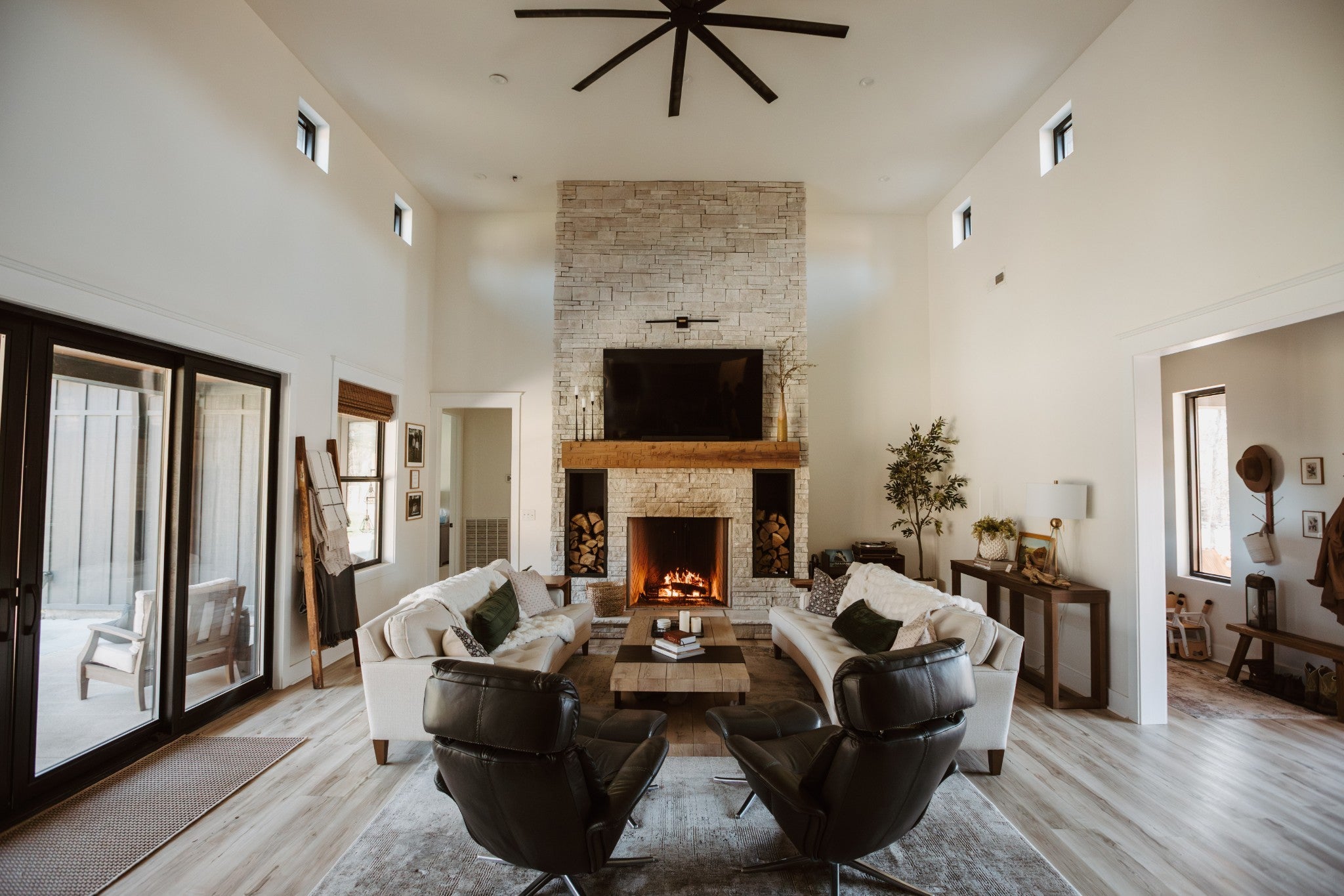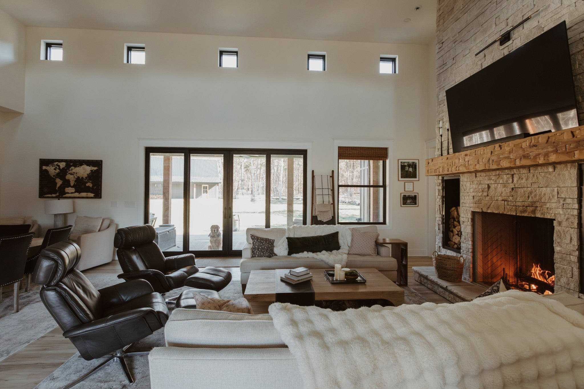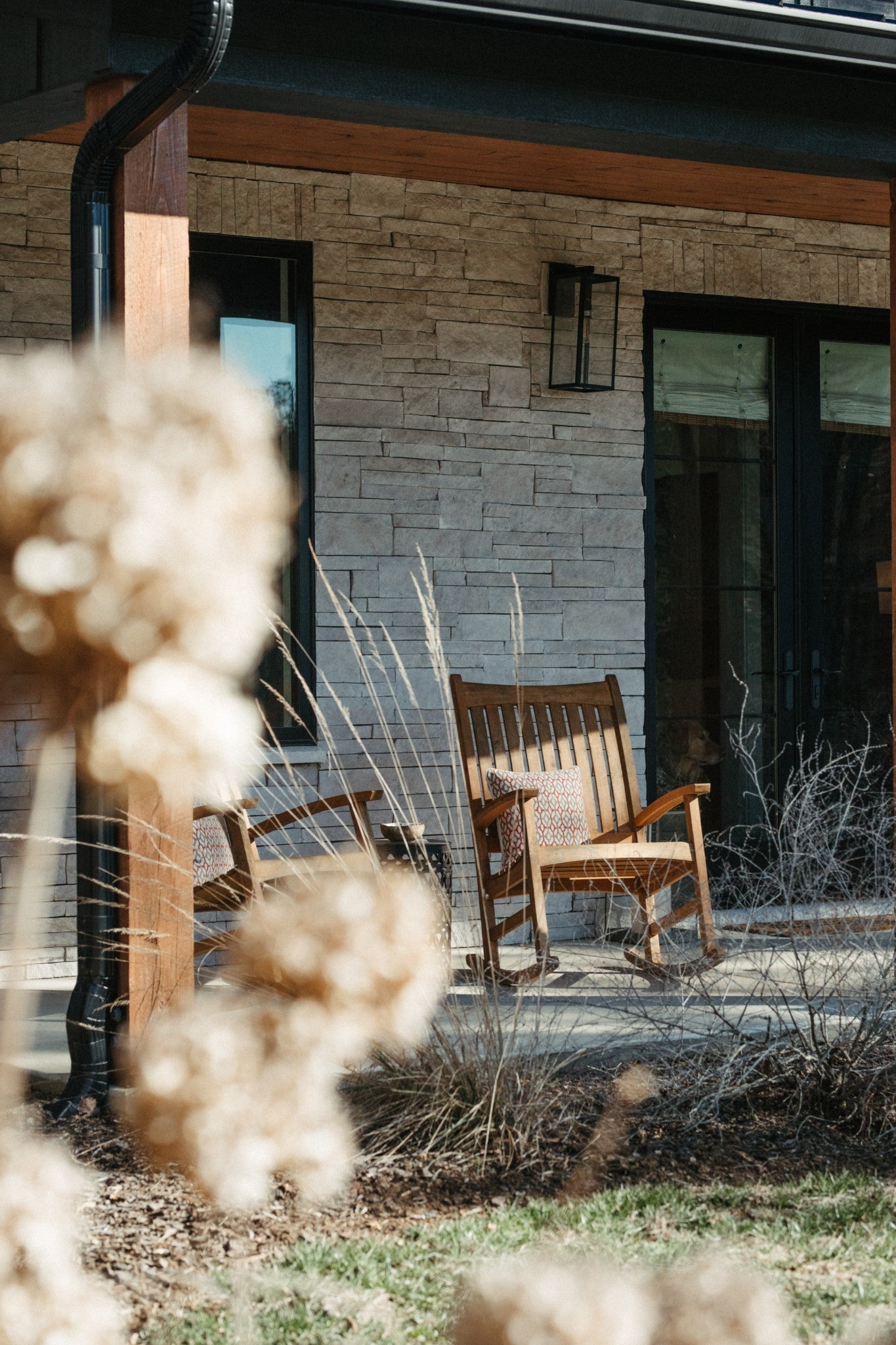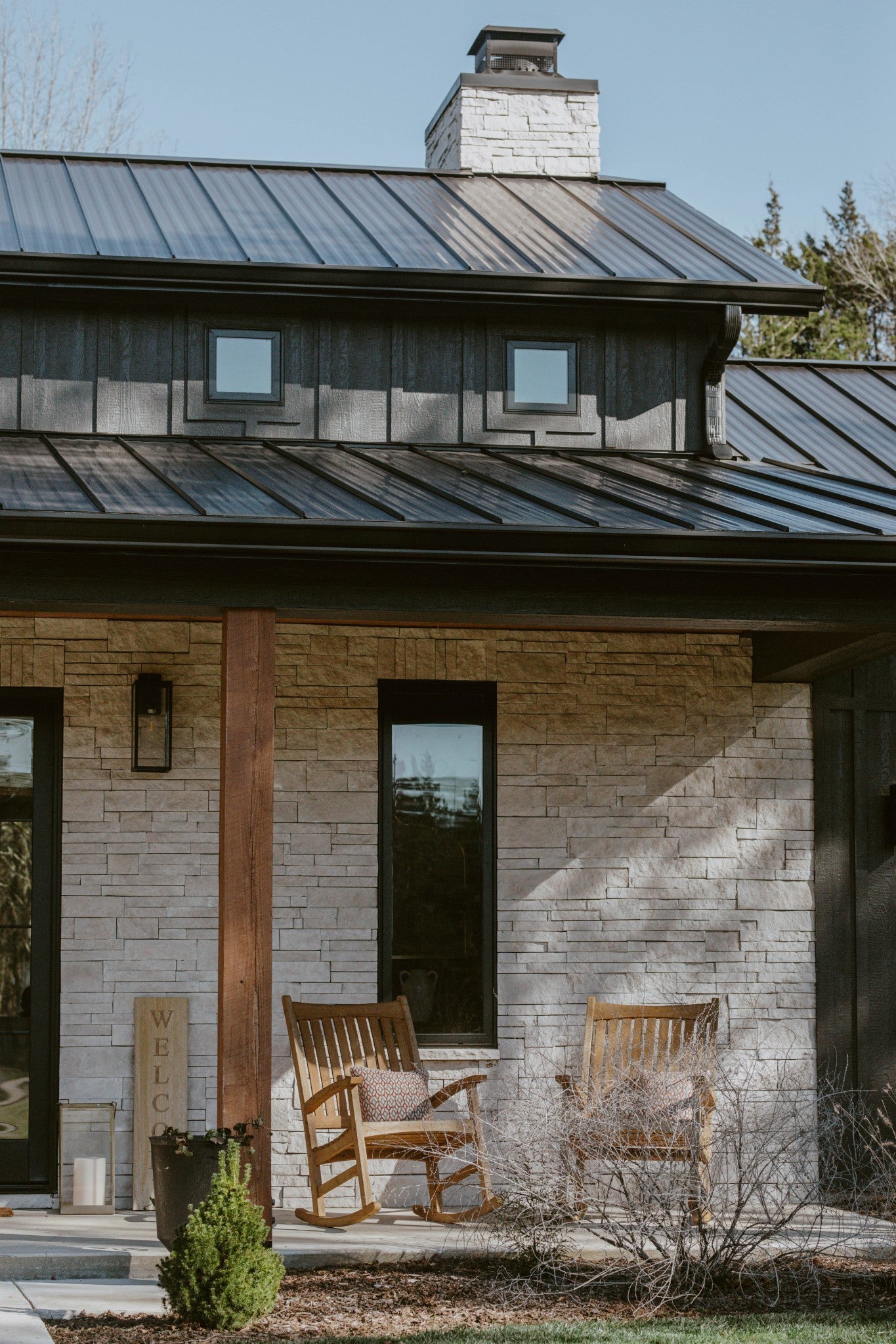 - Stone, Wood Siding